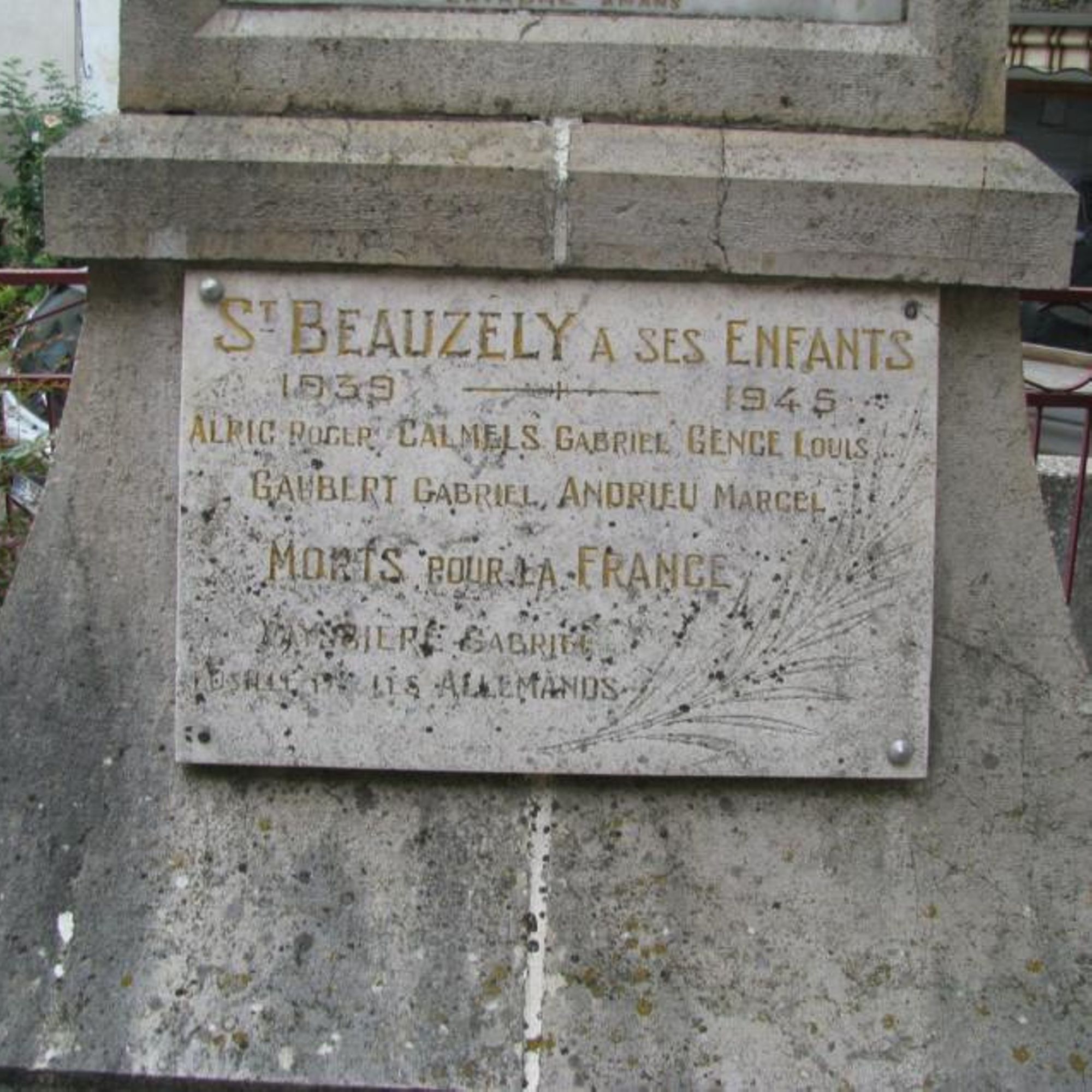 Dimanche 29 octobre [1922], eut lieu à Saint-Beauzély la bénédiction et l'inauguration du monument élevé à la mémoire des soldats de la commune, morts au champ d'honneur, pendant la grande guerre.