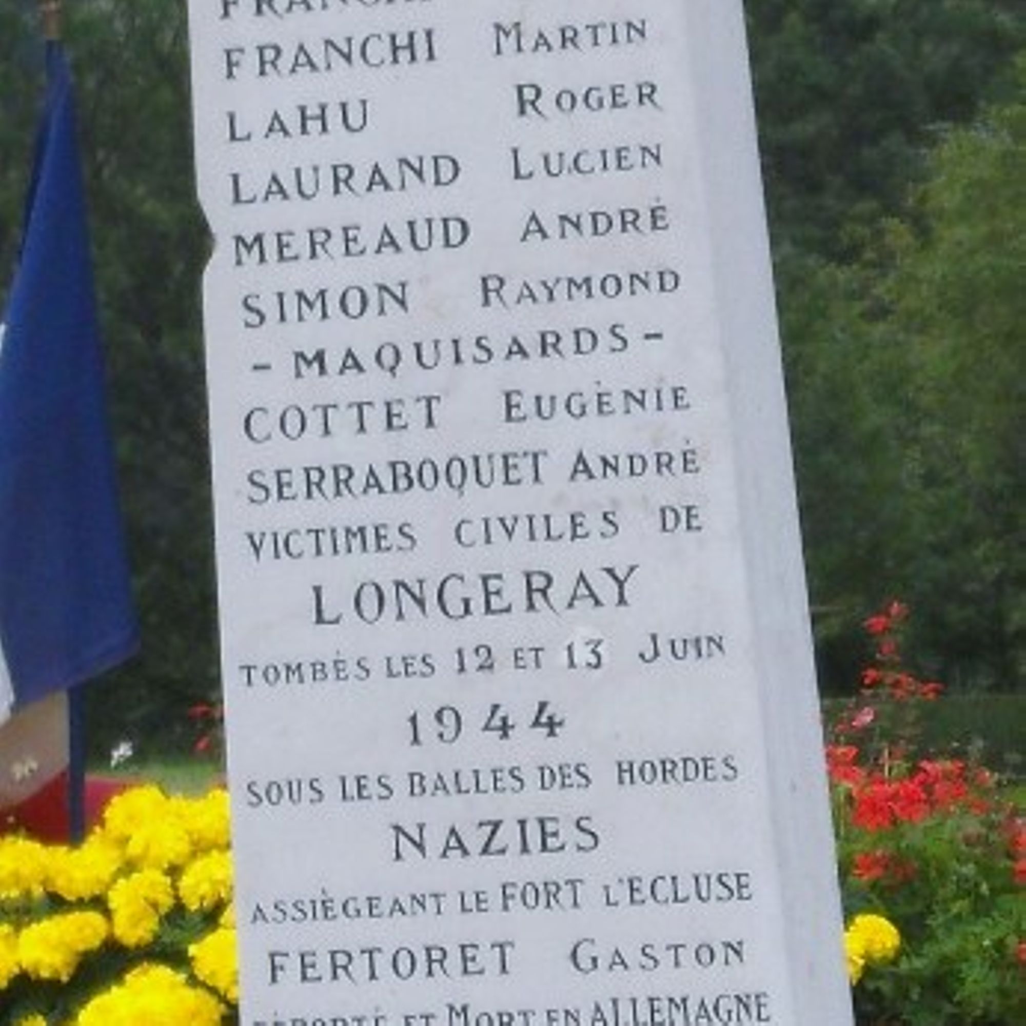 Victimes civiles de Longeray tombés les 12 et 13 juin 1944 sous les balles des hordes nazies assiégeant le fort l'Écluse