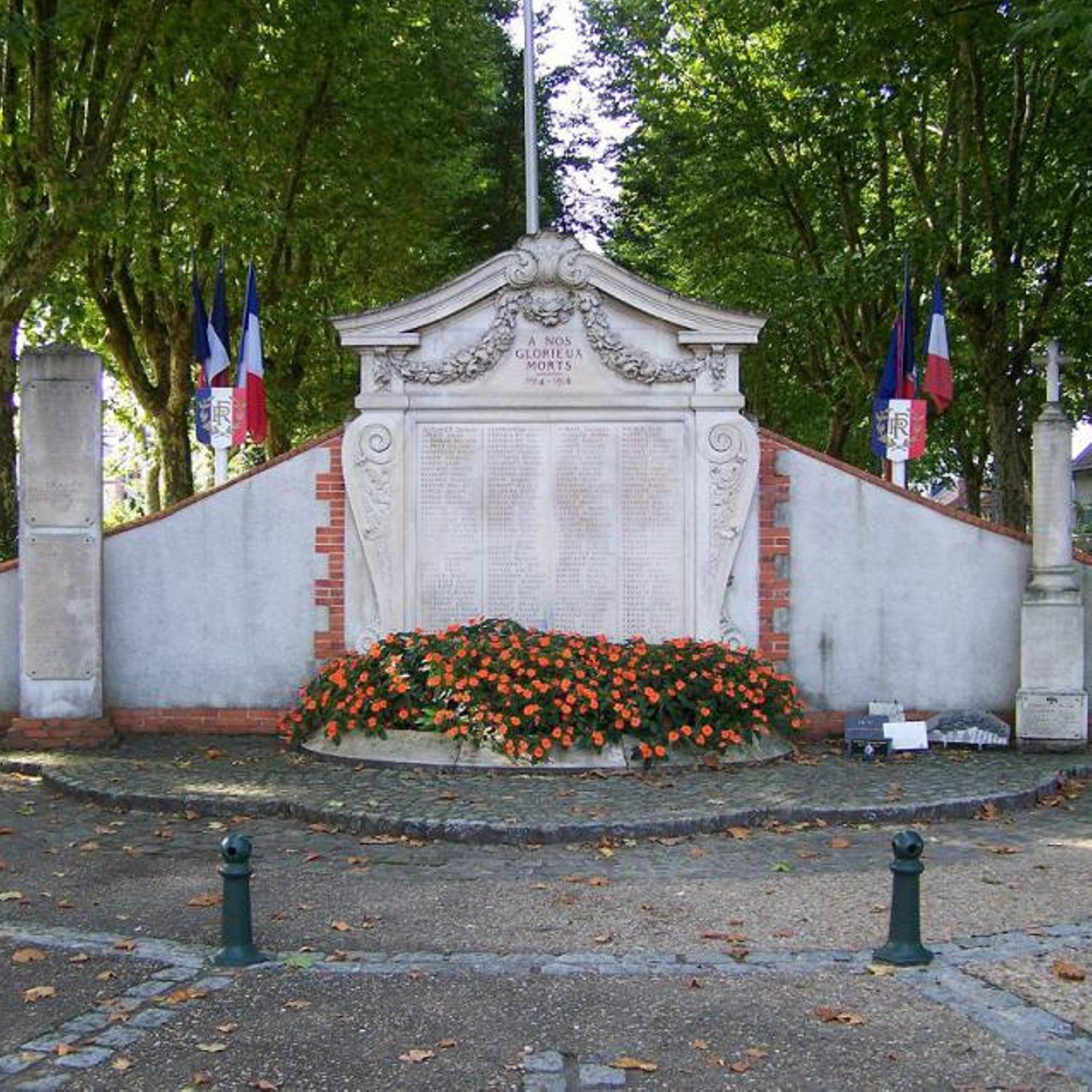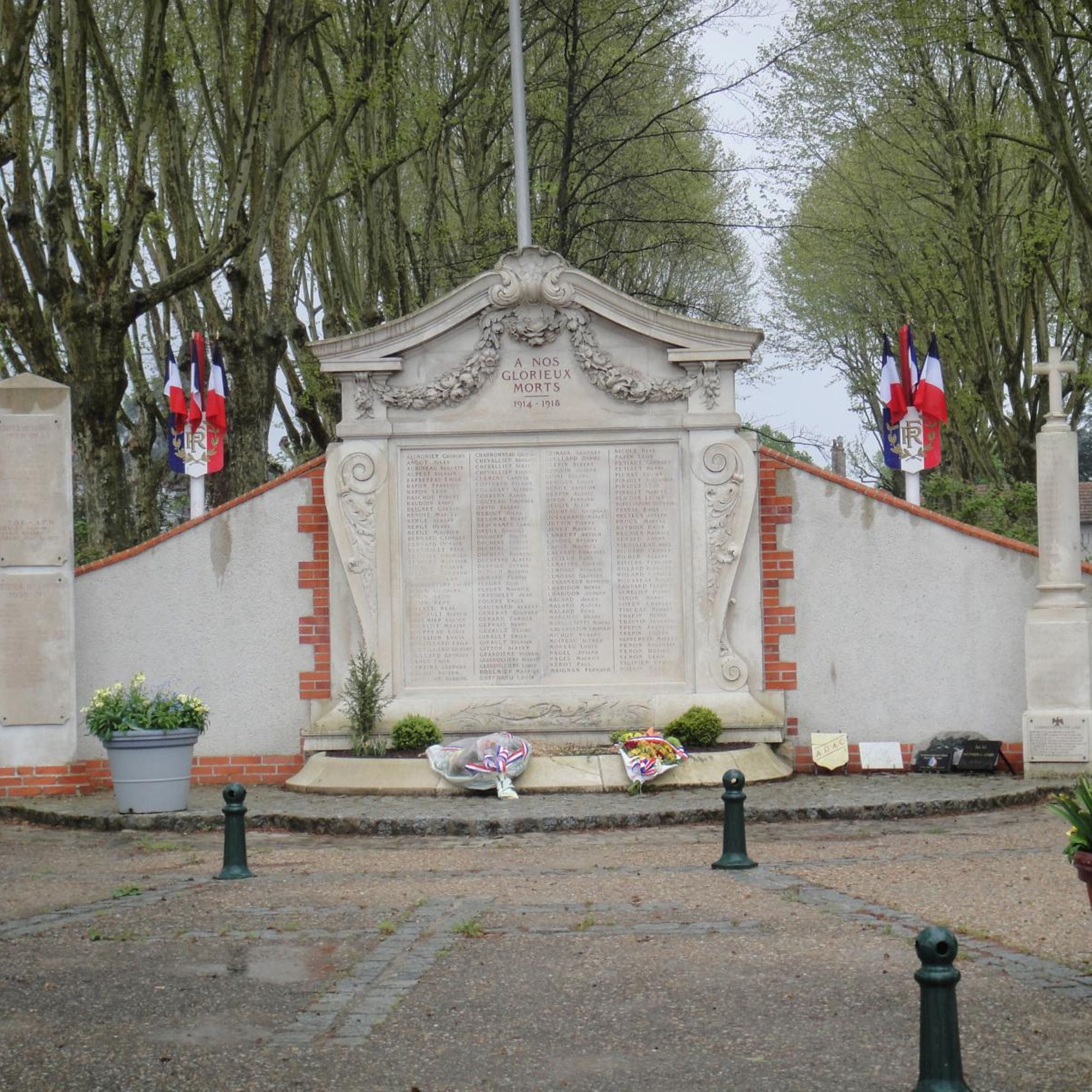 En dessous de l'épitaphe est gravé la liste des défunts de la Grande guerre.