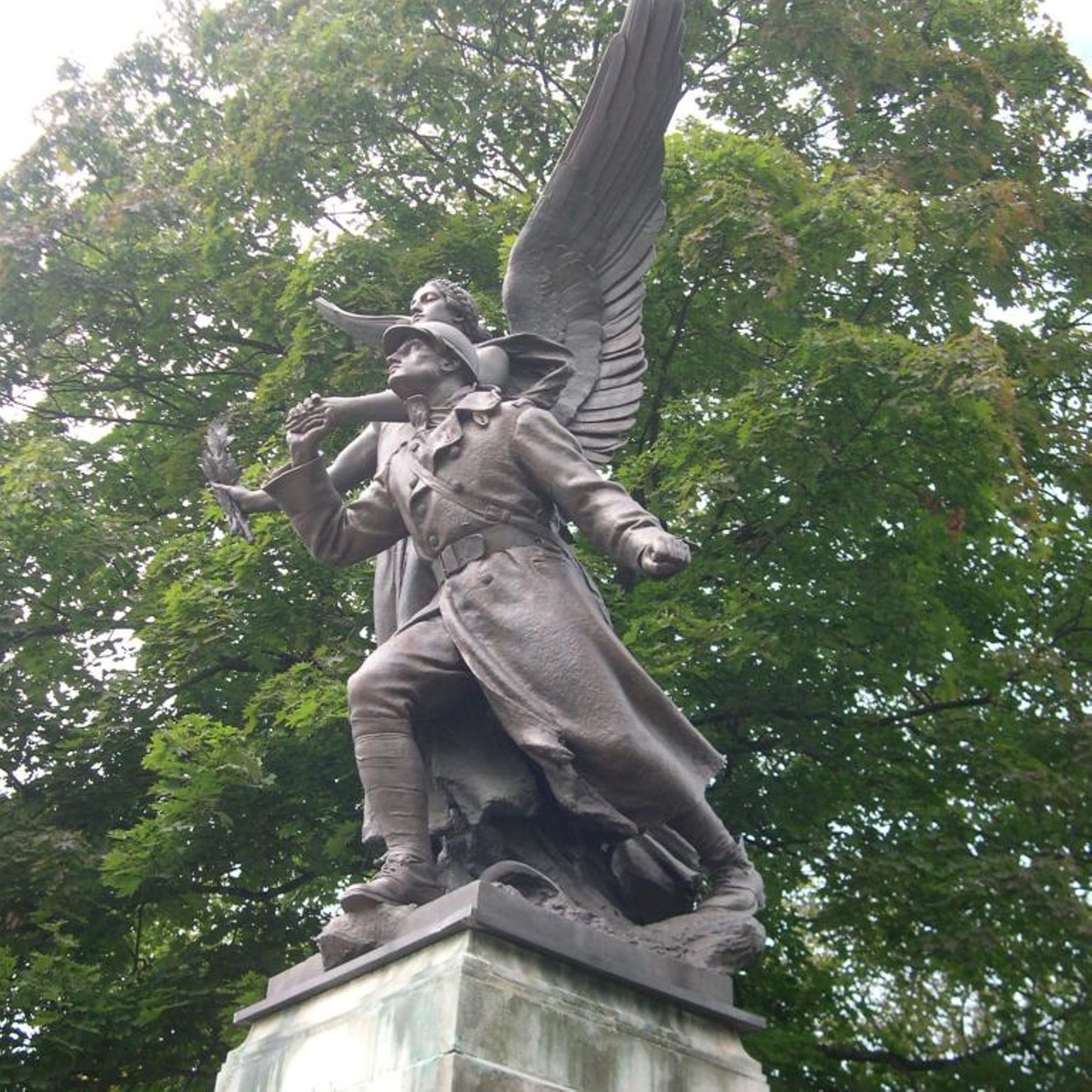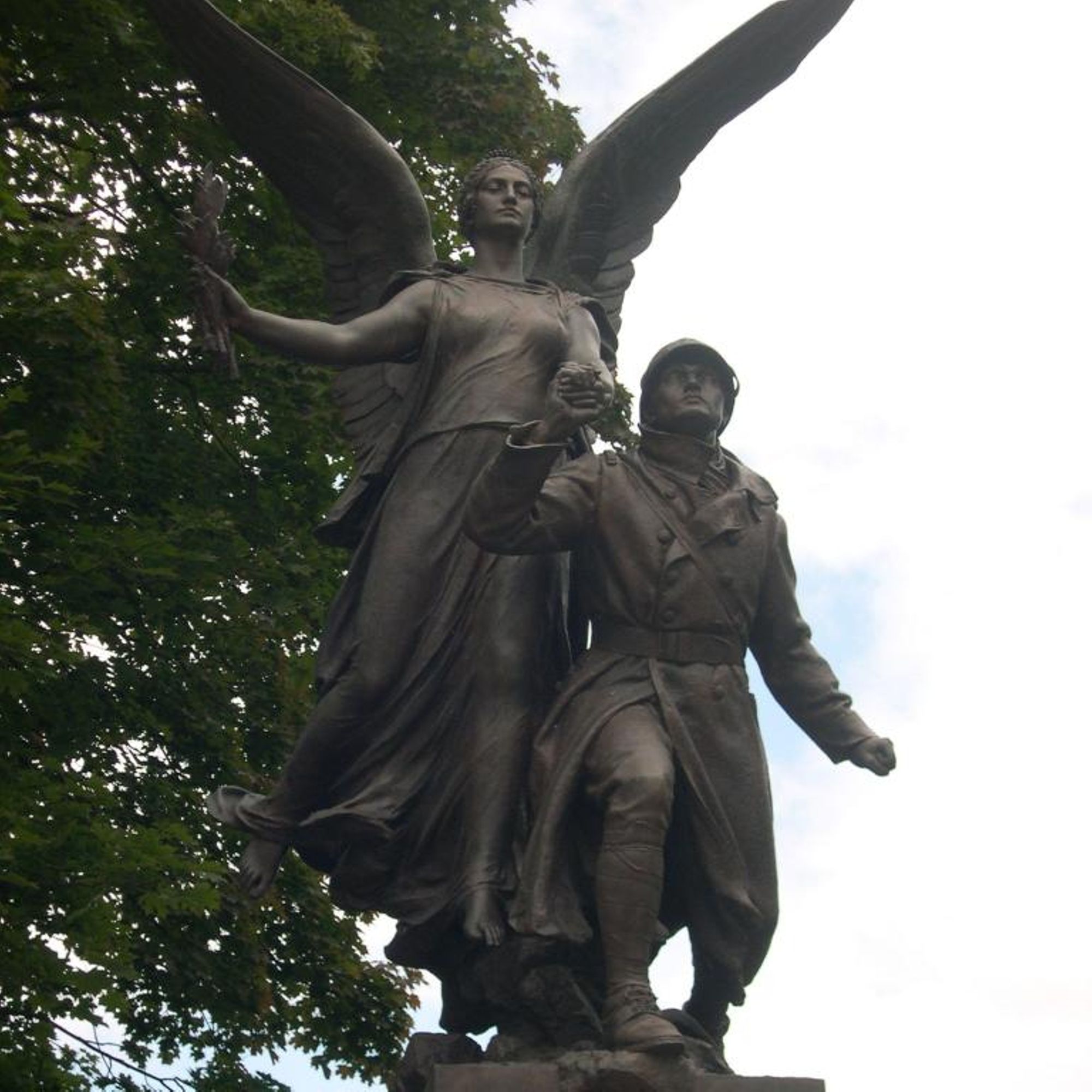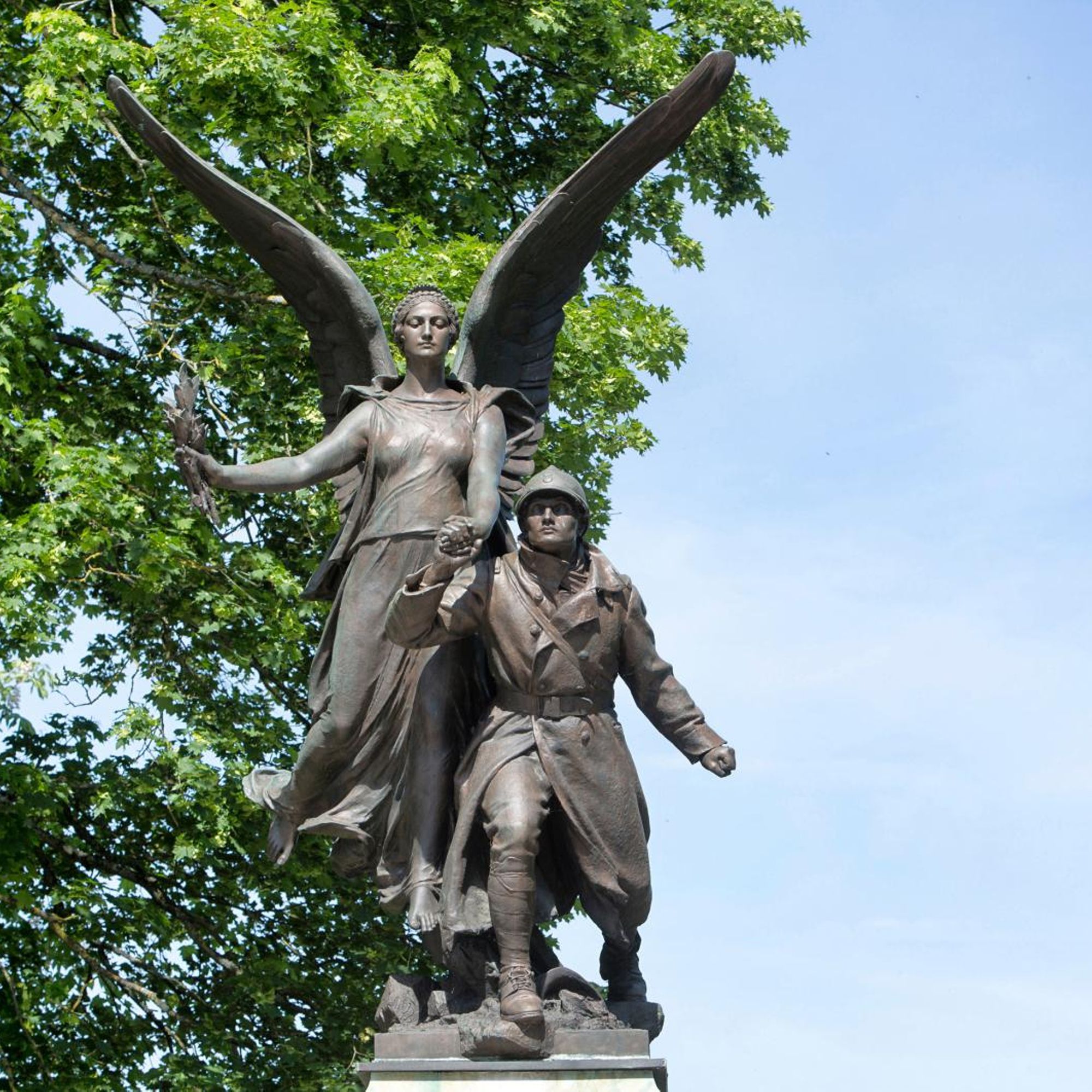 Il se compose d'un groupe sculpté en bronze signé Aimé Octobre, posé sur un haut socle en pierre de taille. Le groupe est dominé par une allégorie féminine (Victoire ailée) qui tient de sa main gauche la main droite d'un Poilu casqué et vêtu de sa vareuse. La Victoire, coiffée d'un chignon et la tête ceinte d'une couronne végétale, brandit de la main droite des branches de laurier représenté à la manière d'un flambeau de la Liberté. Pieds nus, elle porte une longue robe au fin drapé.