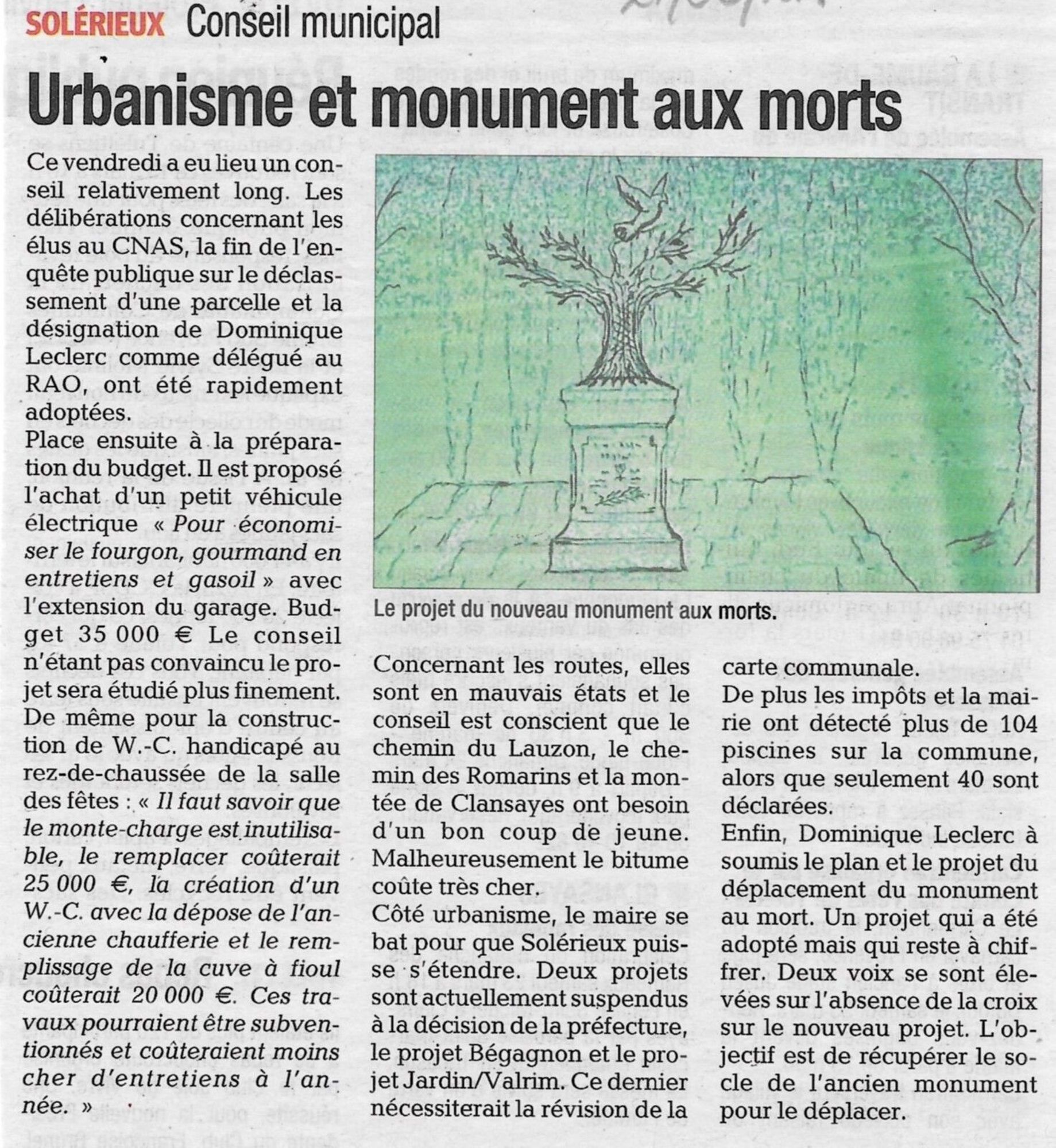 Un article paru ans la presse Local " Le Dauphiné" le 21 Mars 2024 qui annonçait le déplacement du monument.