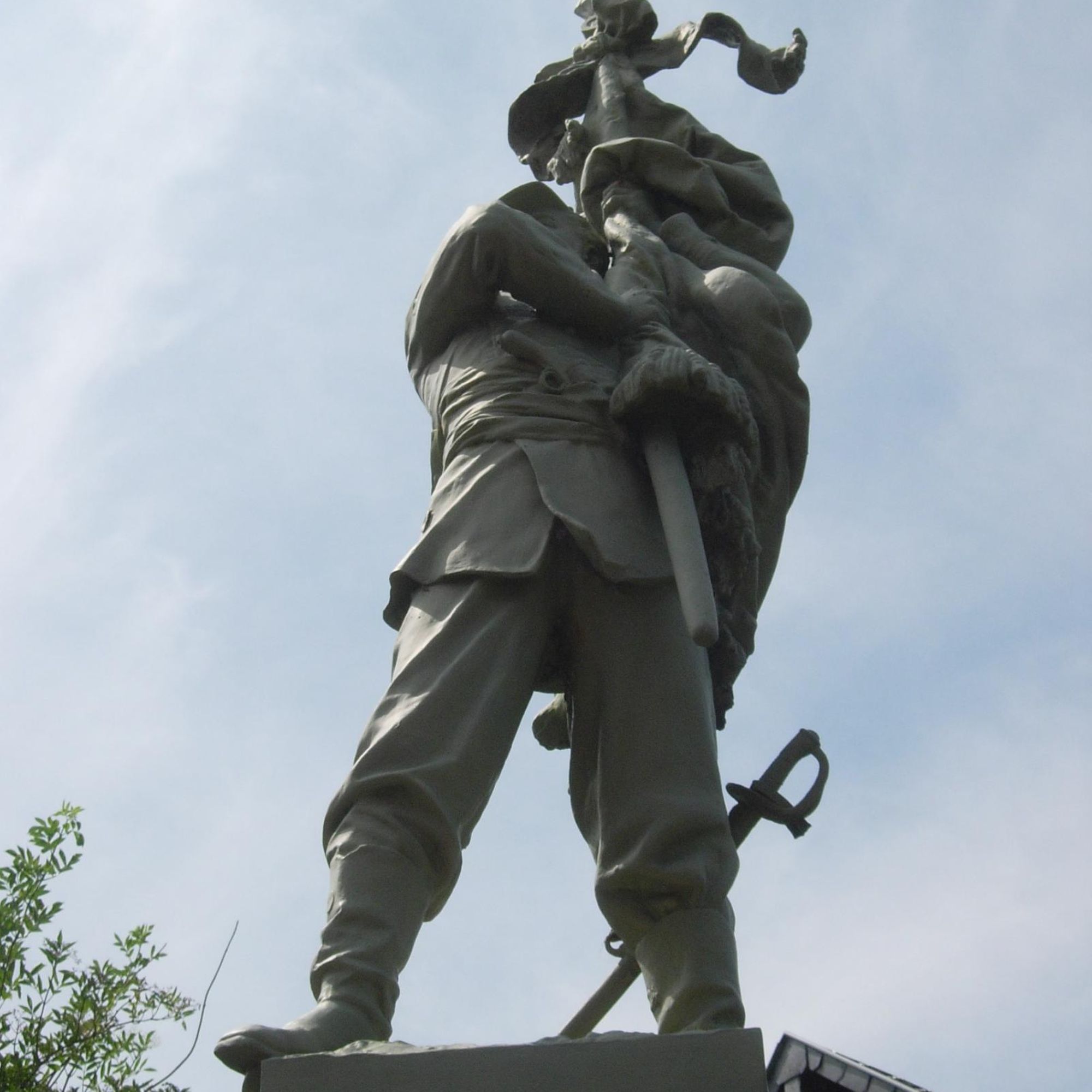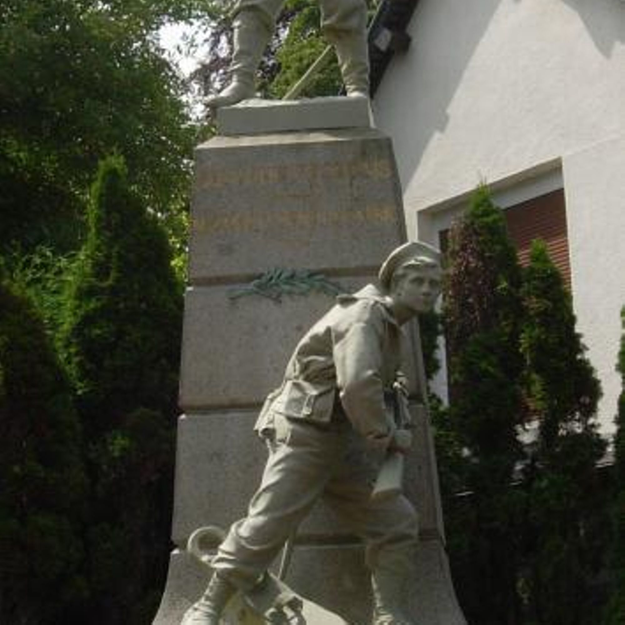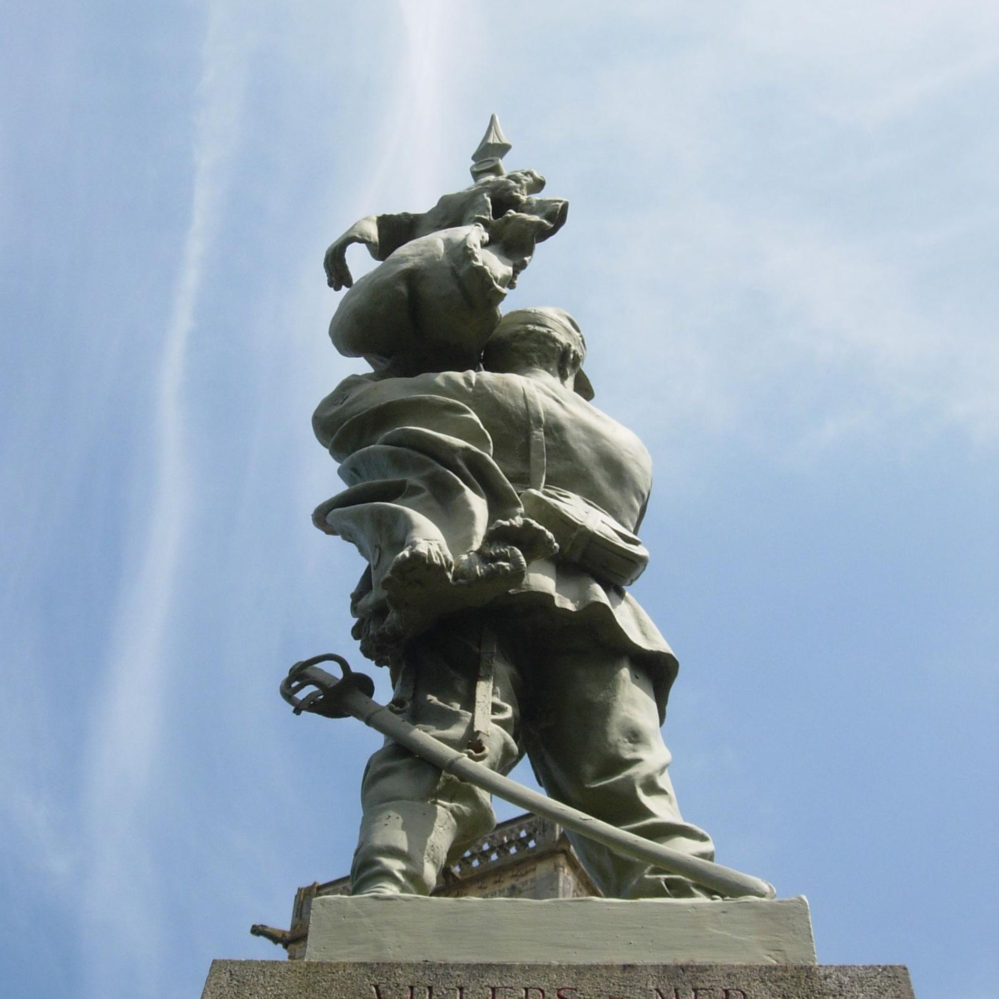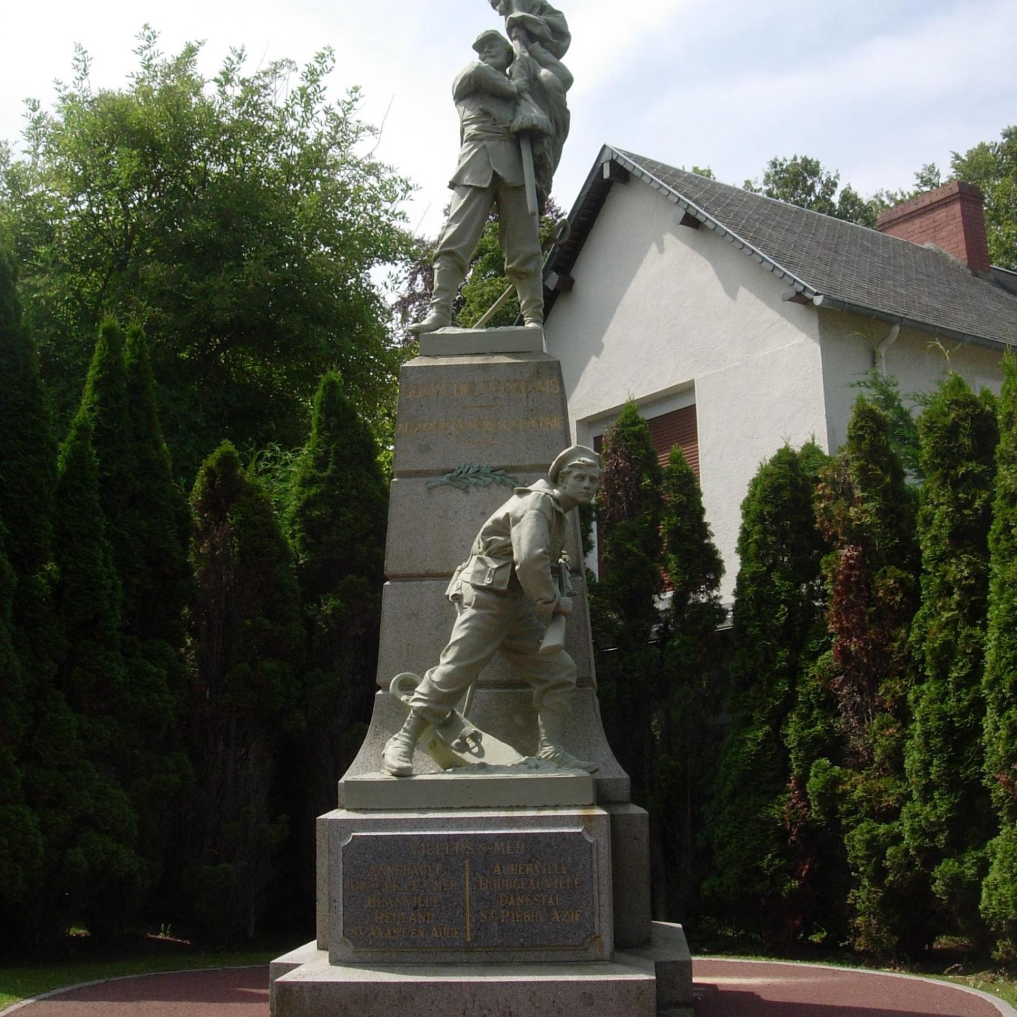 Deux sculptures en fonte de fer bronzée ornent le monument : un soldat de la Guerre de 1870, tenant un drapeau, surmonte l'obélisque ; un marin est posé sur un piédestal. Une palme est présente sur le monument.