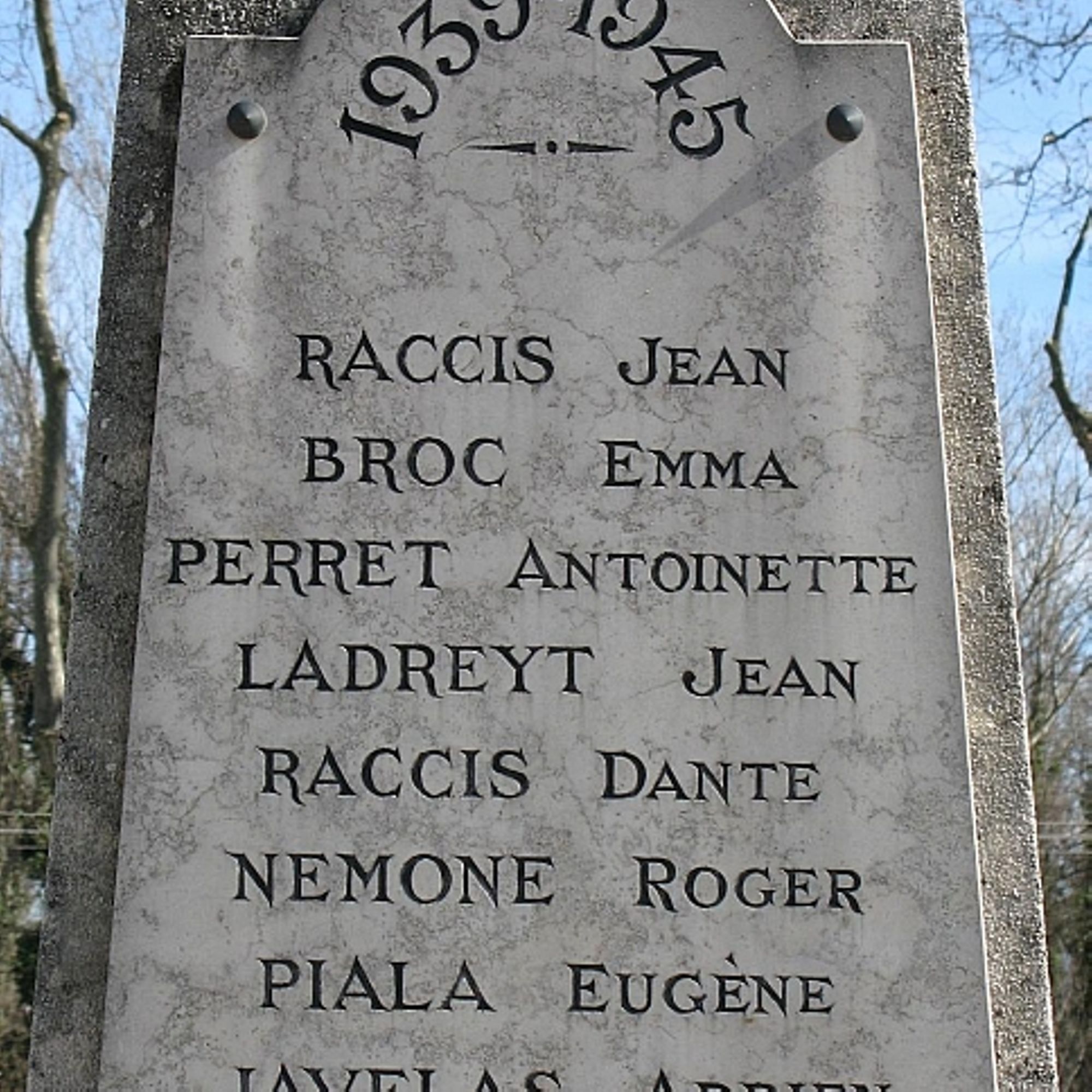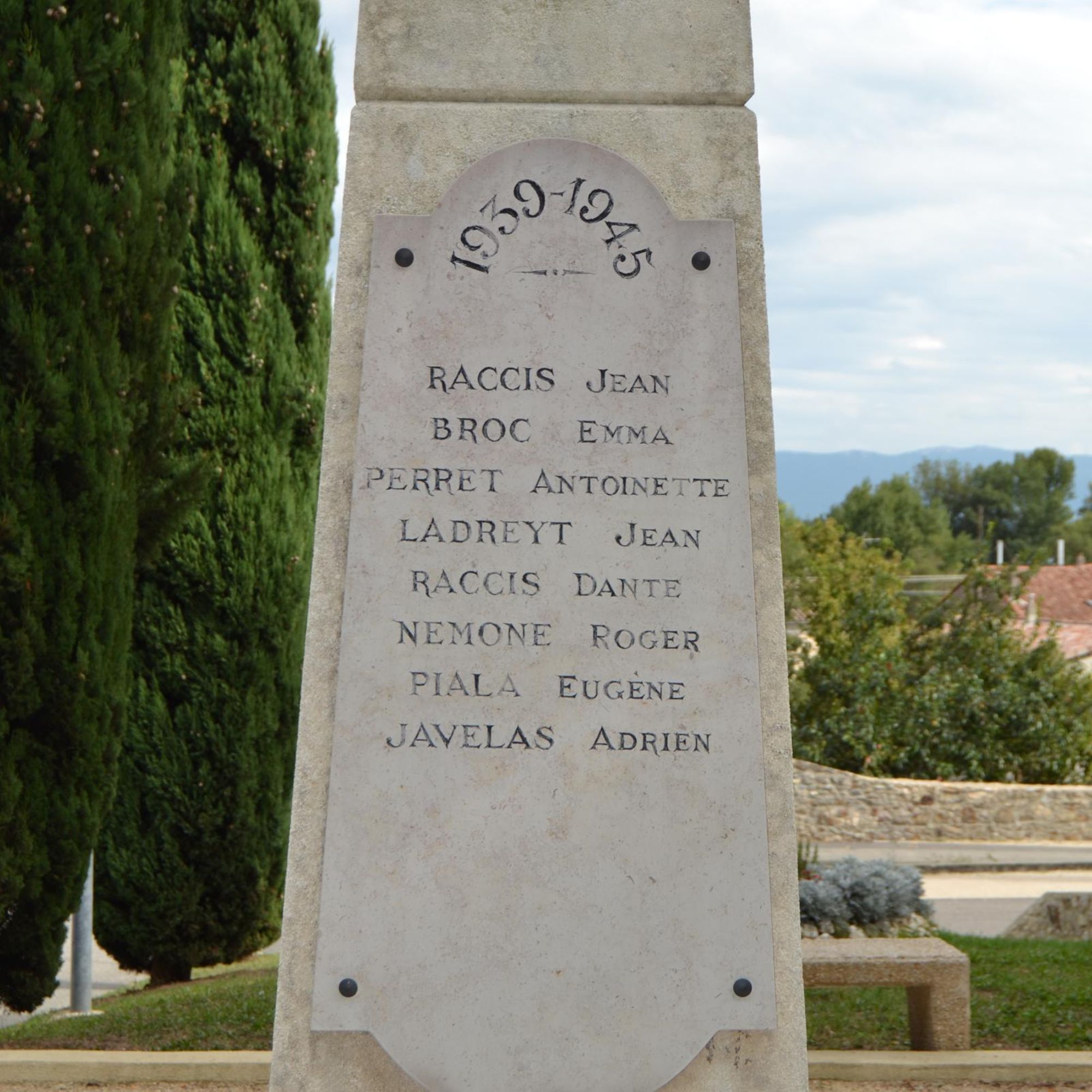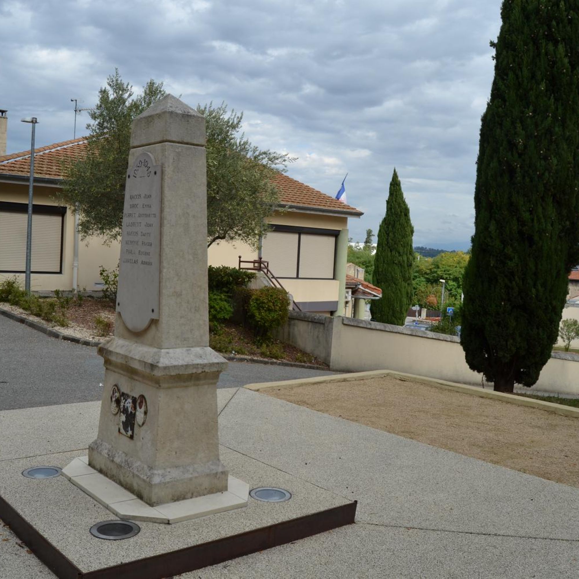 Monument déplacé en 2014 du cimetiére communal à la place Duclap à coté de la Mairie