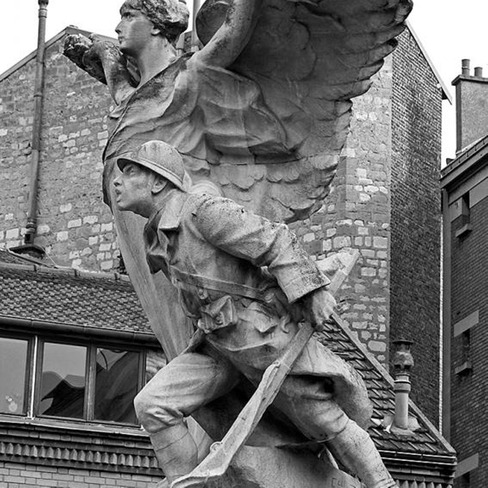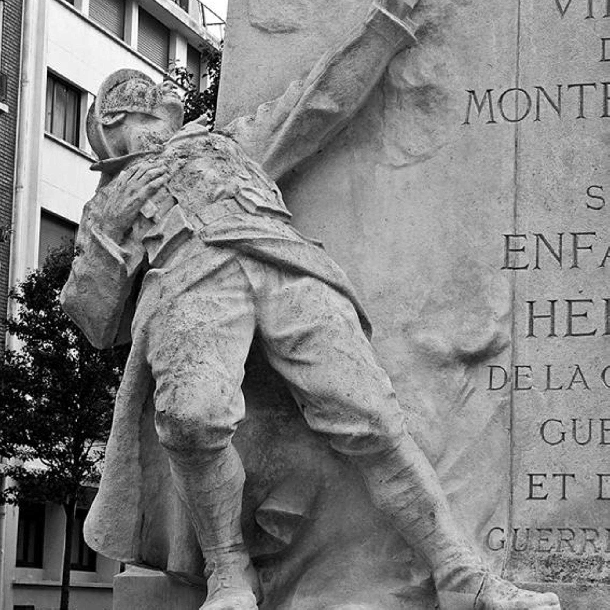 Sur le socle, un soldat est mourant.