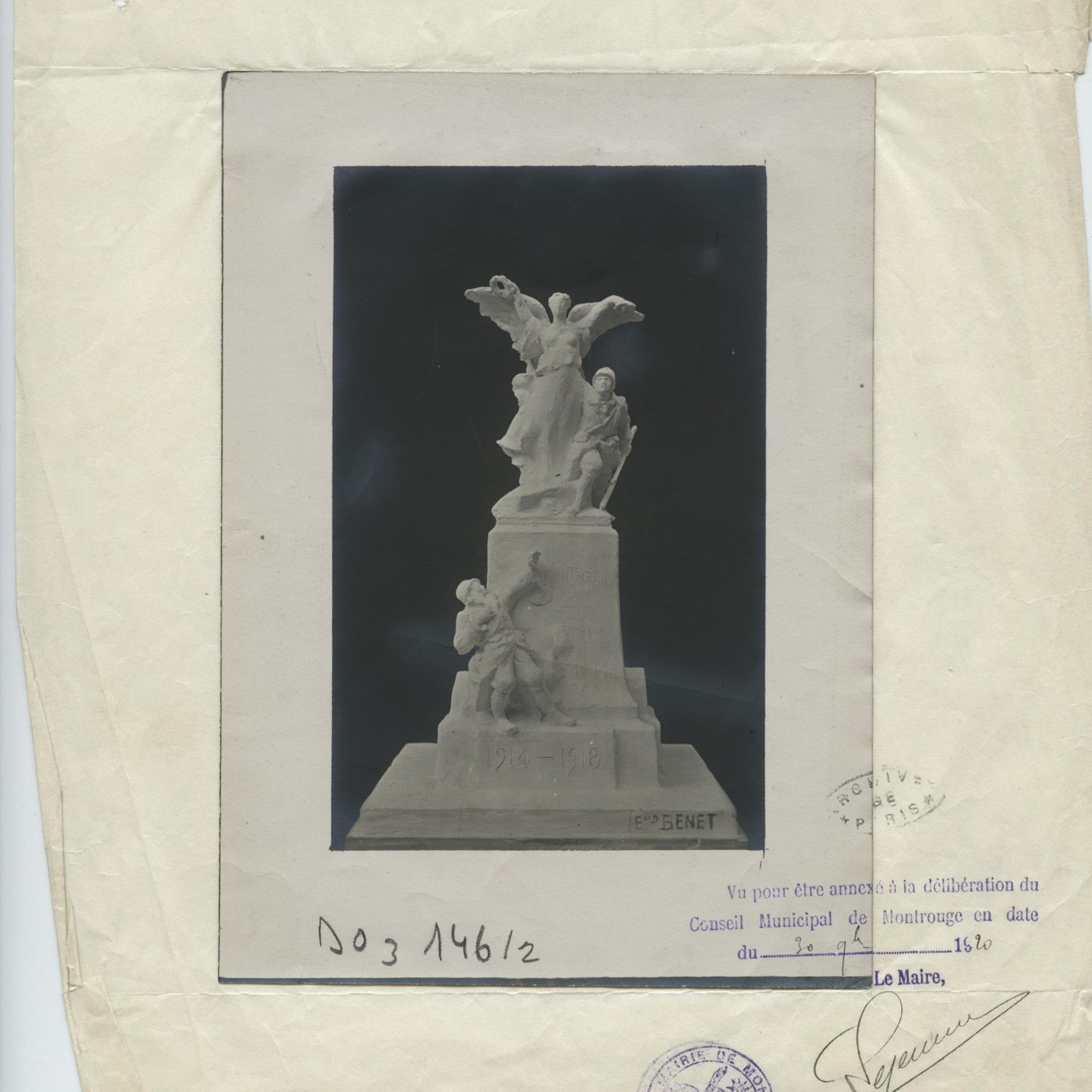 Archives Municipales, M 235, délibérations du Conseil Municipal en date des 17 aout 1920 (fol. 144), 30 novembre 1920 (fol. 186), 7 septembre 1923 (fol 73).