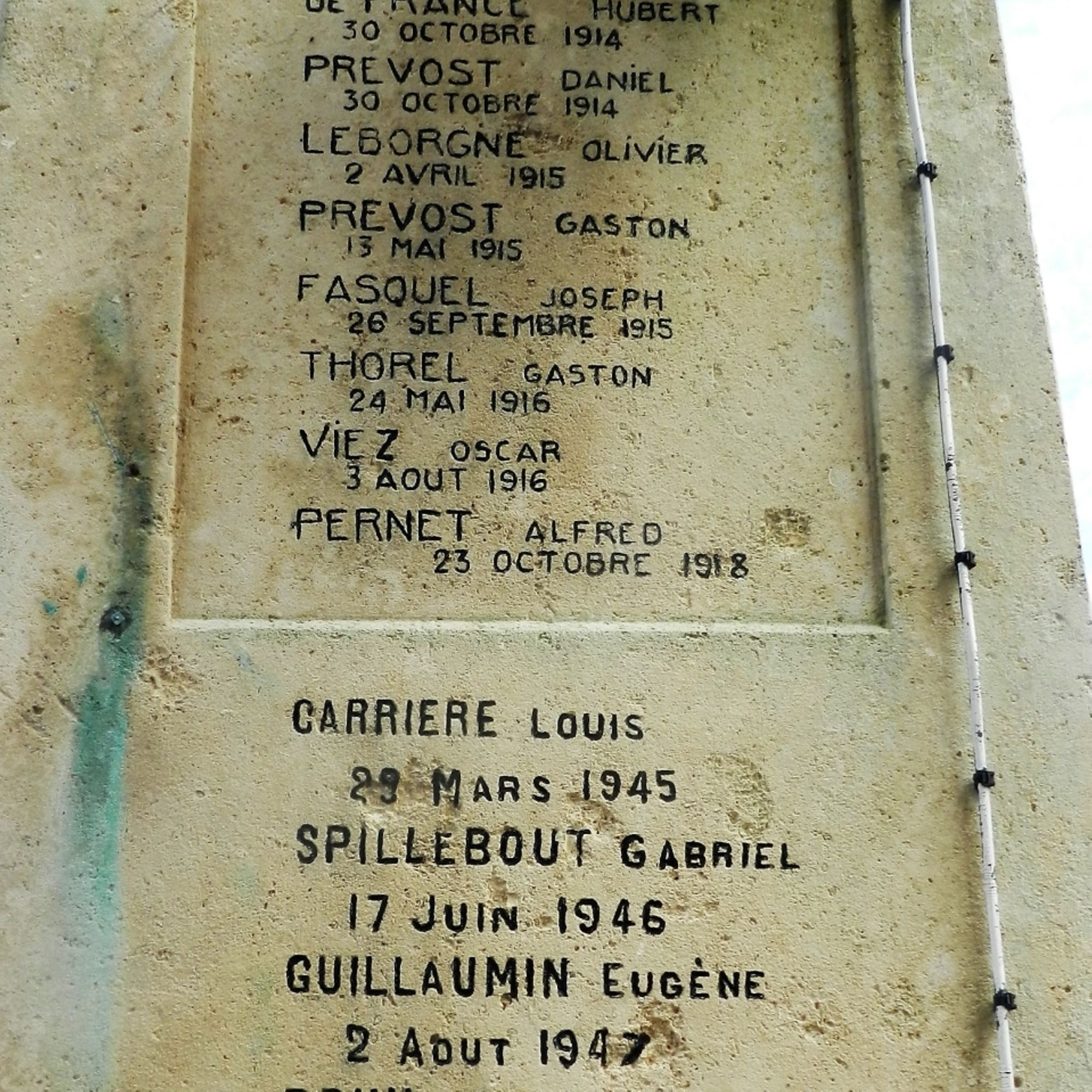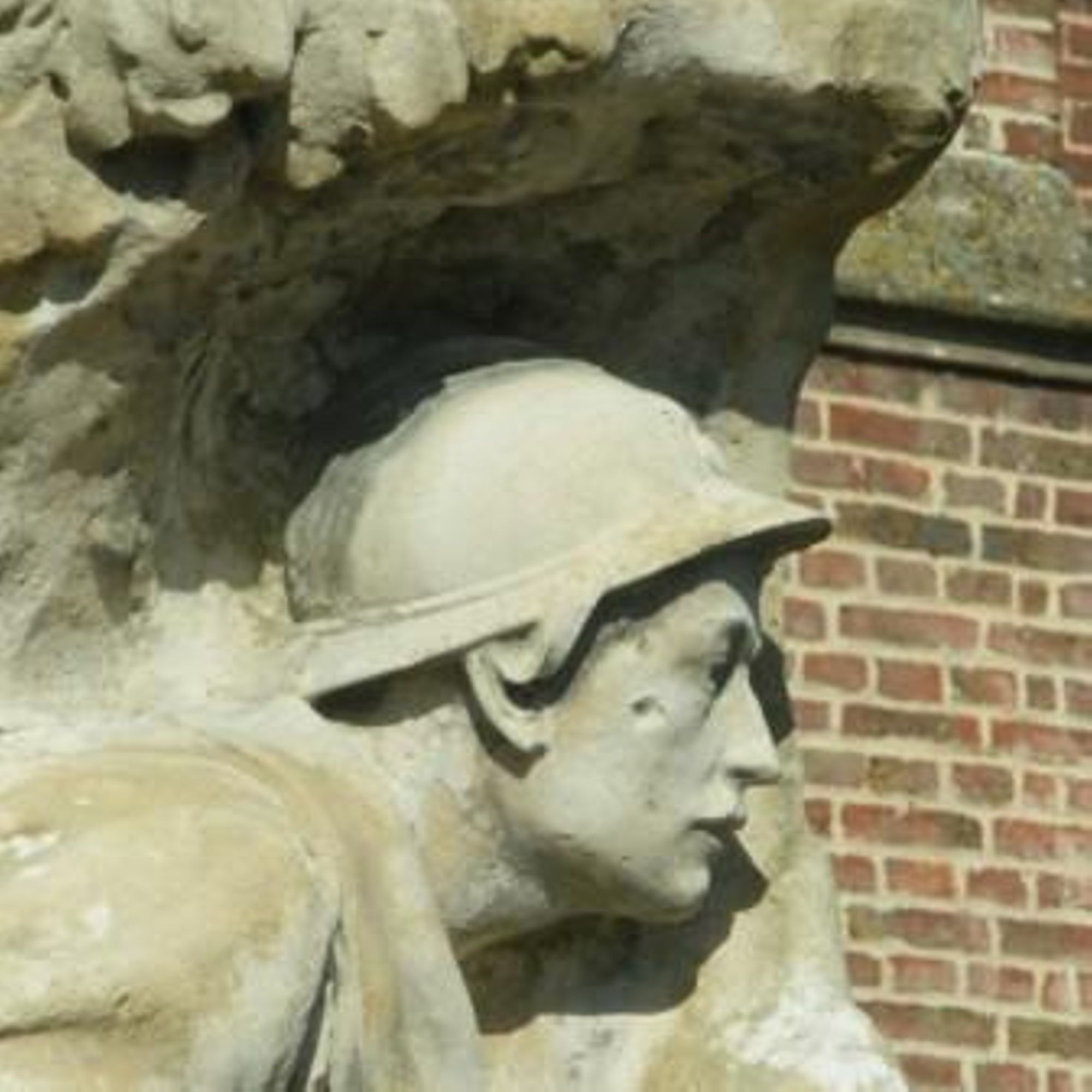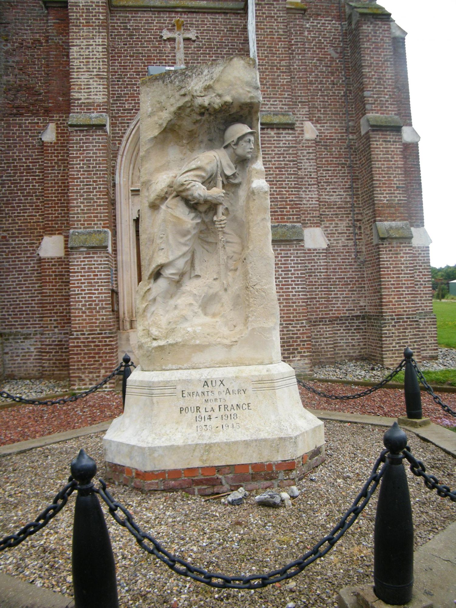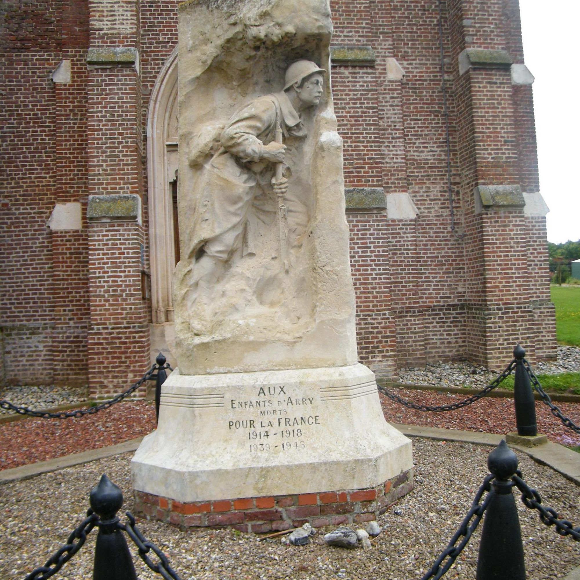 Érigée en face de l'église, cette composition date de 1921. Louis Leclabart, auteur du monument d'Abbeville, réalise encore une fois une oeuvre originale, en montrant le soldat en action, dans sa tranchée.