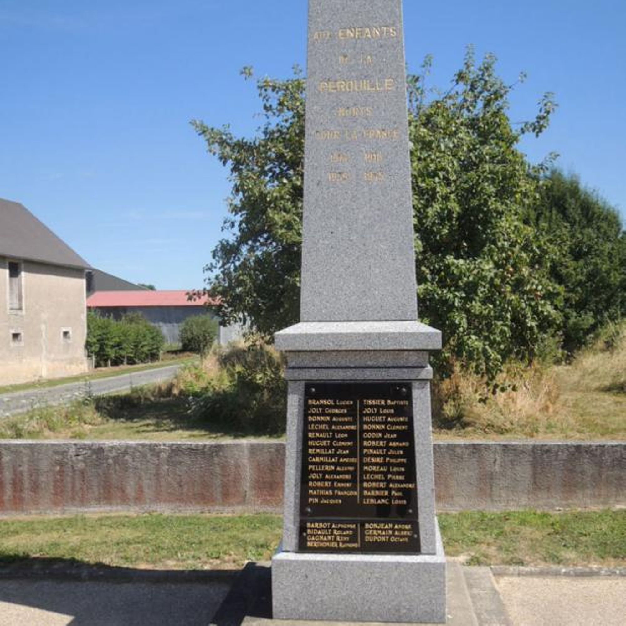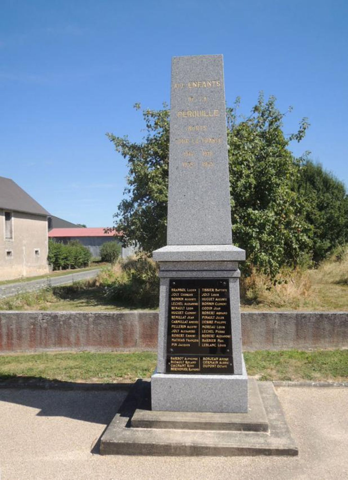 - Le 16 octobre 1923, le maire de La Pérouille établit un mandat de 500 francs au nom de « Simonet et Duris Tailleurs de pierres à Châteauroux », pour « …un monument commémoratif en mosaïque, ciment et marbre. Fourni le 15 octobre 1923 ».