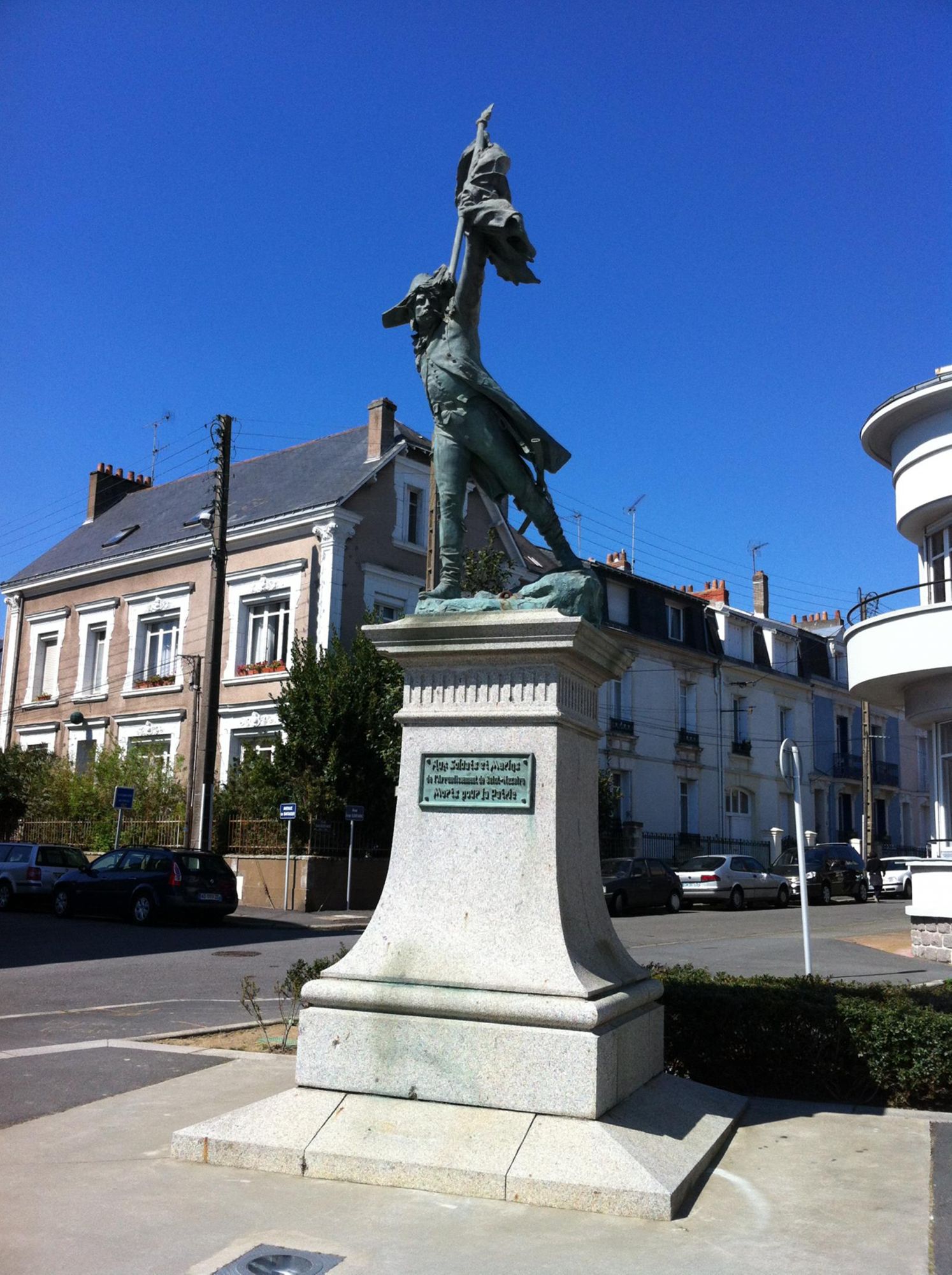 Cette statue en bronze représentant un soldat de l'An II est un don de l'Etat et a échappé à la récupération du métal par les occupants allemands pendant la Seconde Guerre mondiale. C'est l’une des rares statues de bronze d’avant-guerre ayant échappé à la refonte et aux bombardements.