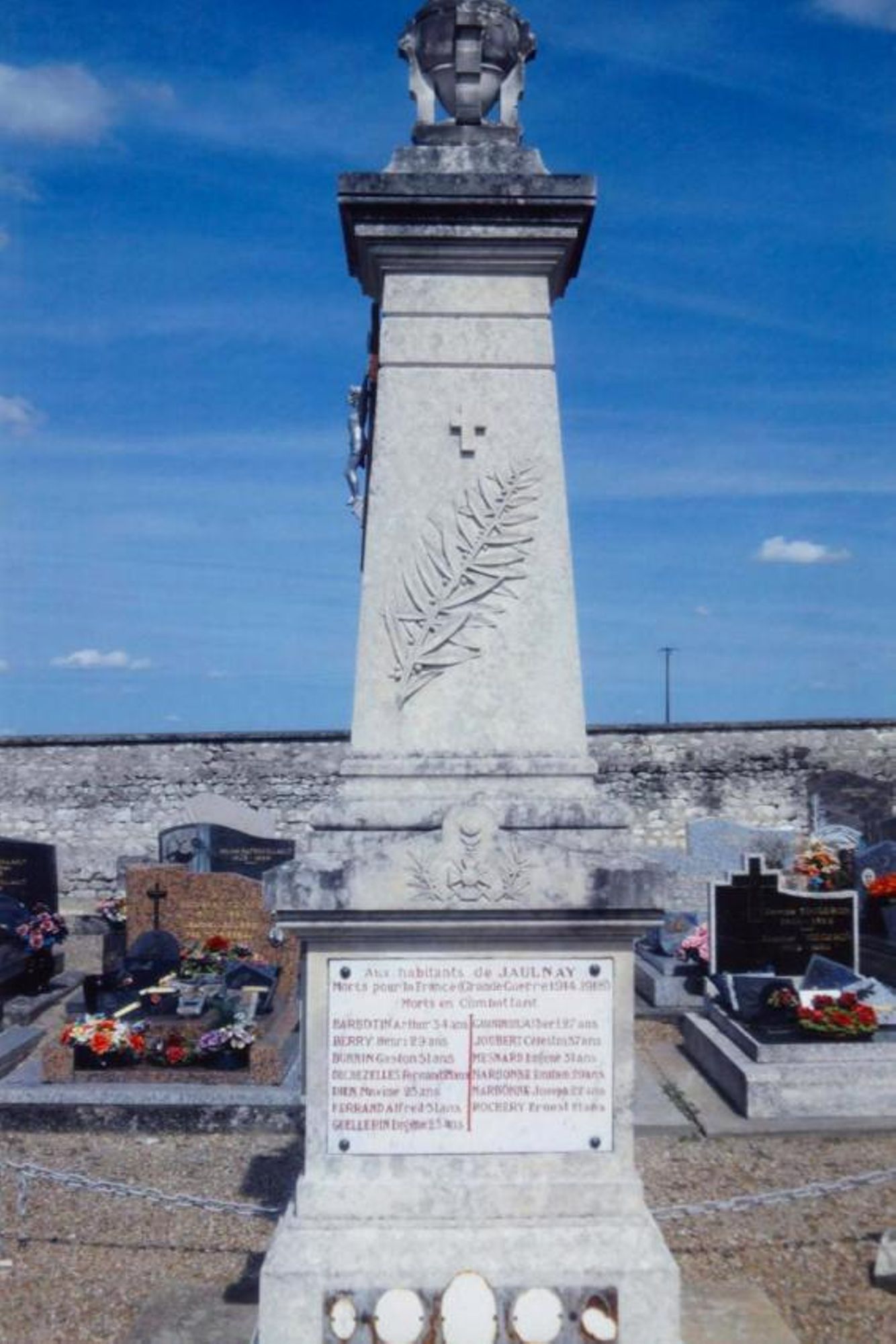 1 obélique surmonté d'une urne. Sur l'obélisque 1 croix et 1 palme