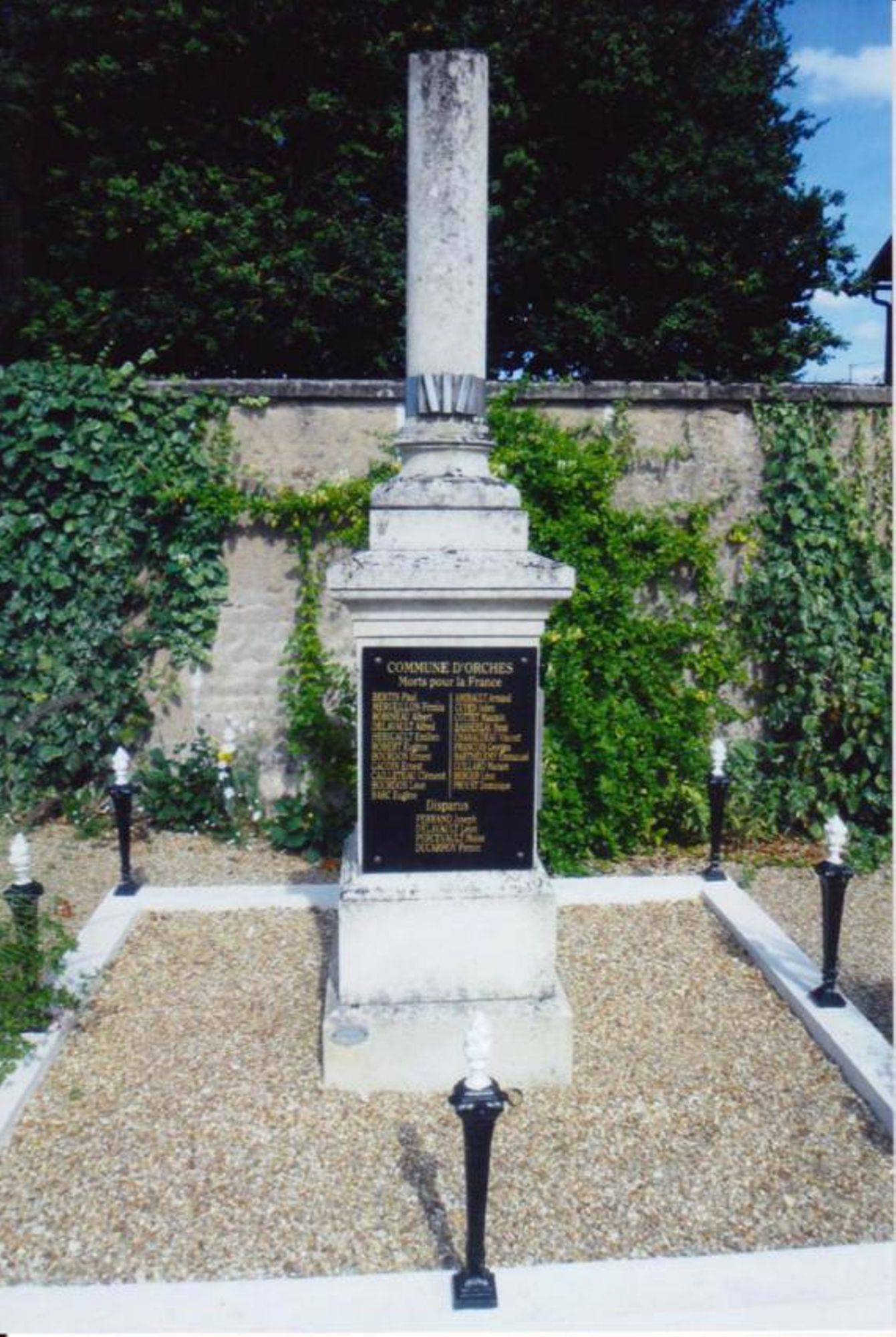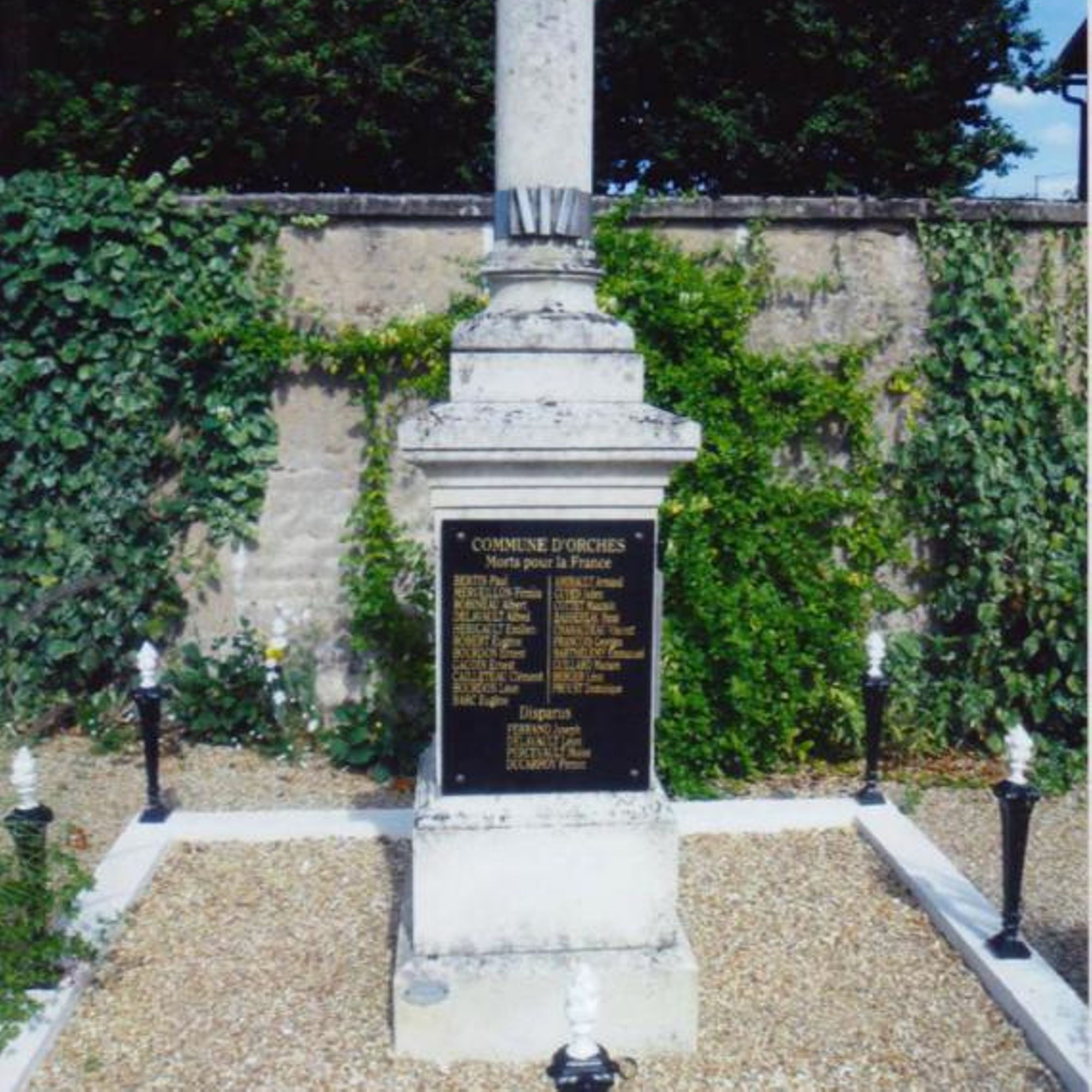 Monument sur espace gravillonnée et entouré de 8 flambeaux délimitant l'espace du monument