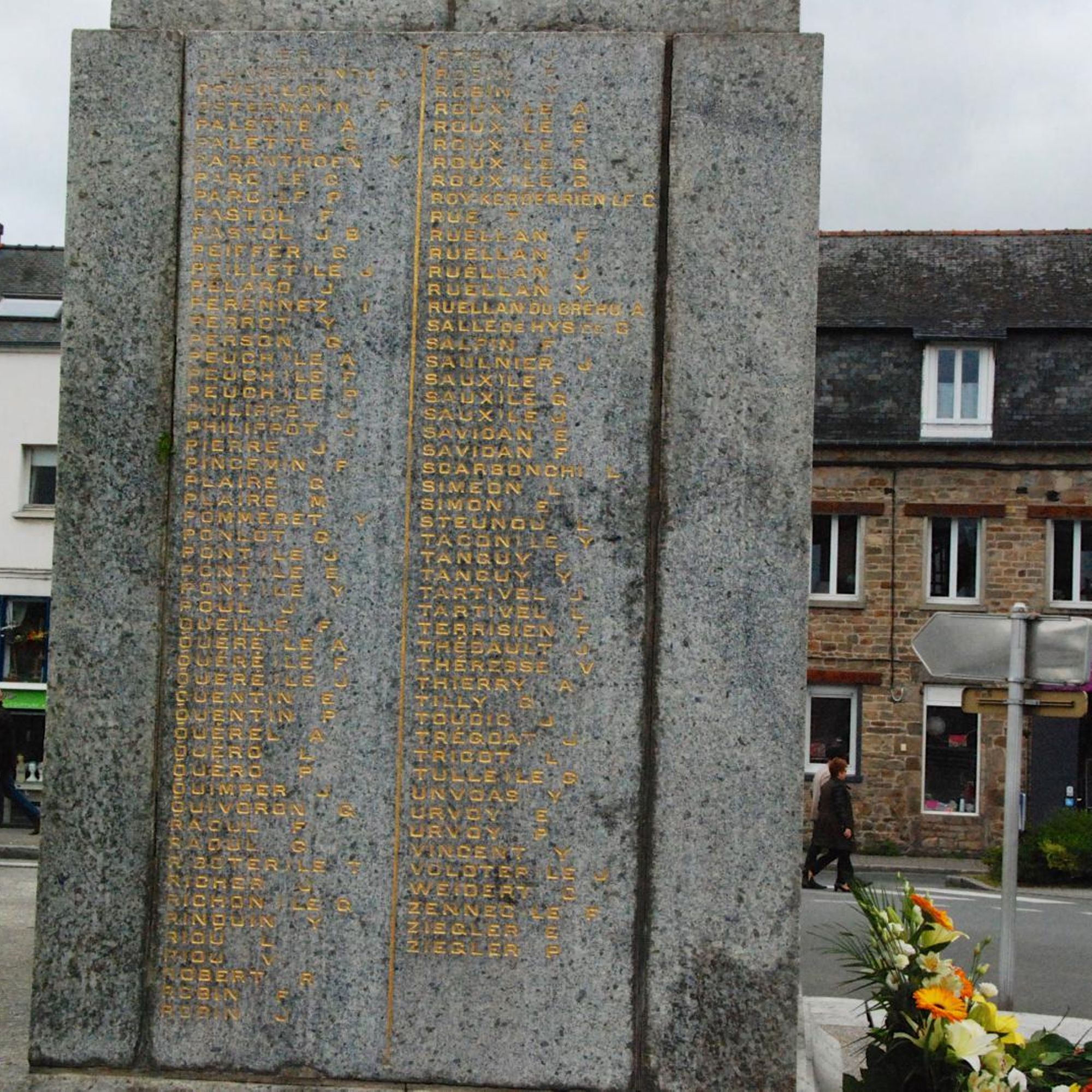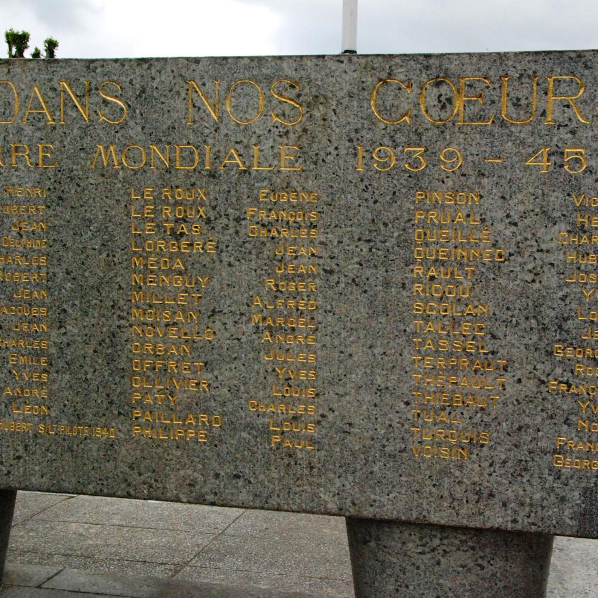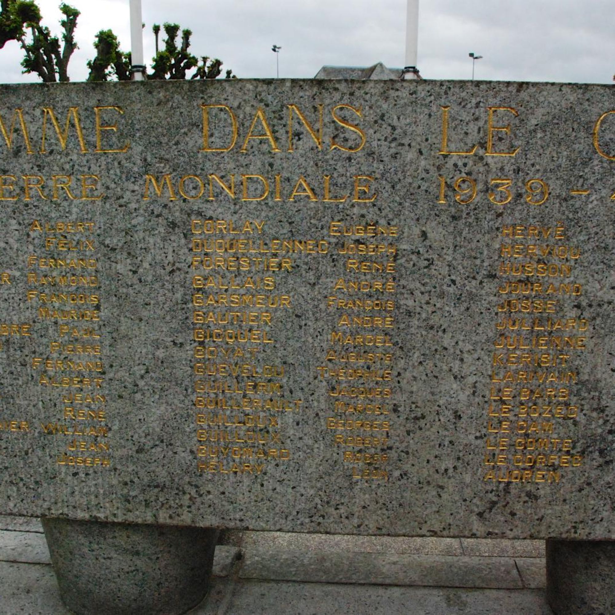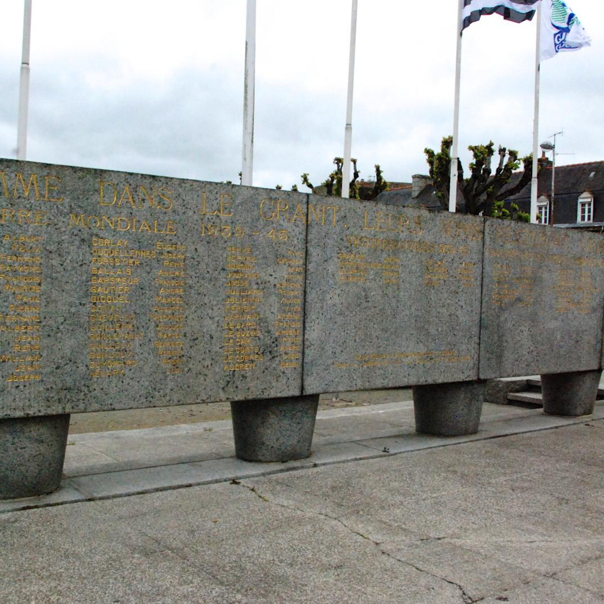 A l'arrière, stèles avec les noms des morts de 39-45