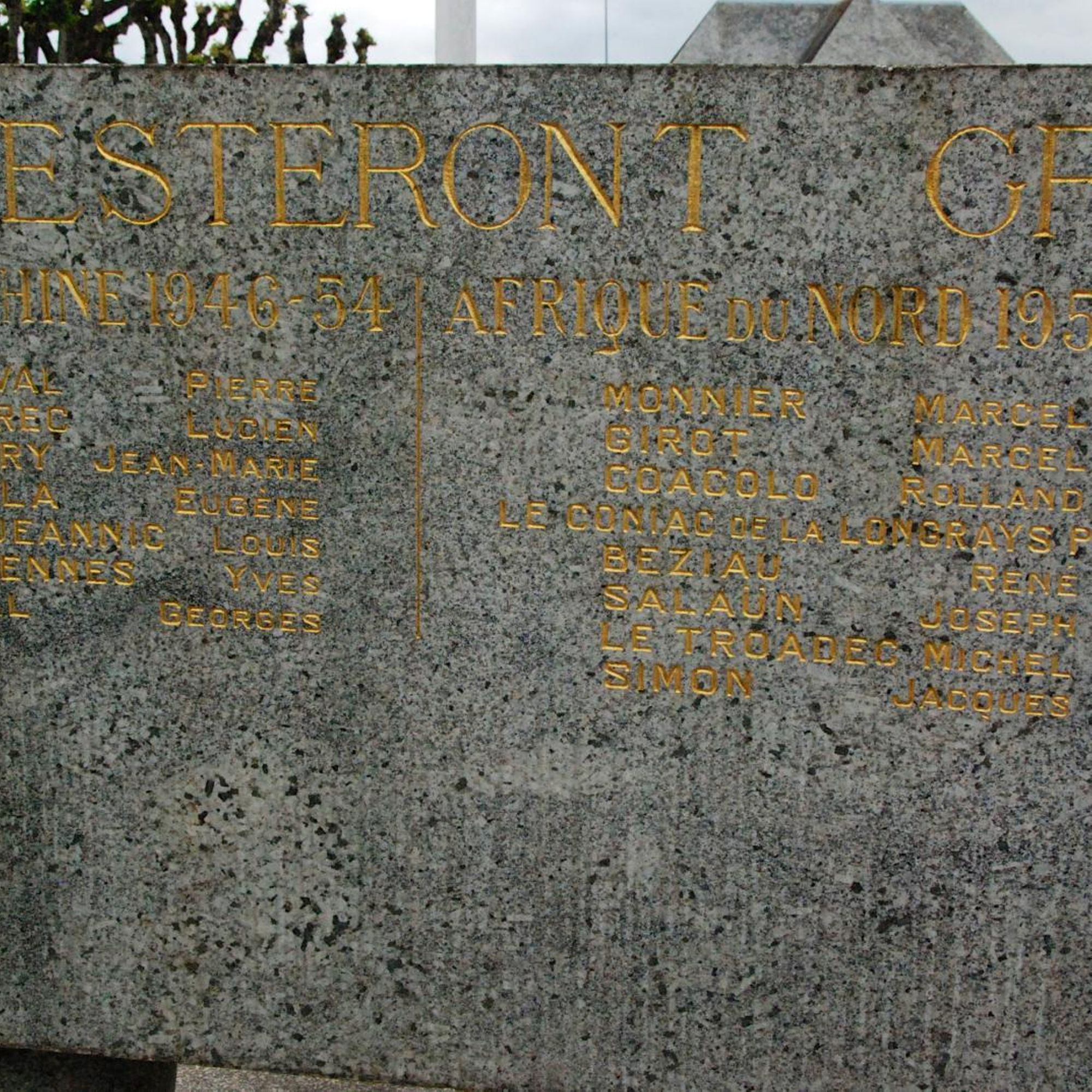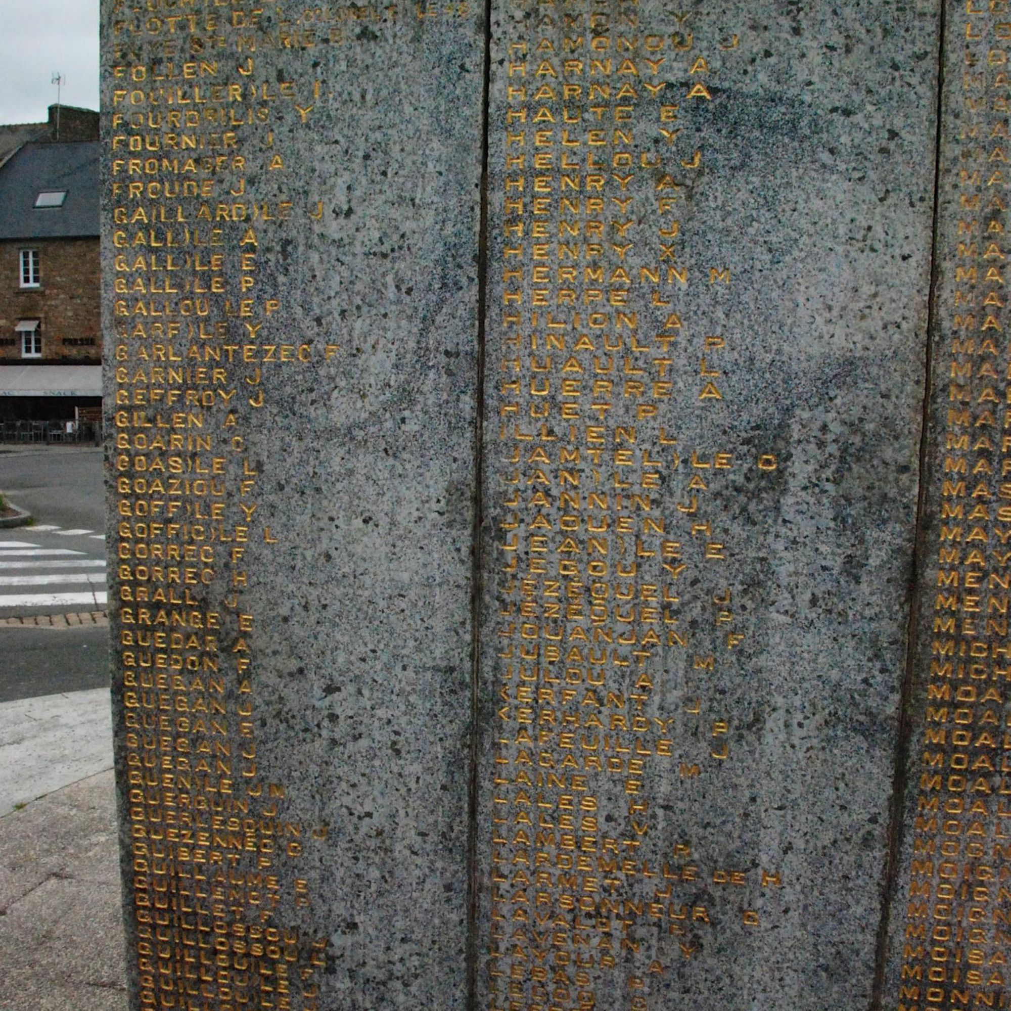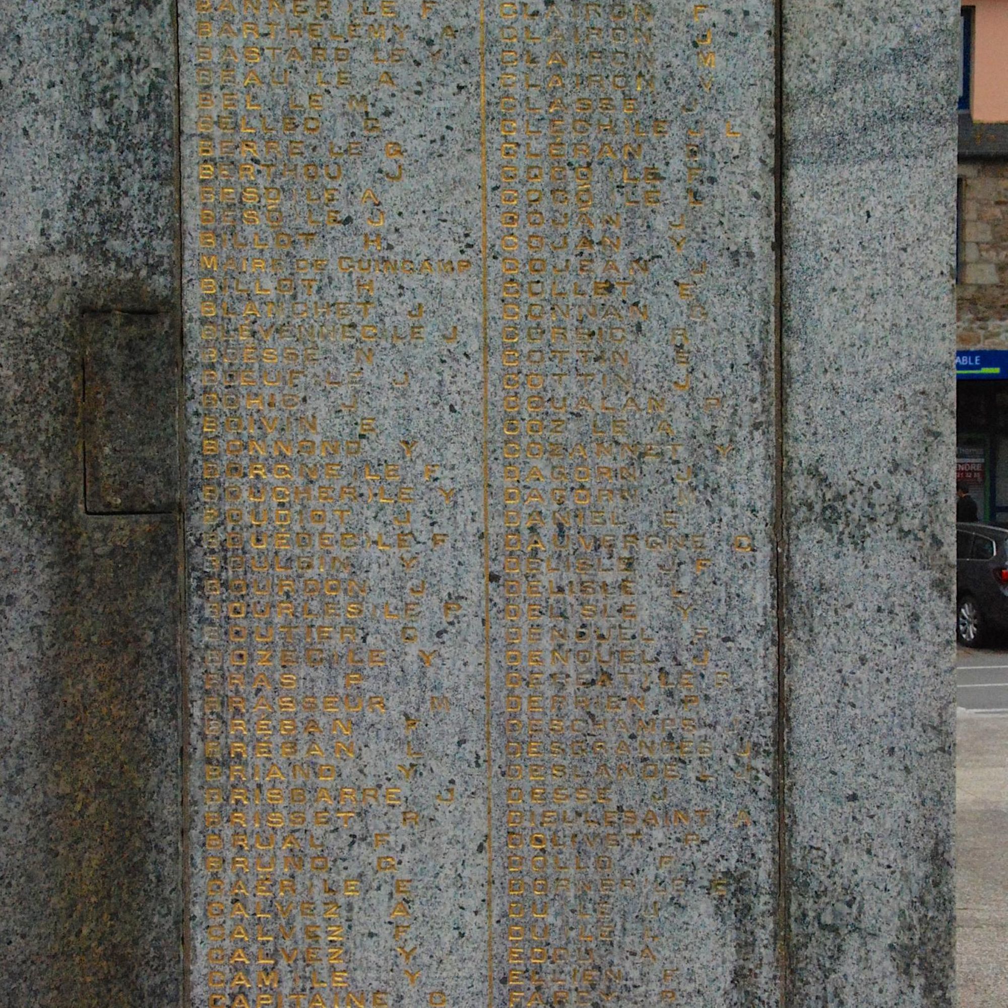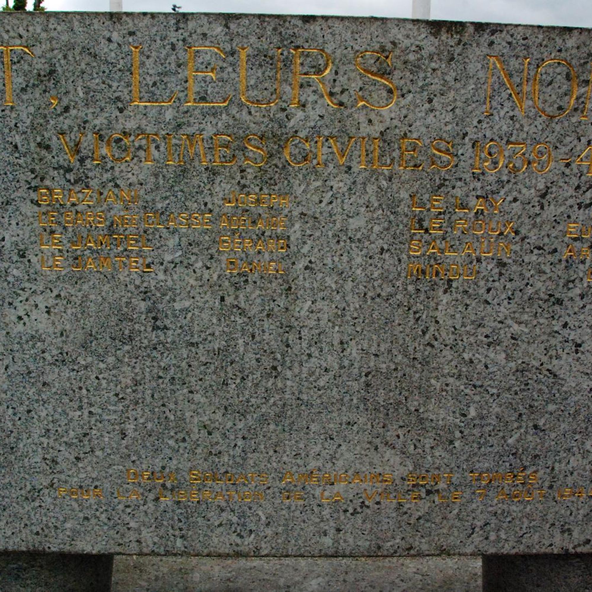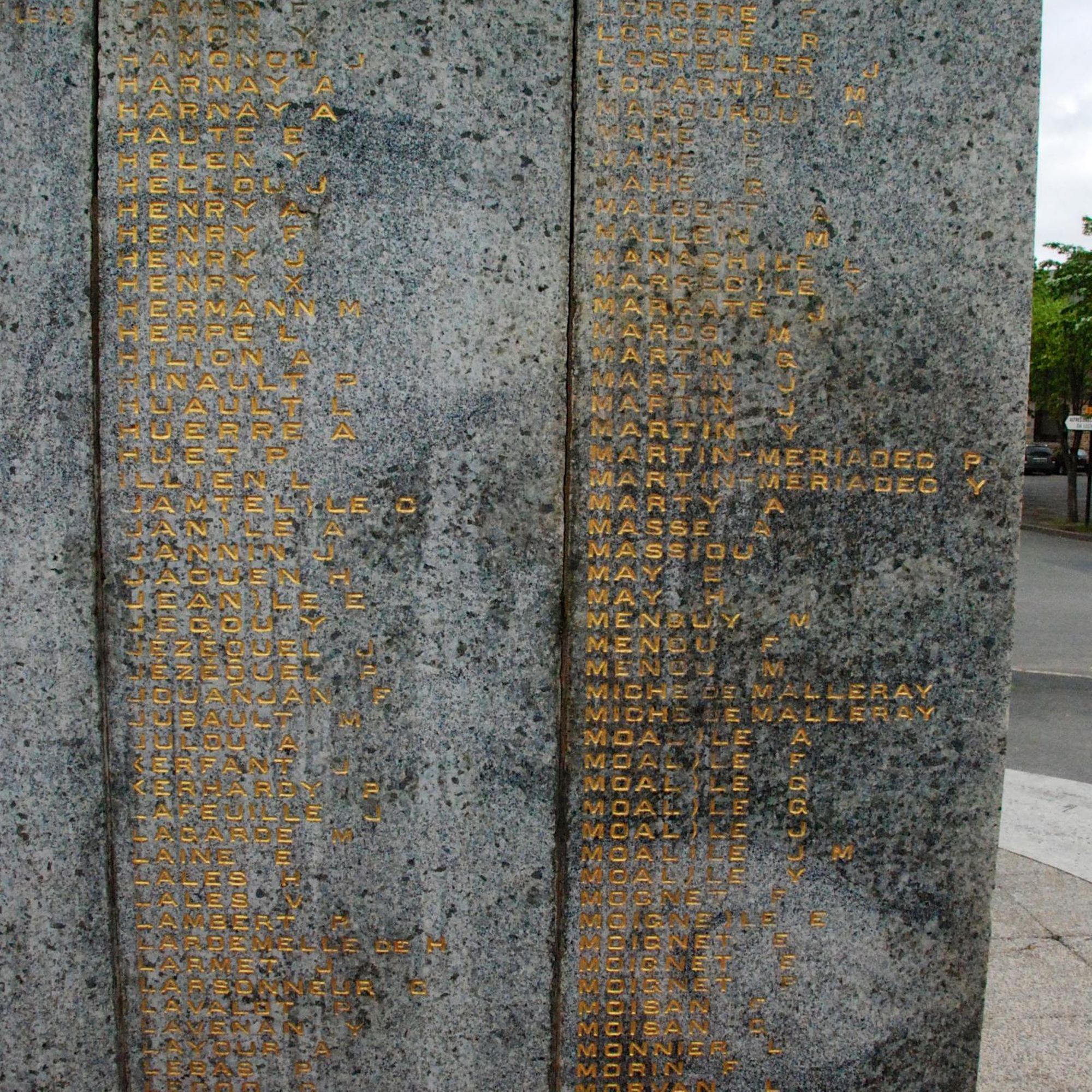 A l'arrière, stèles avec les noms des morts de 39-45