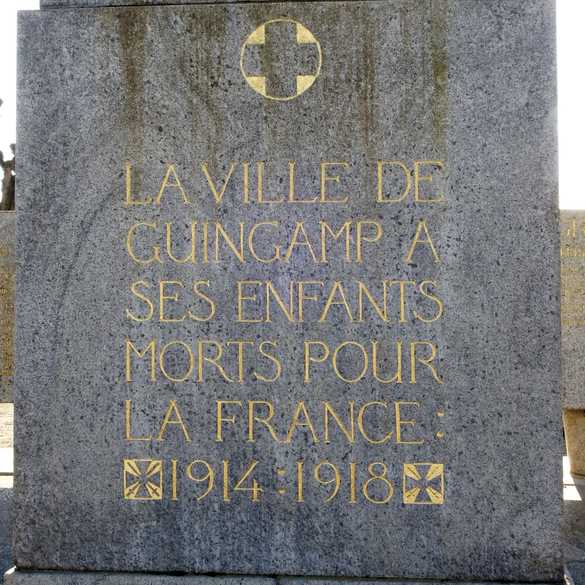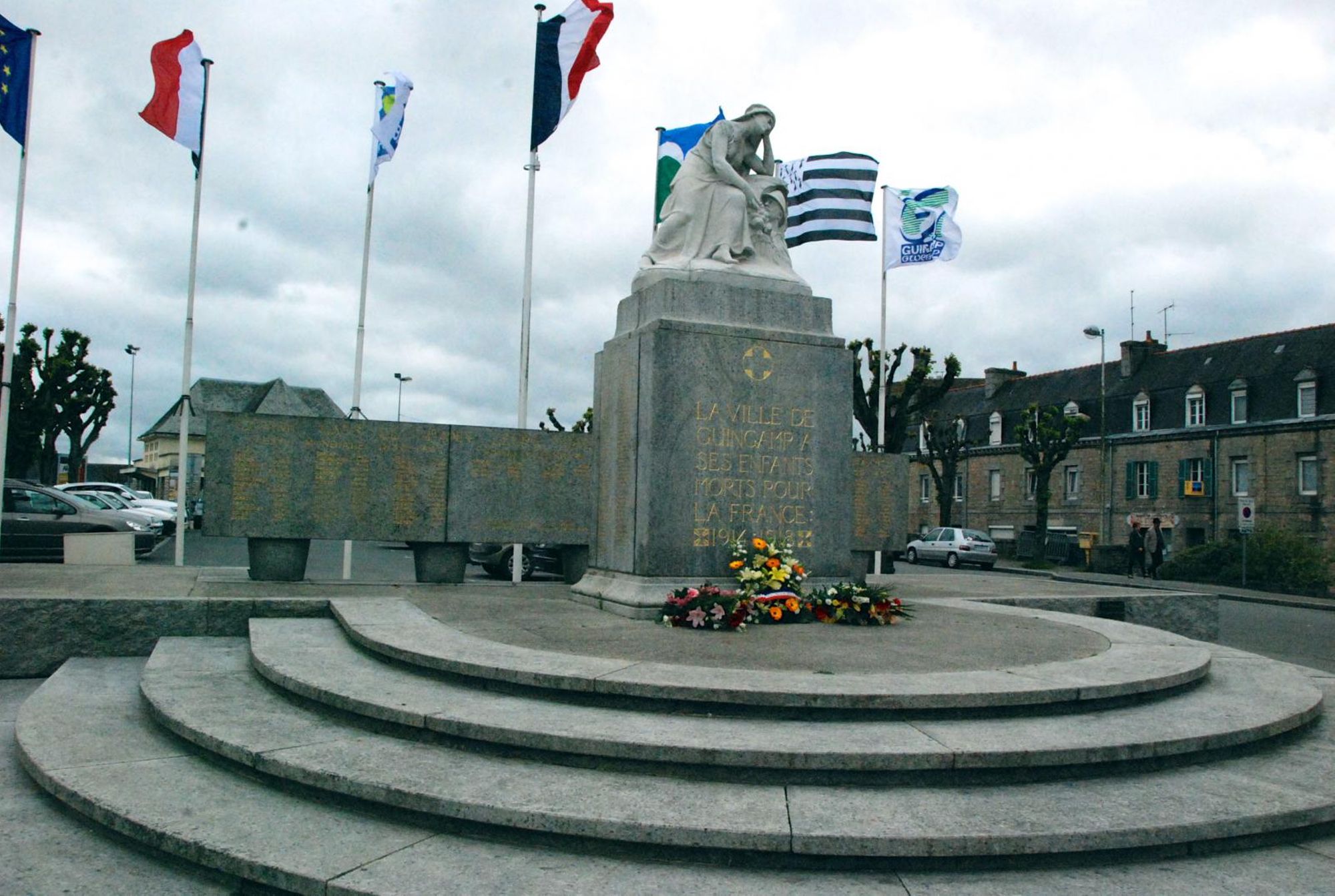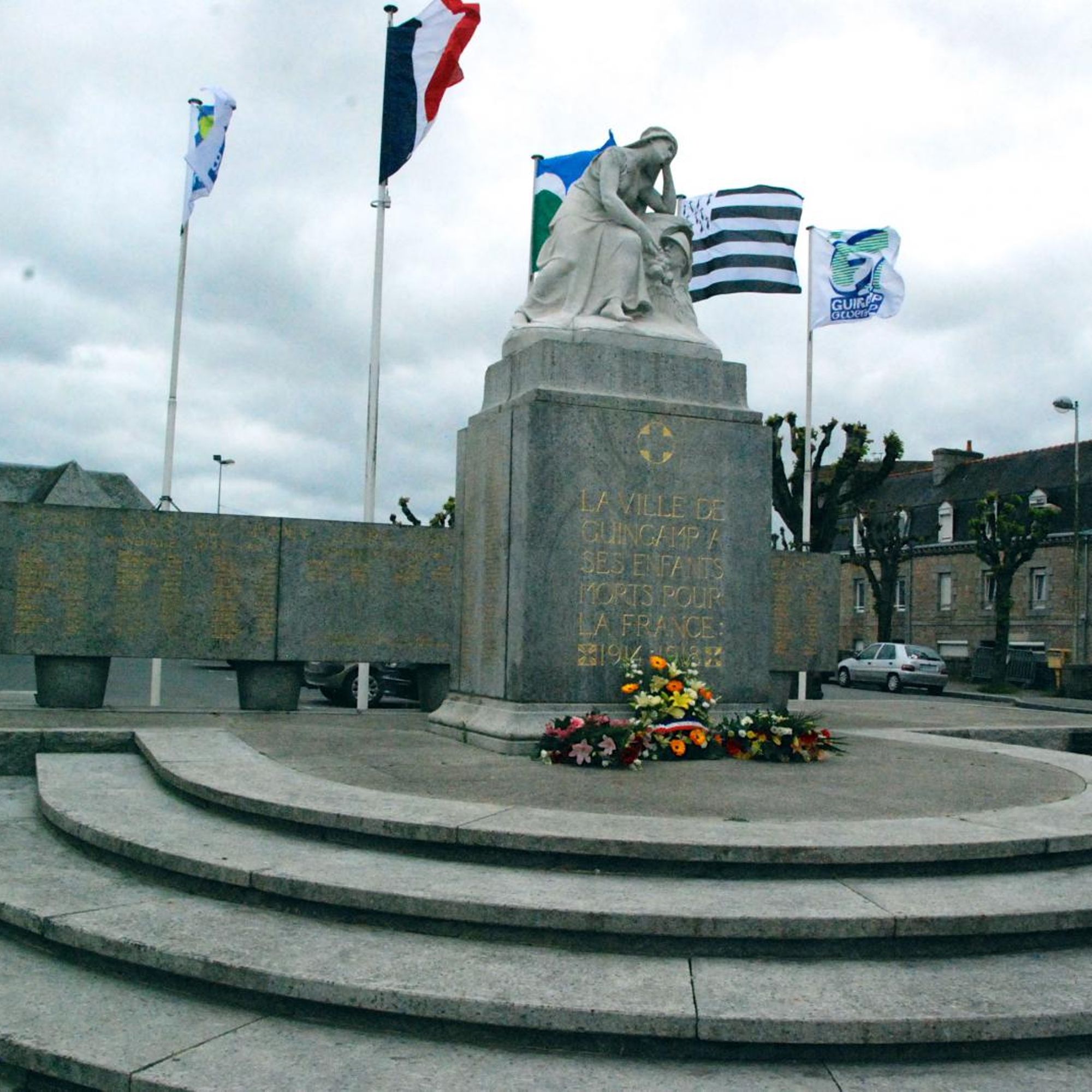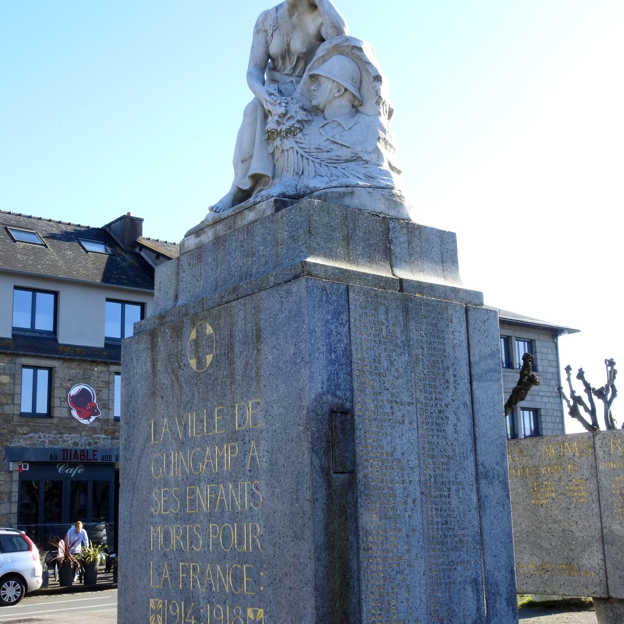 A l'arrière, stèles avec les noms des morts de 39-45