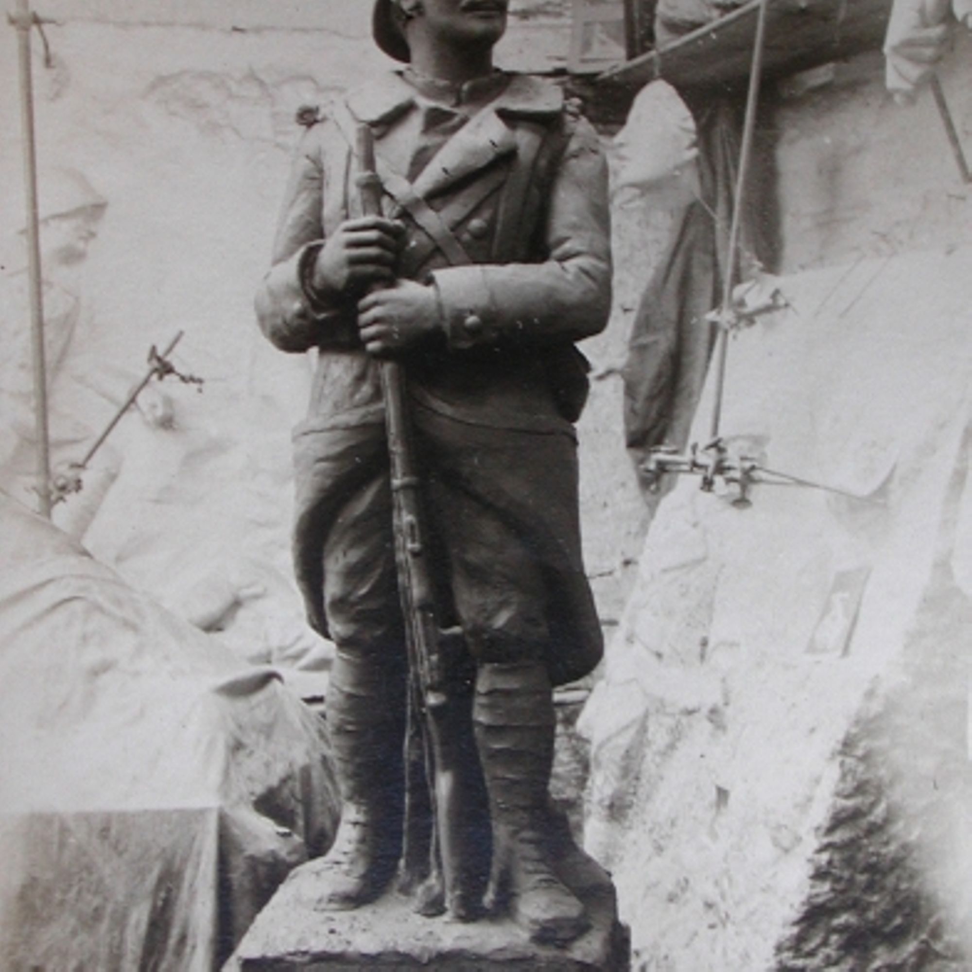 Cette plateforme accueille au centre un emmarchement à trois degrés portant un socle orné d'un Poilu en pied adossé à un obélisque. Plusieurs inscriptions ken lettres dorées sont gravées sur l'obélisque : inscription commémorative à l'avant et noms des victimes de la Grande Guerre sur les côtés et au revers.