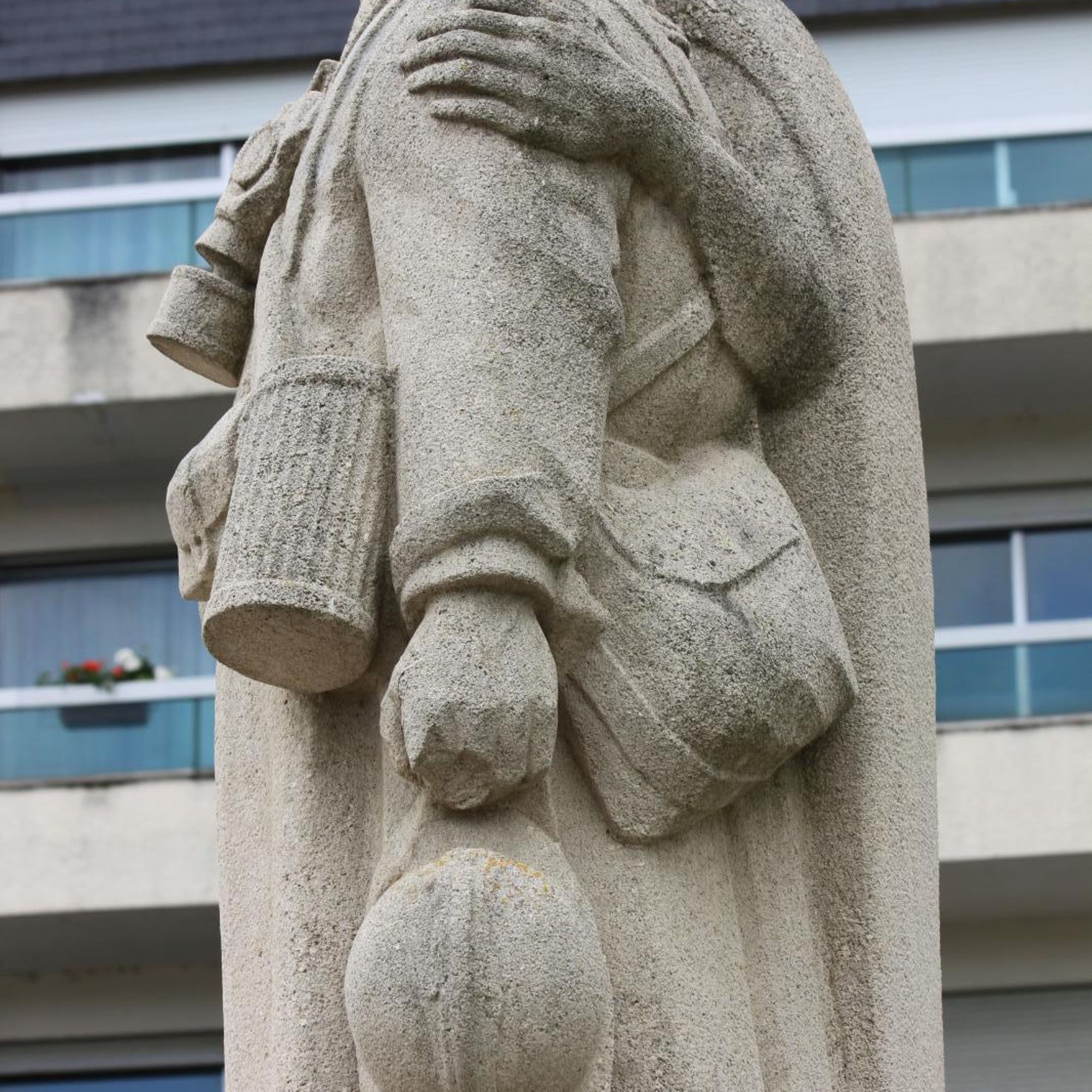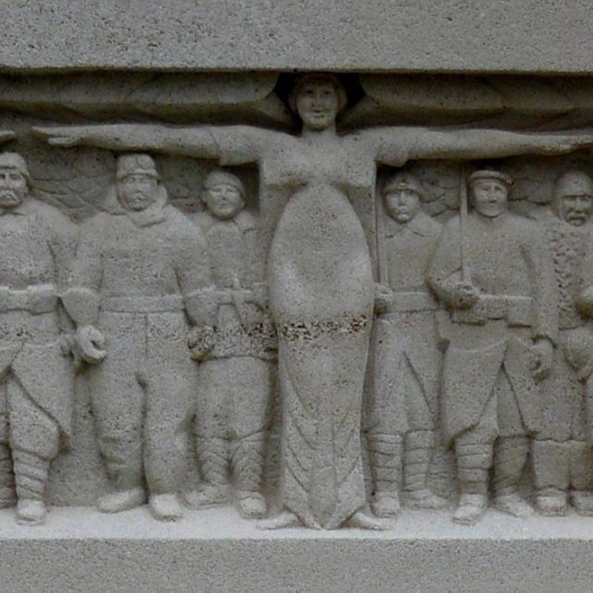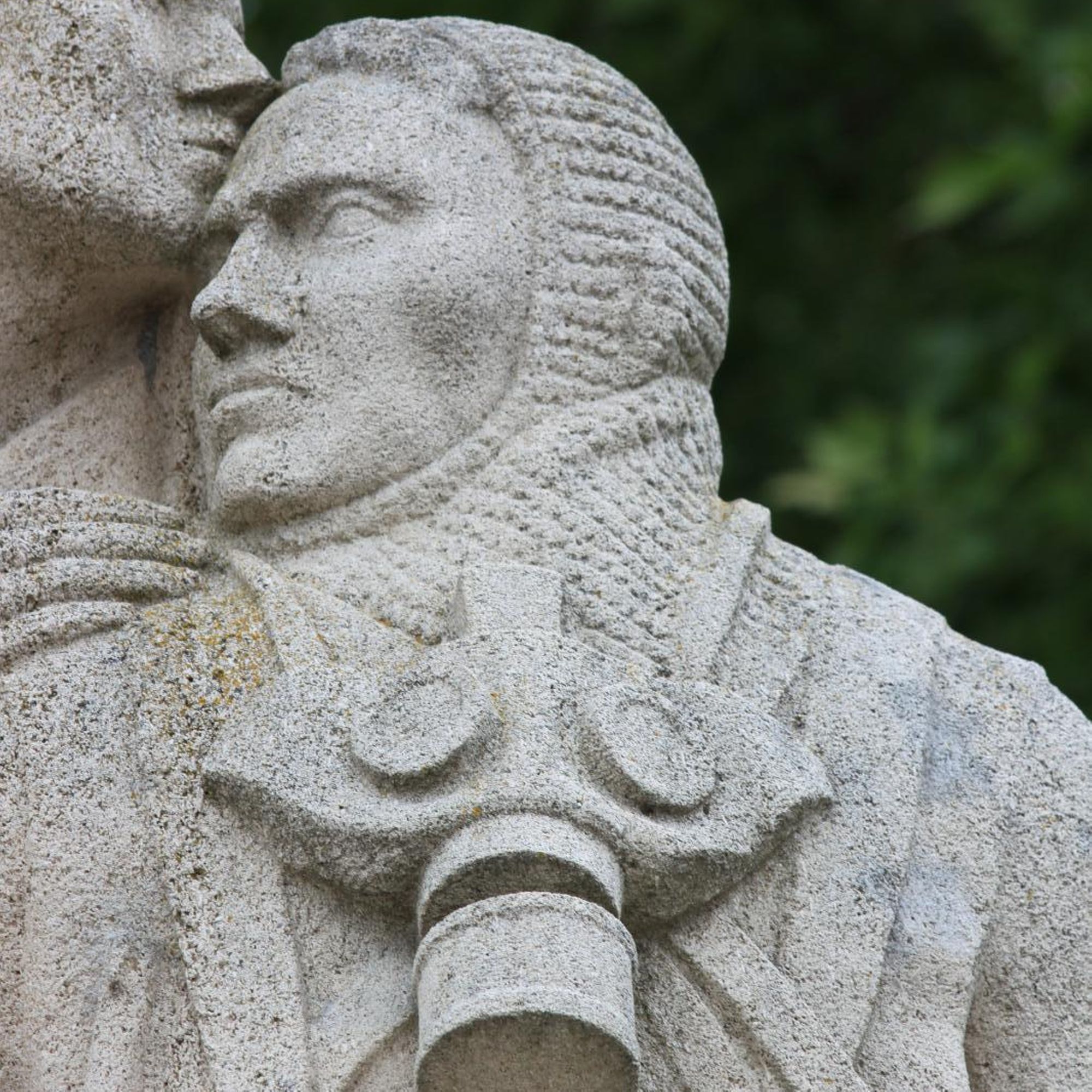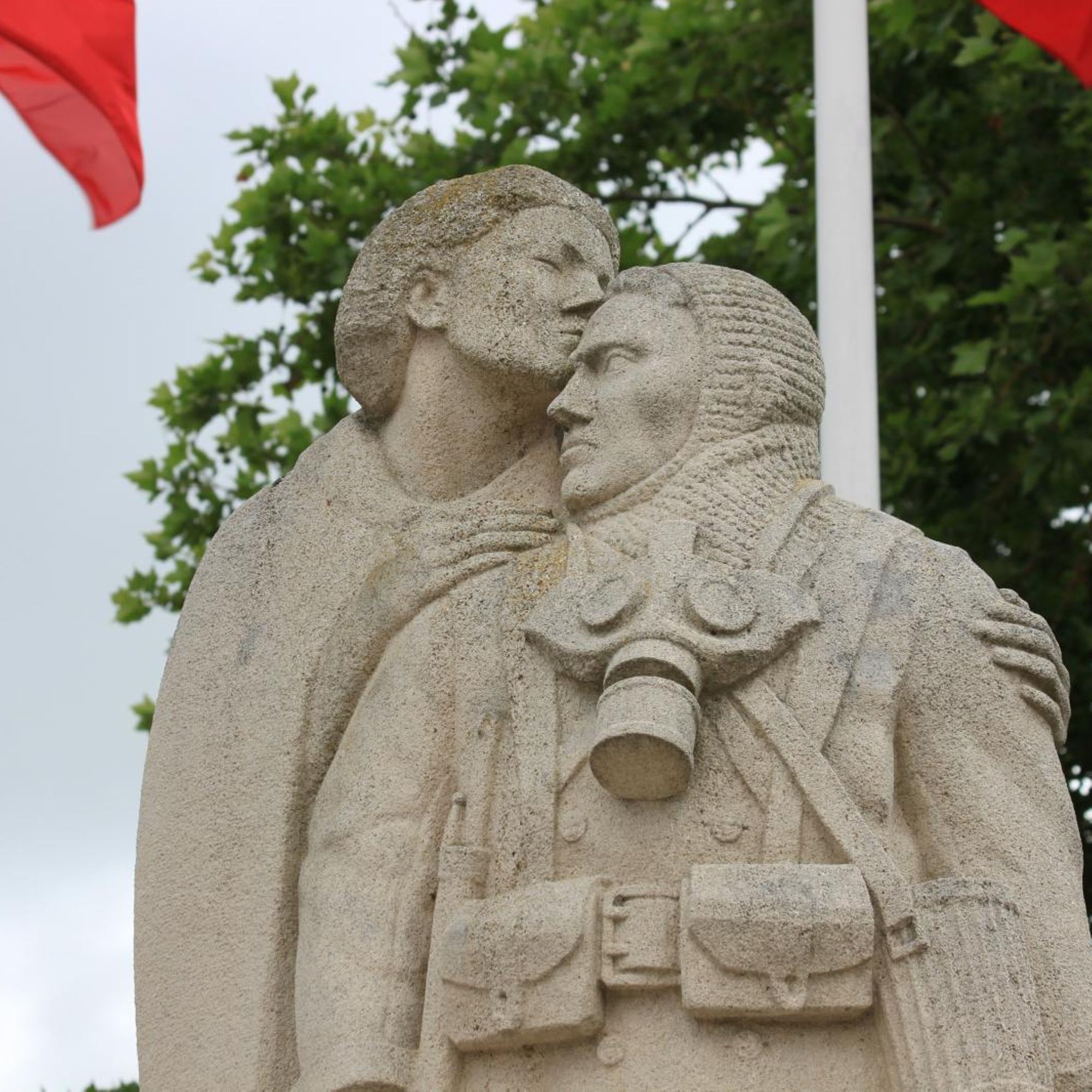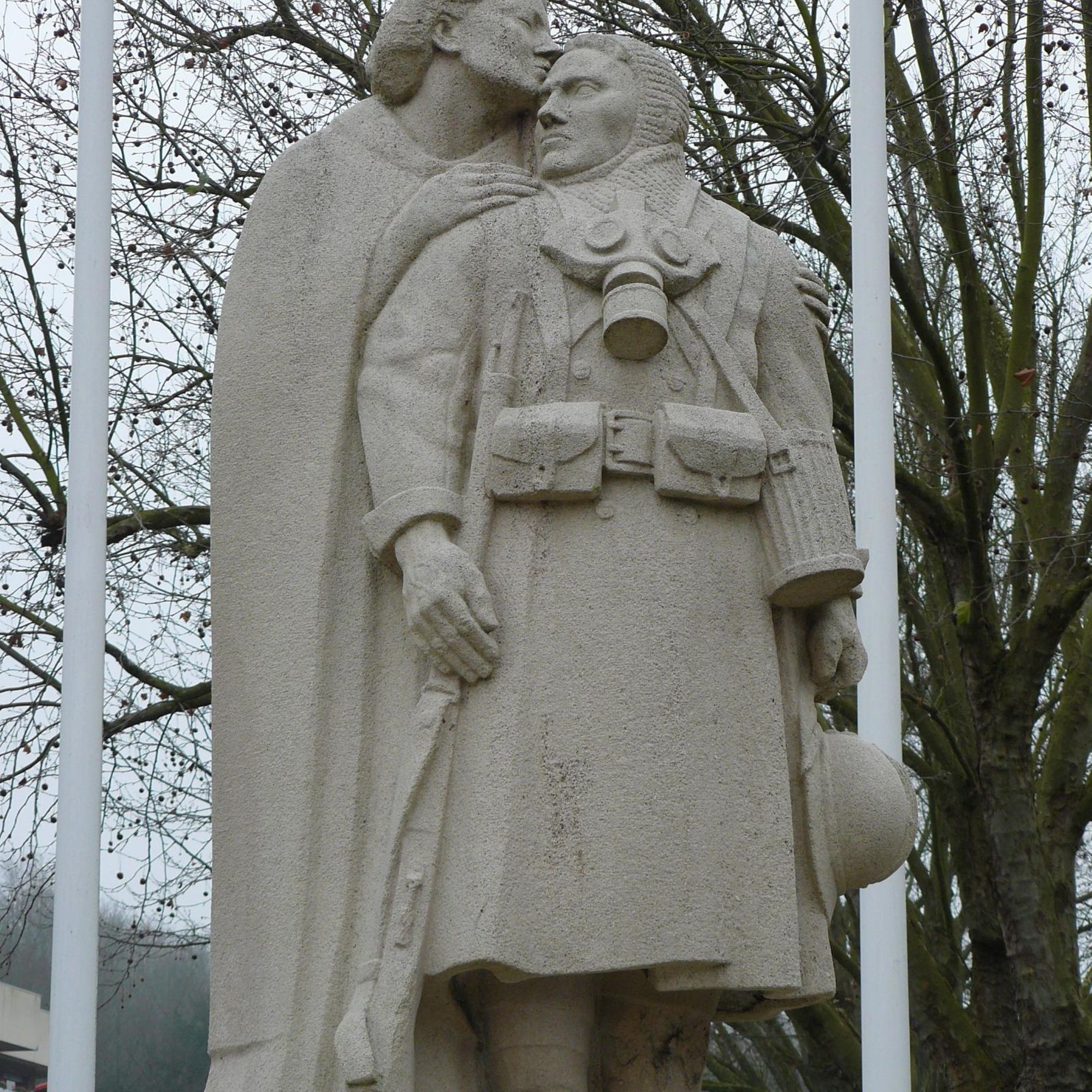 - Statue d'une femme embrassant un poilu avec masque à gaz autour du cou