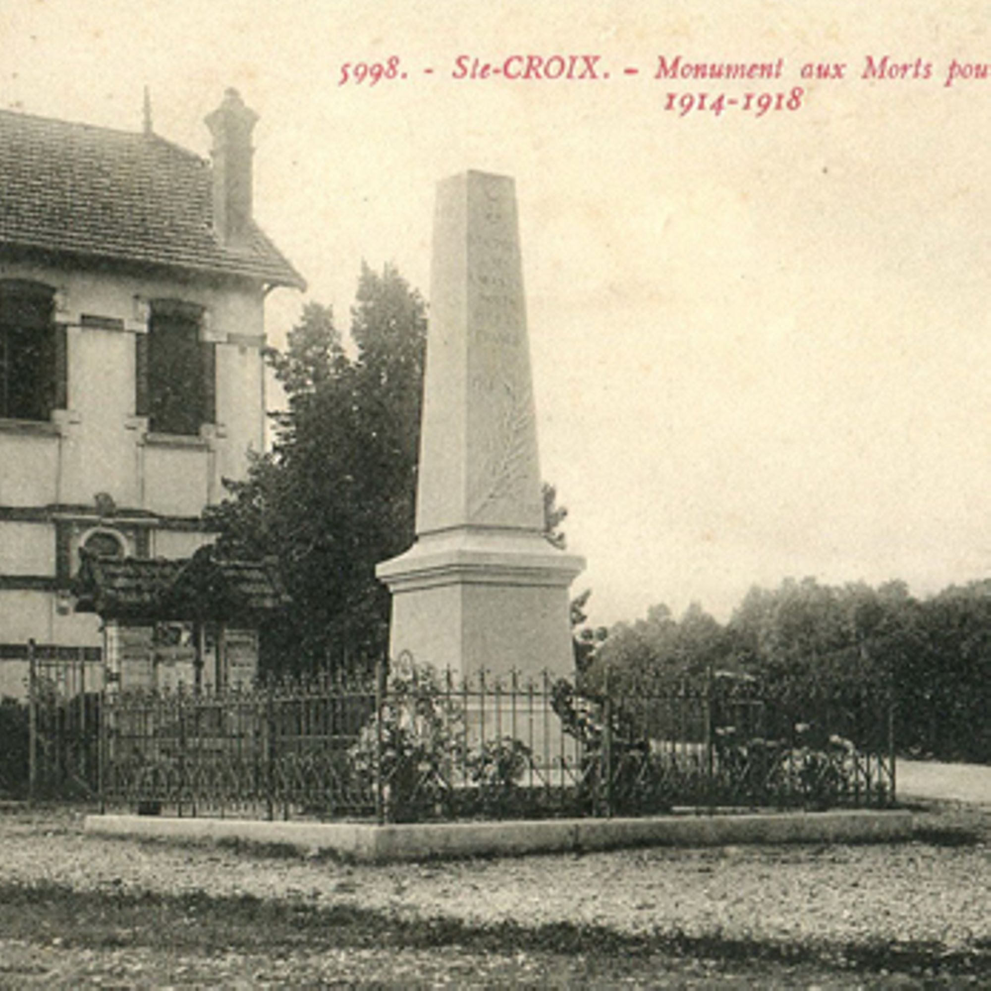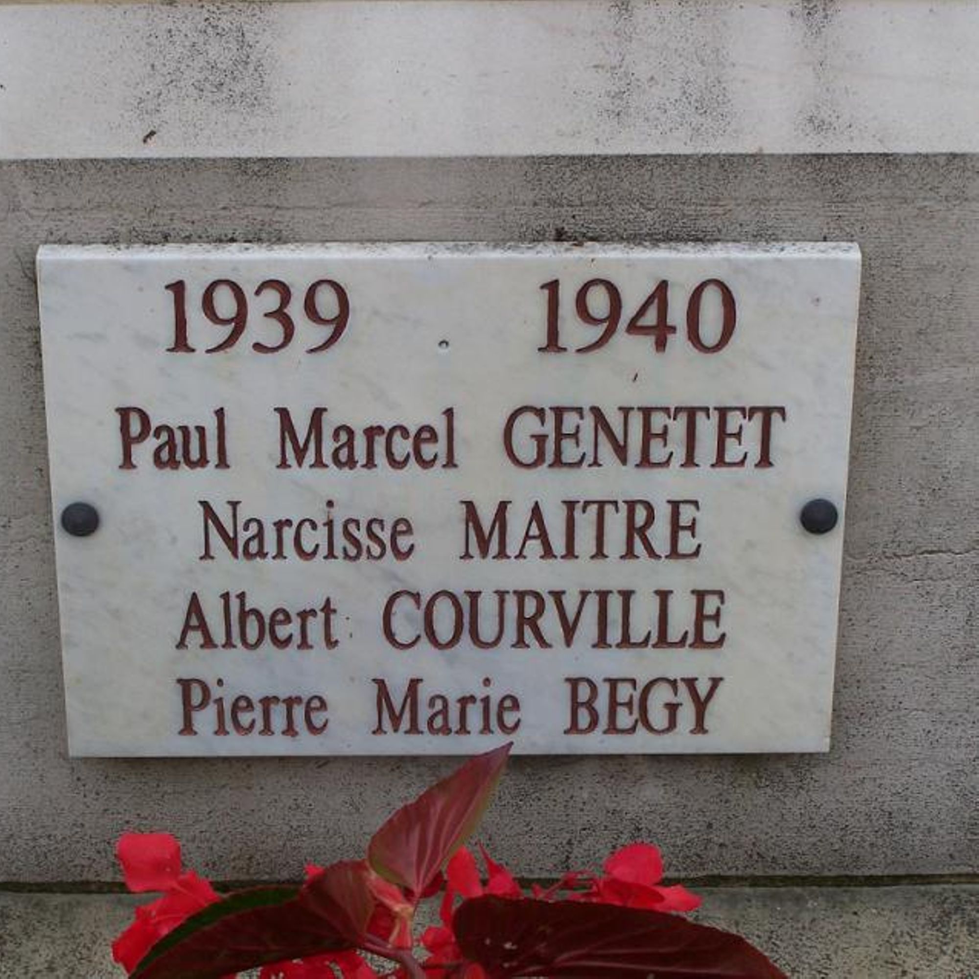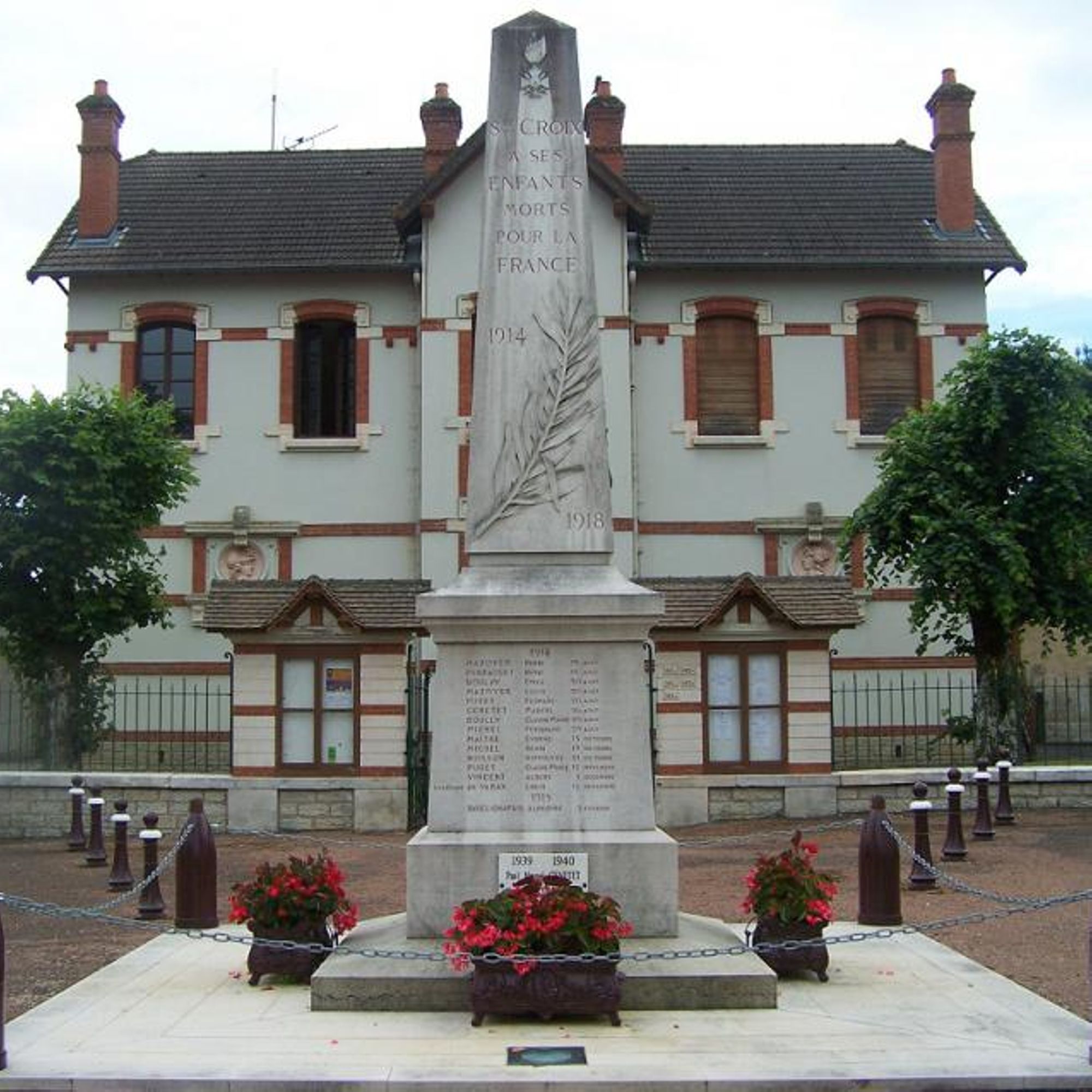 Monument de type obélisque avec croix de guerre et palme scultées sur la face avant.