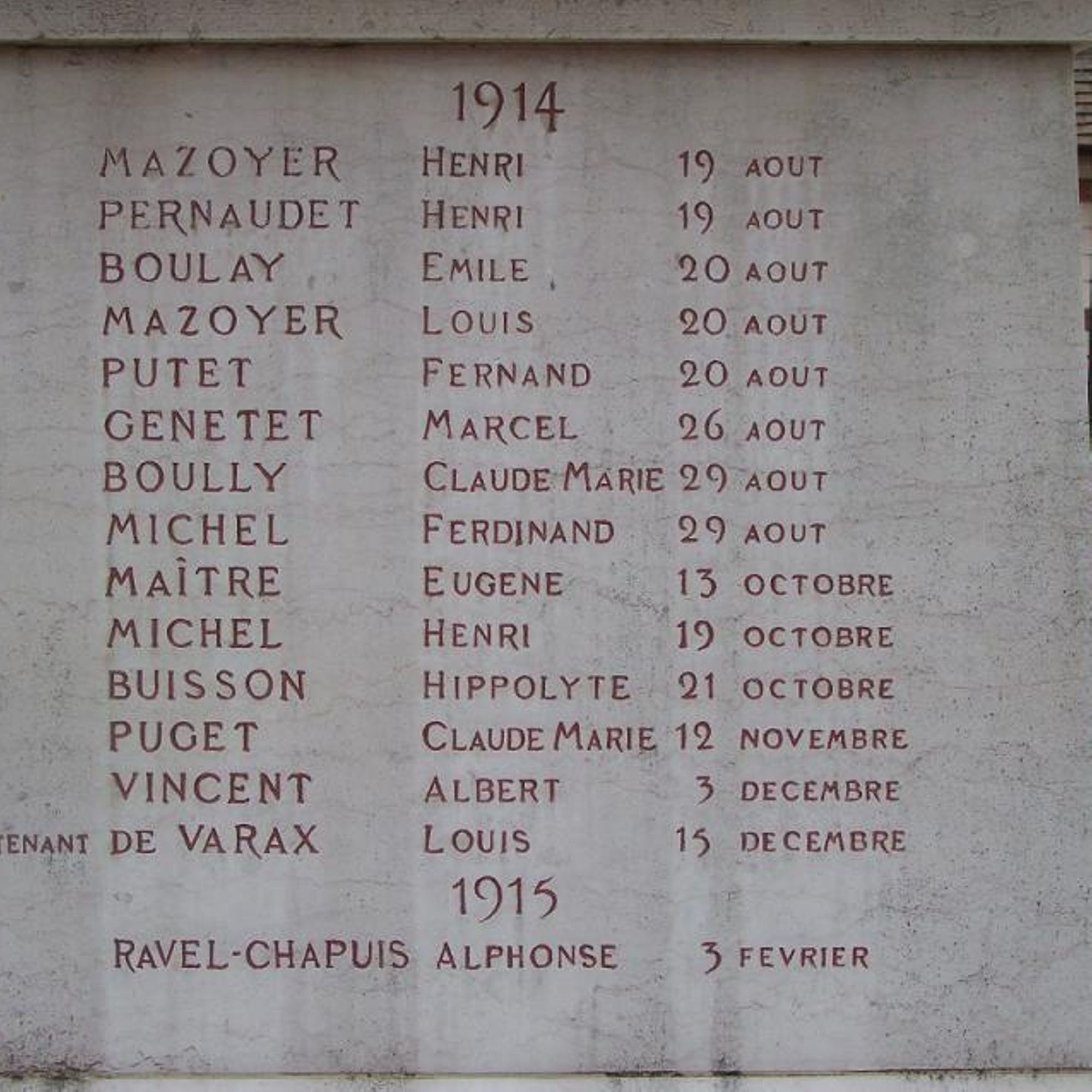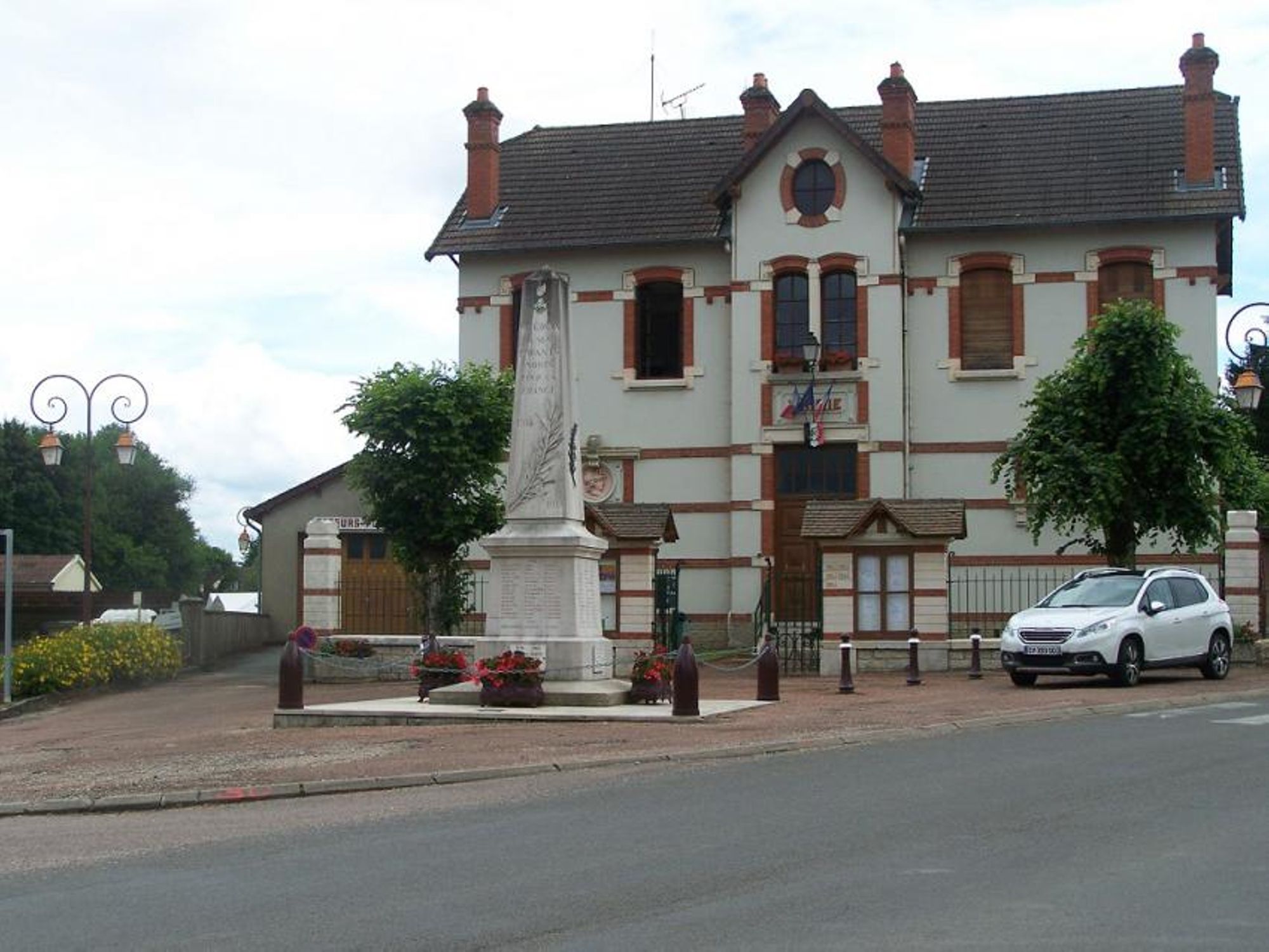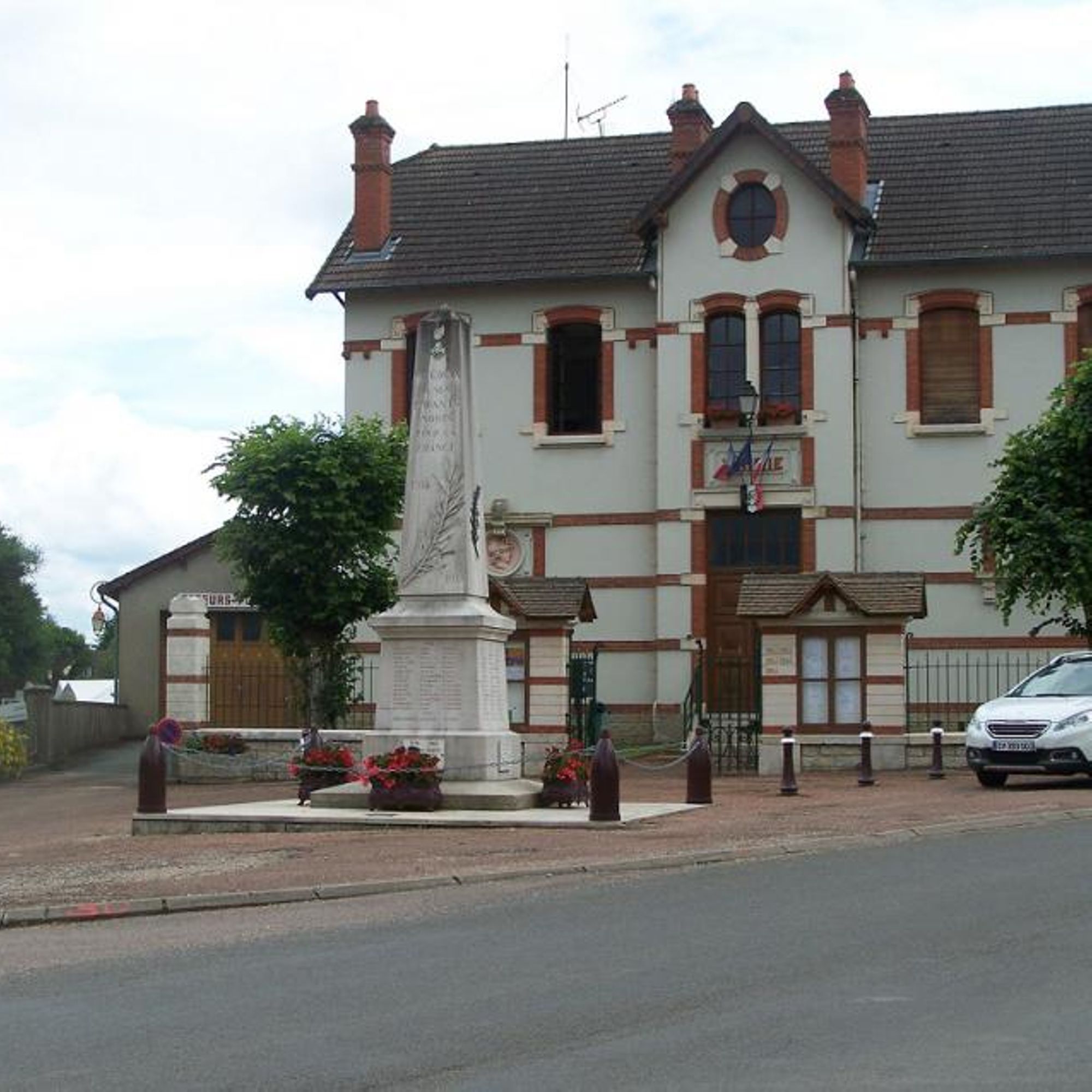 Monument de type obélisque avec croix de guerre et palme scultées sur la face avant.