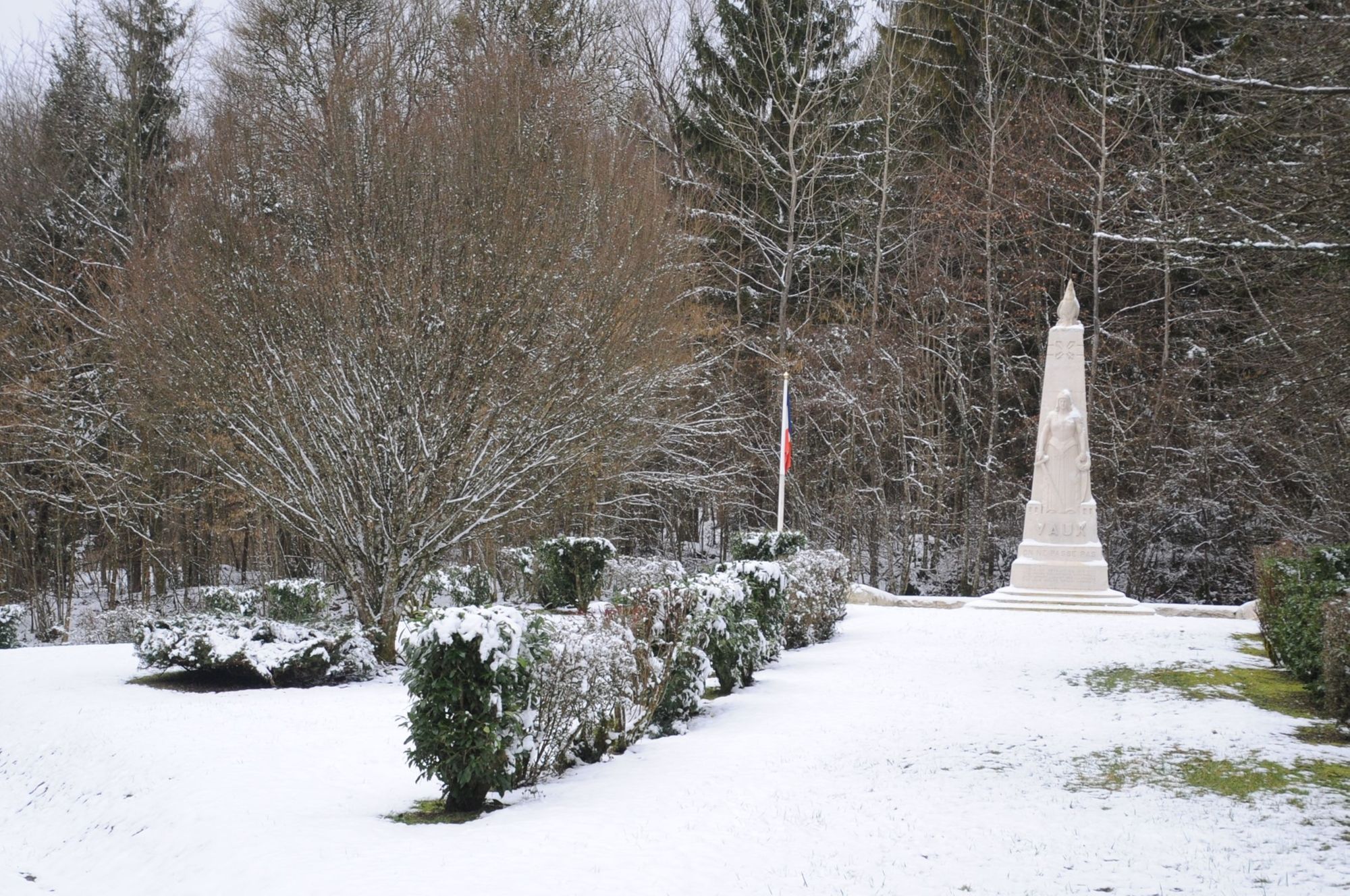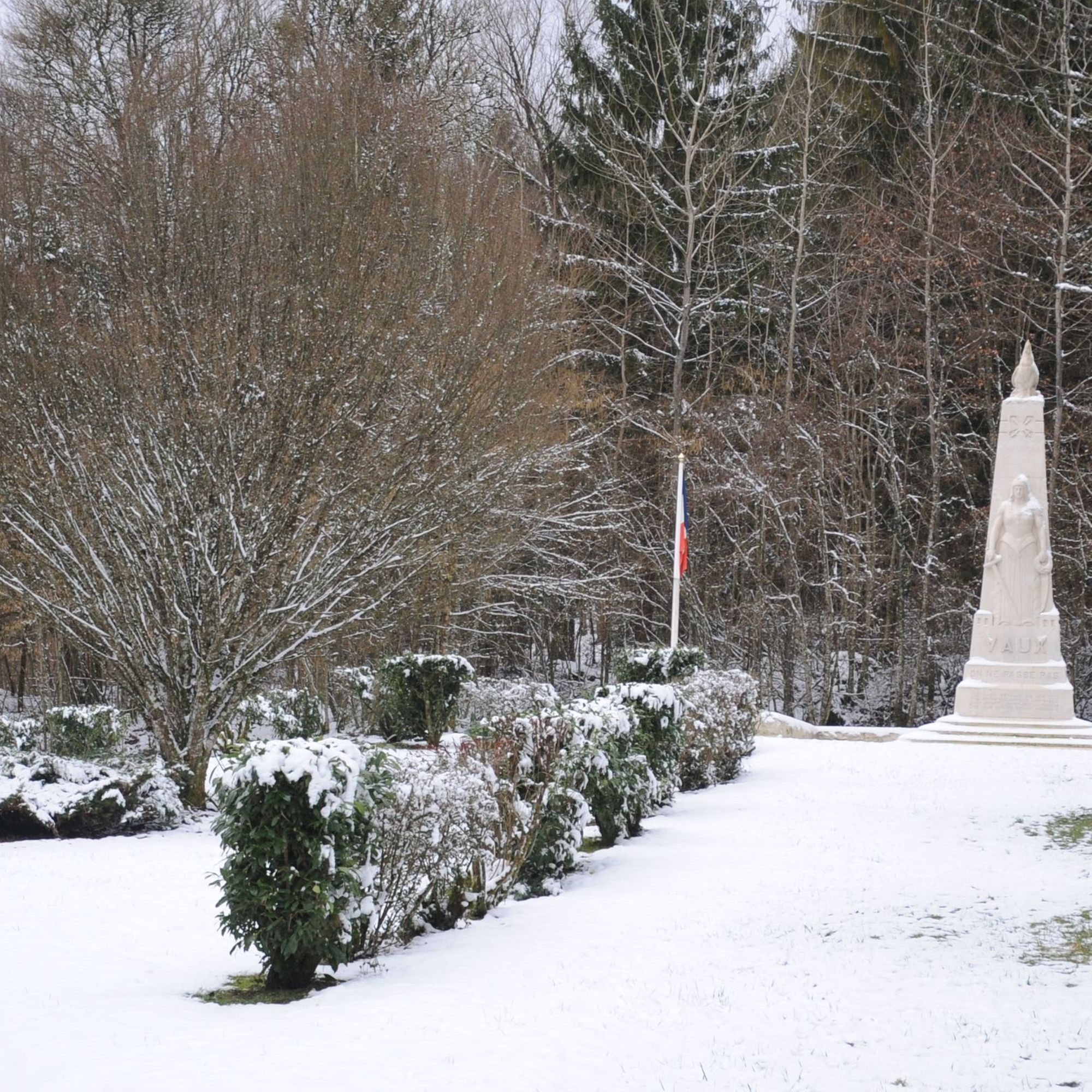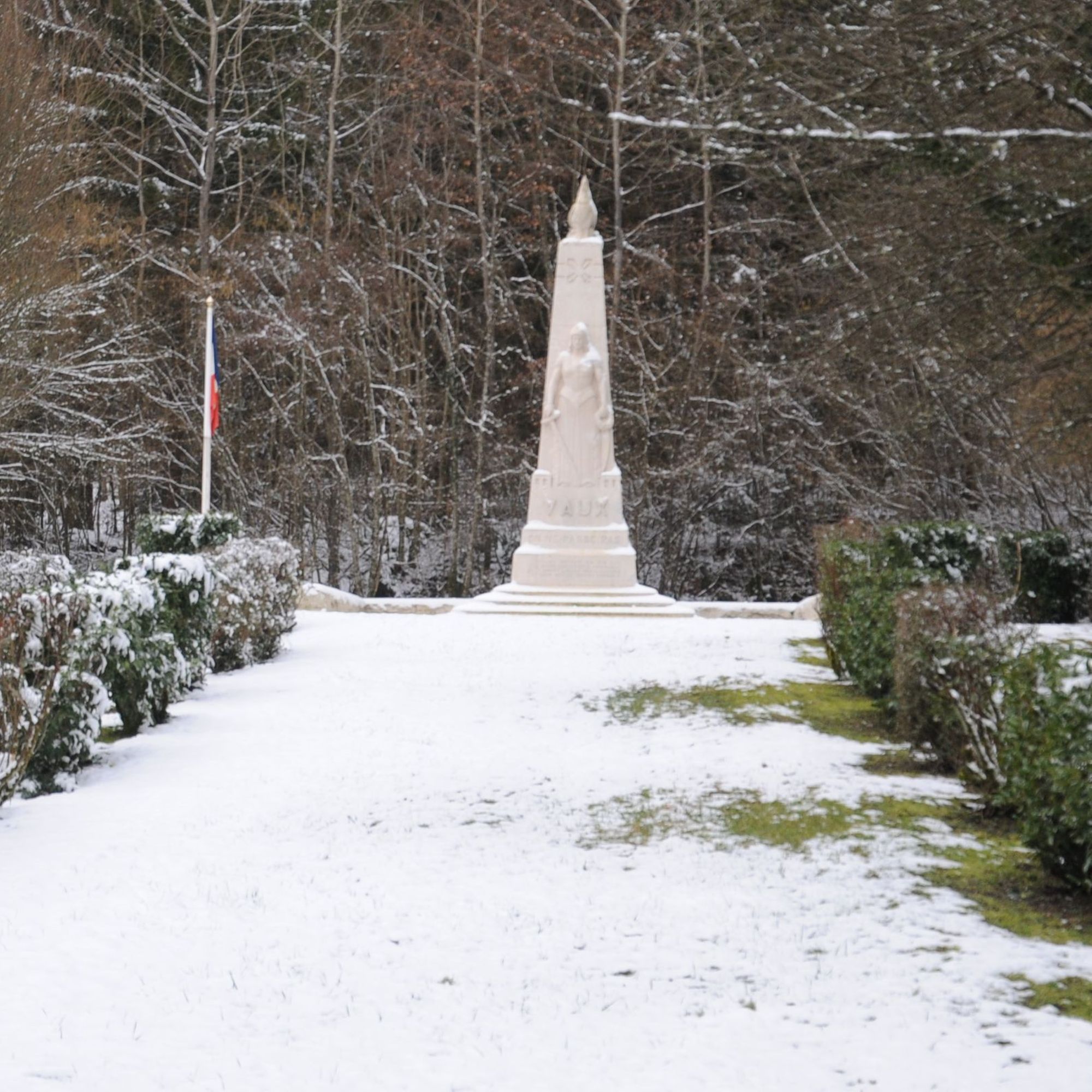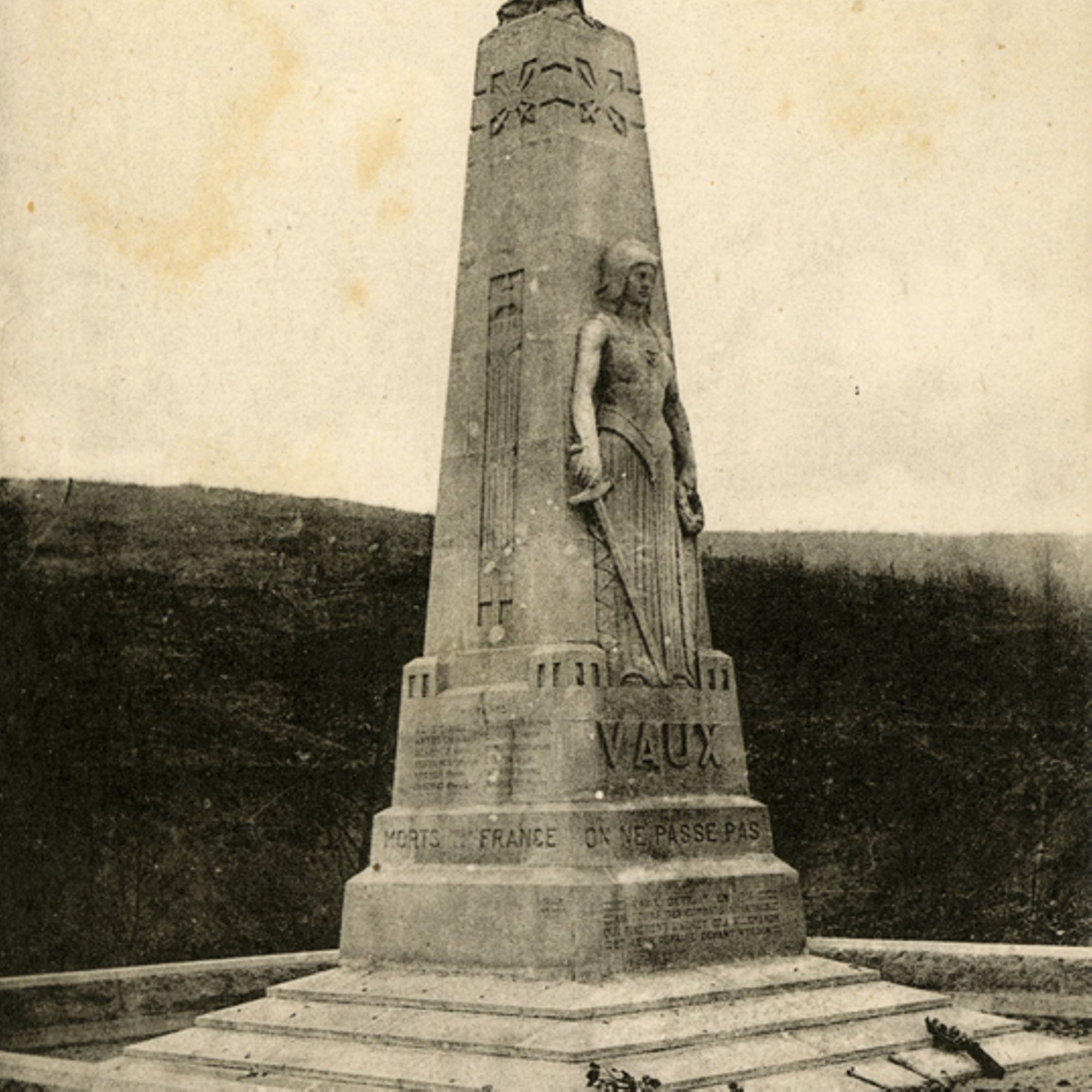 - Le monument commémore la mémoire des morts et la destruction du village de Vaux en 1916. Il est situé à l'emplacement de celui-ci, à proximité du nouveau Vaux-devant-Damloup, construit à la fin de la Première Guerre mondiale.