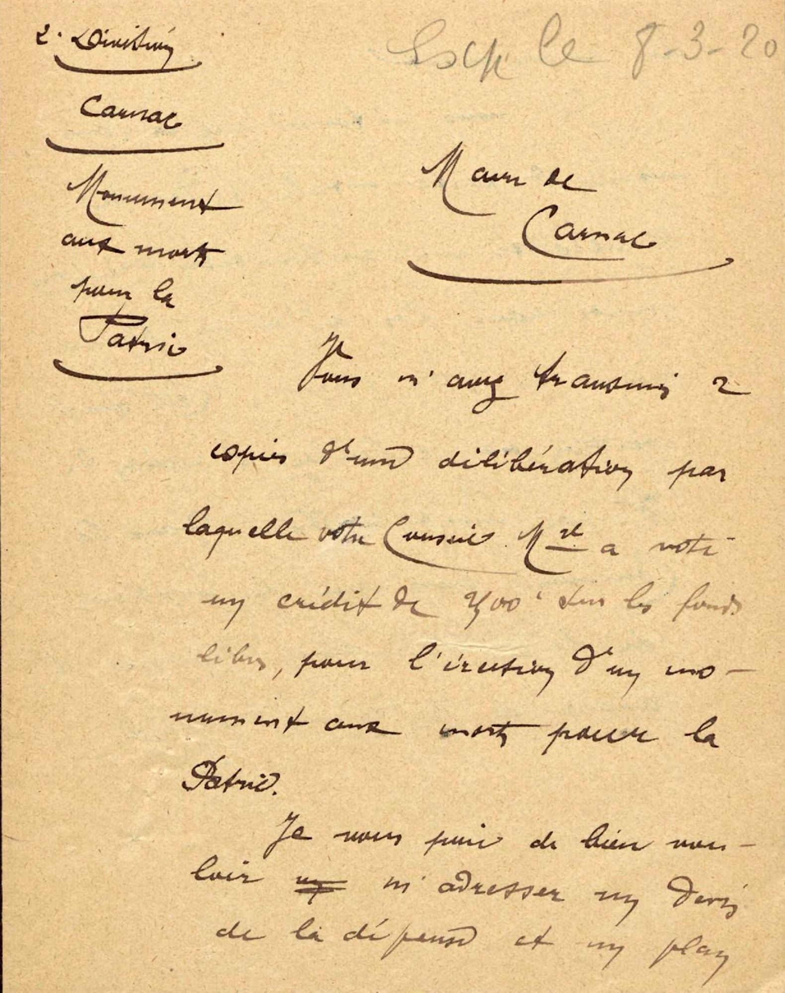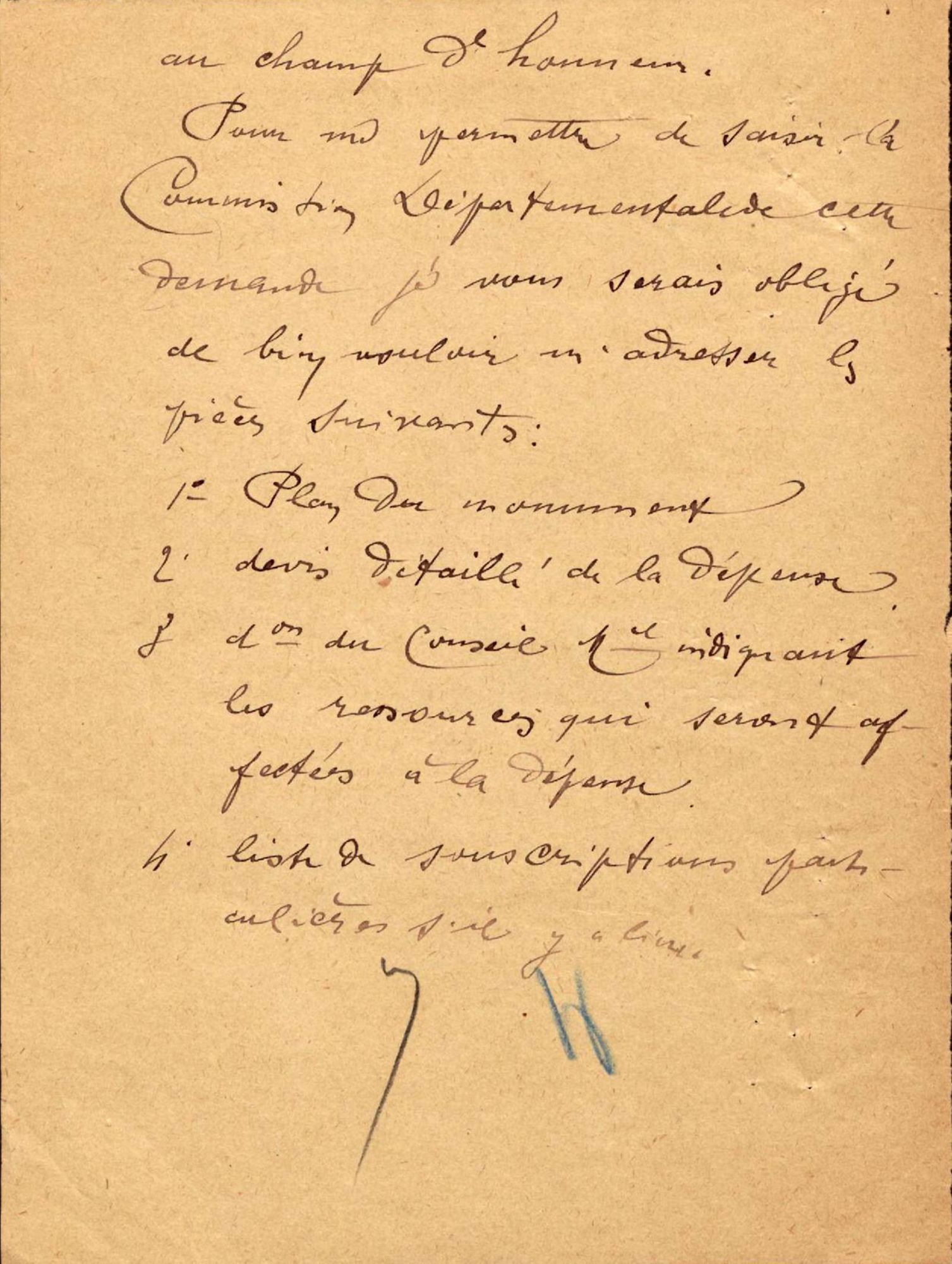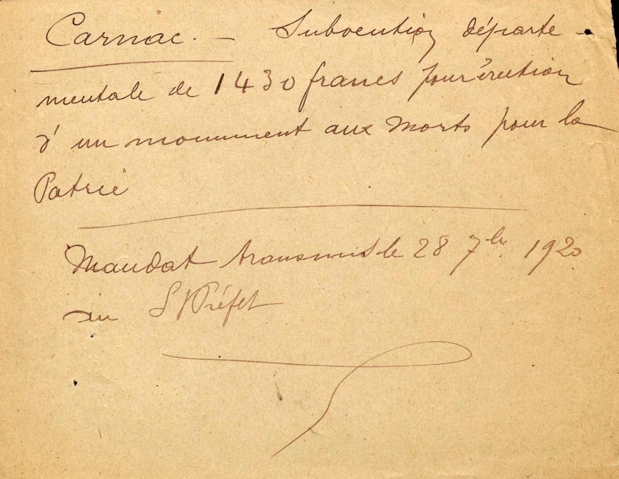 Le conseil municipal a voté un crédit de 2500 frs pour le monument