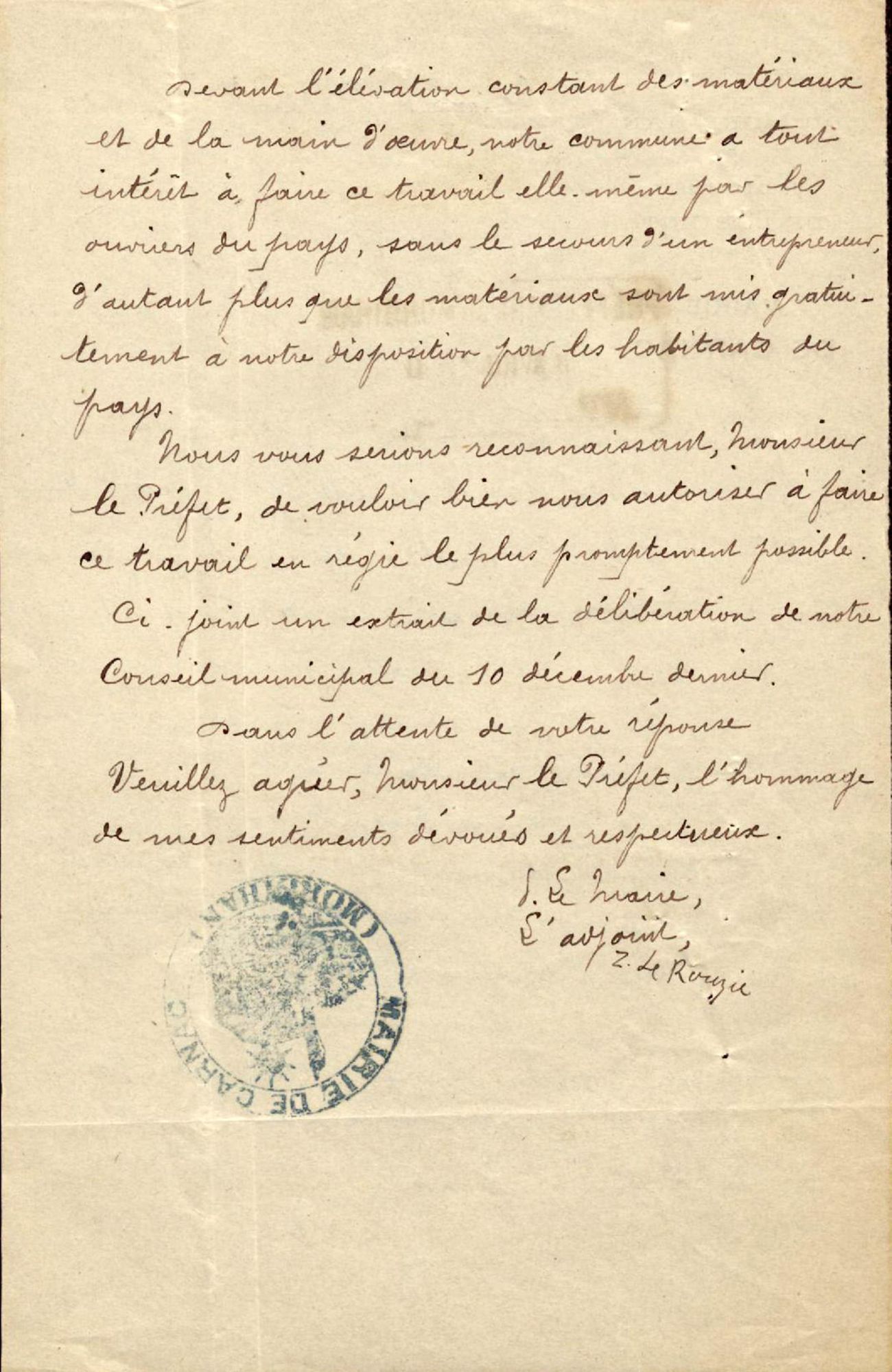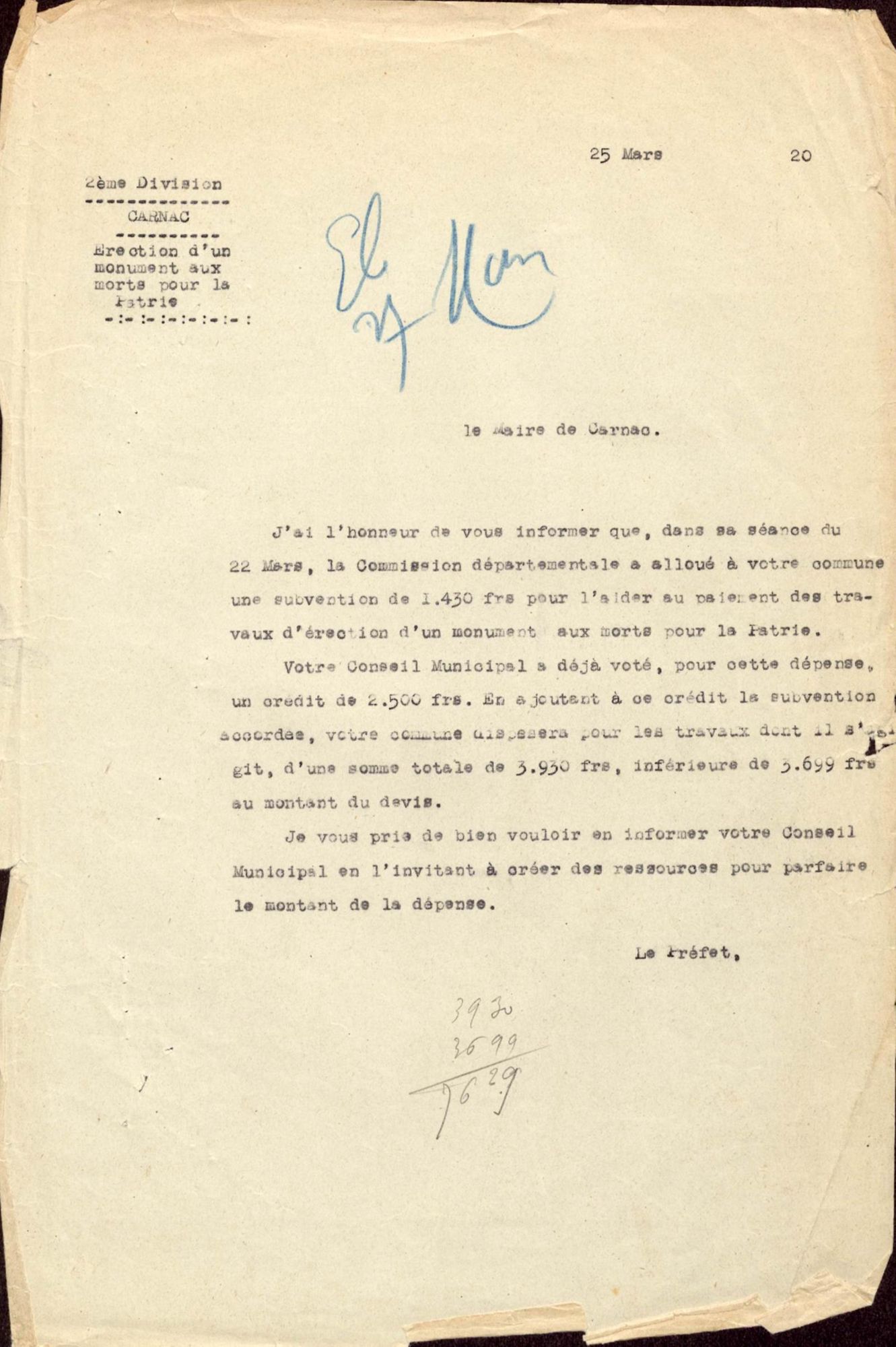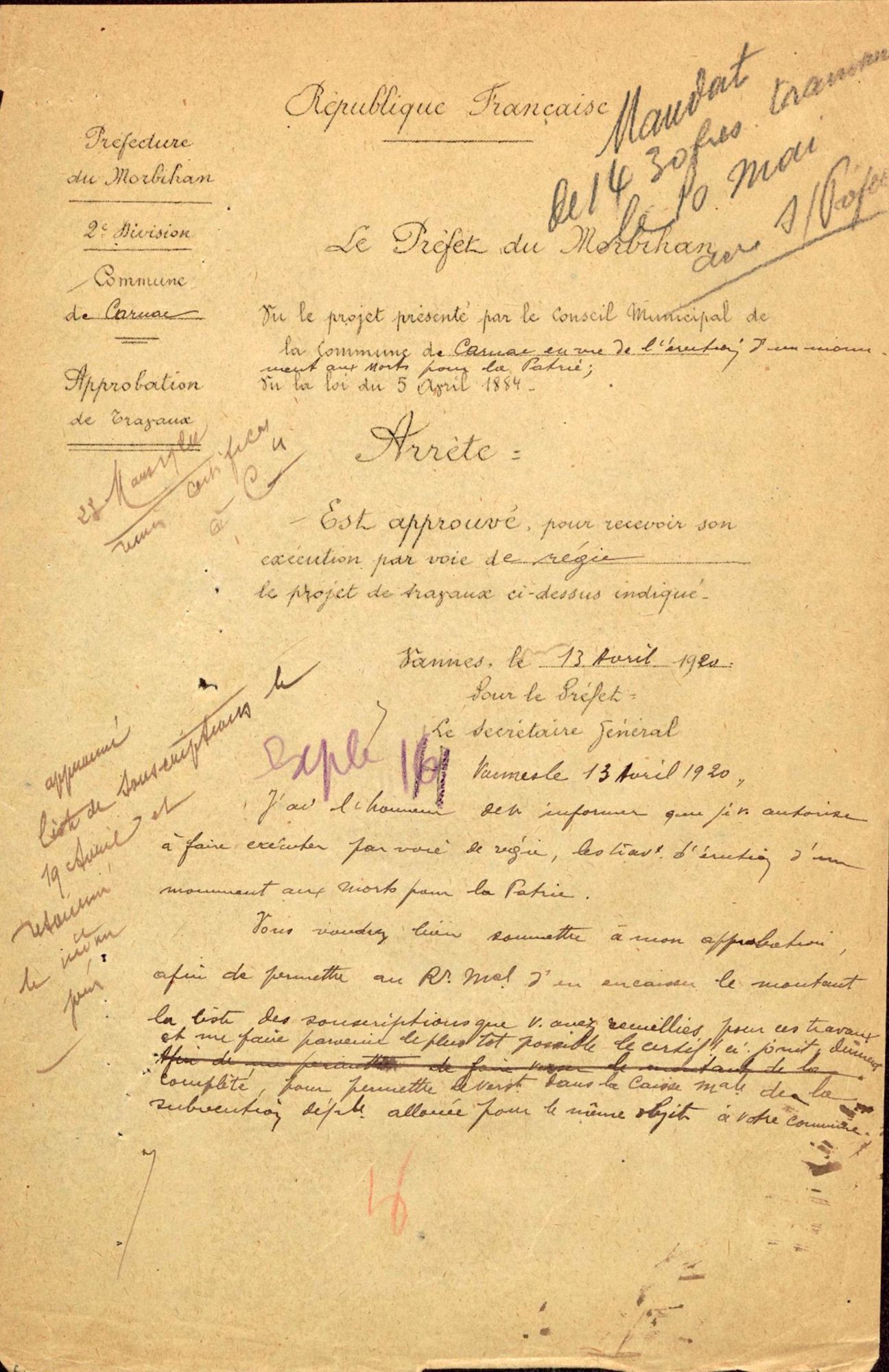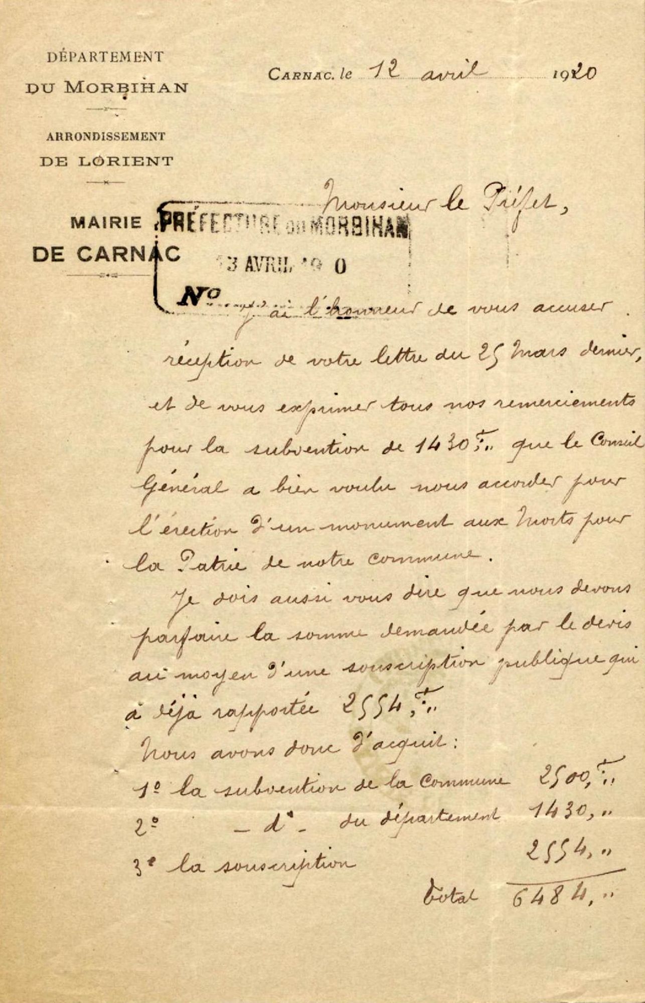 Le conseil municipal a voté un crédit de 2500 frs pour le monument