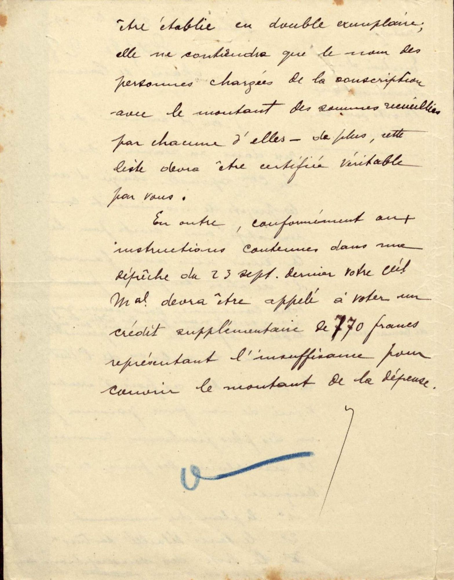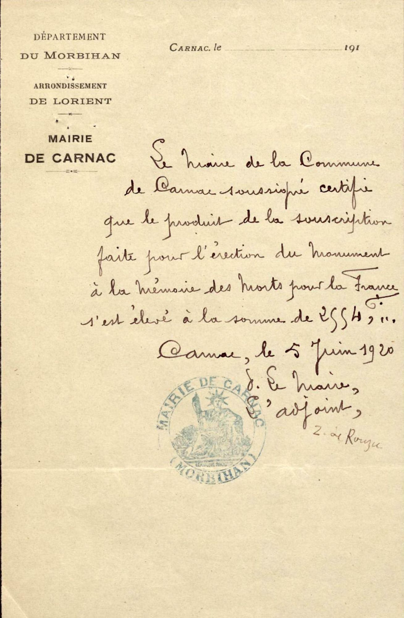 Maire certifie que le produit de la souscription s'est élevé à la somme de 2554 frs
