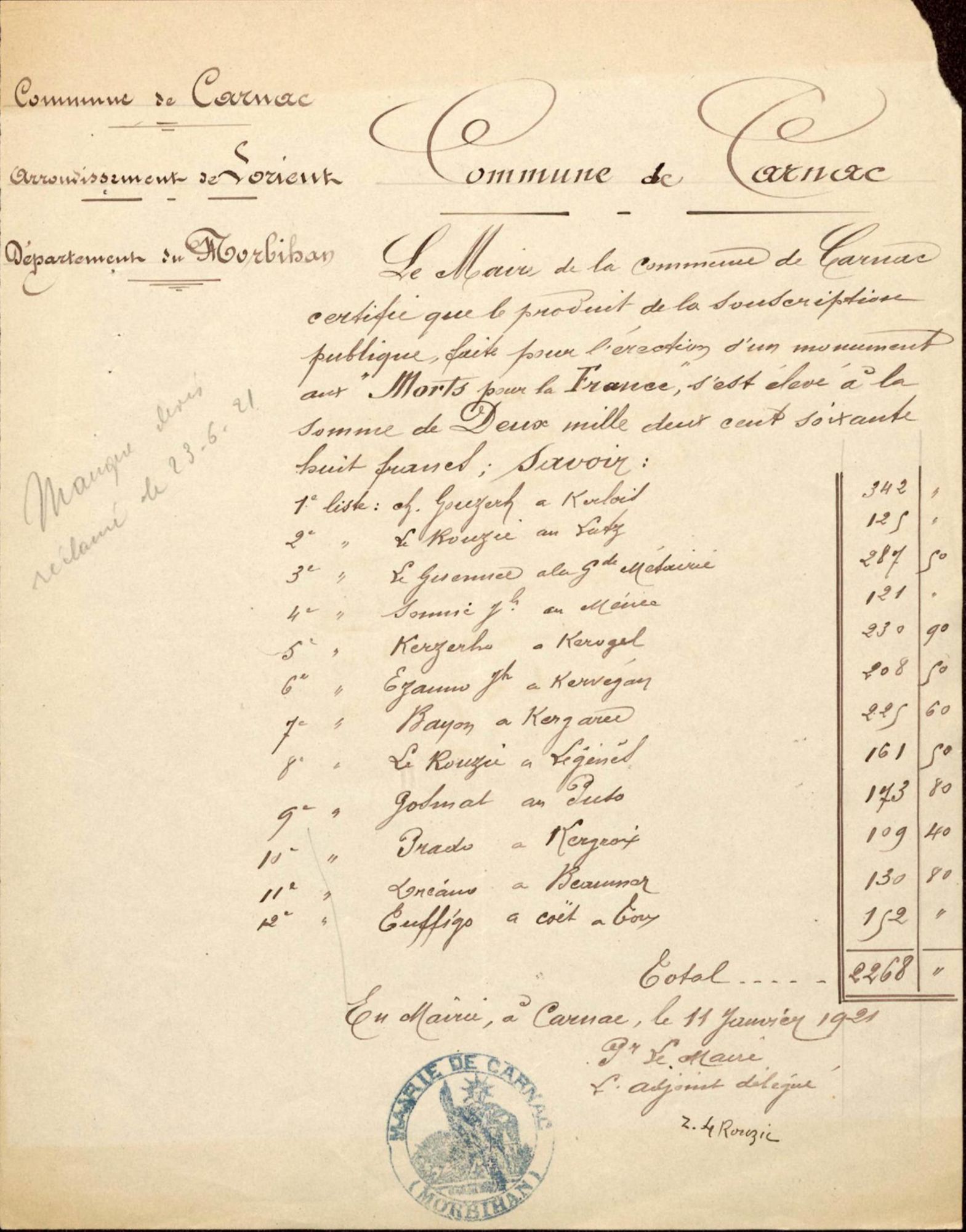 Le Conseil municipal de Carnac a voté le principe d'un monument
