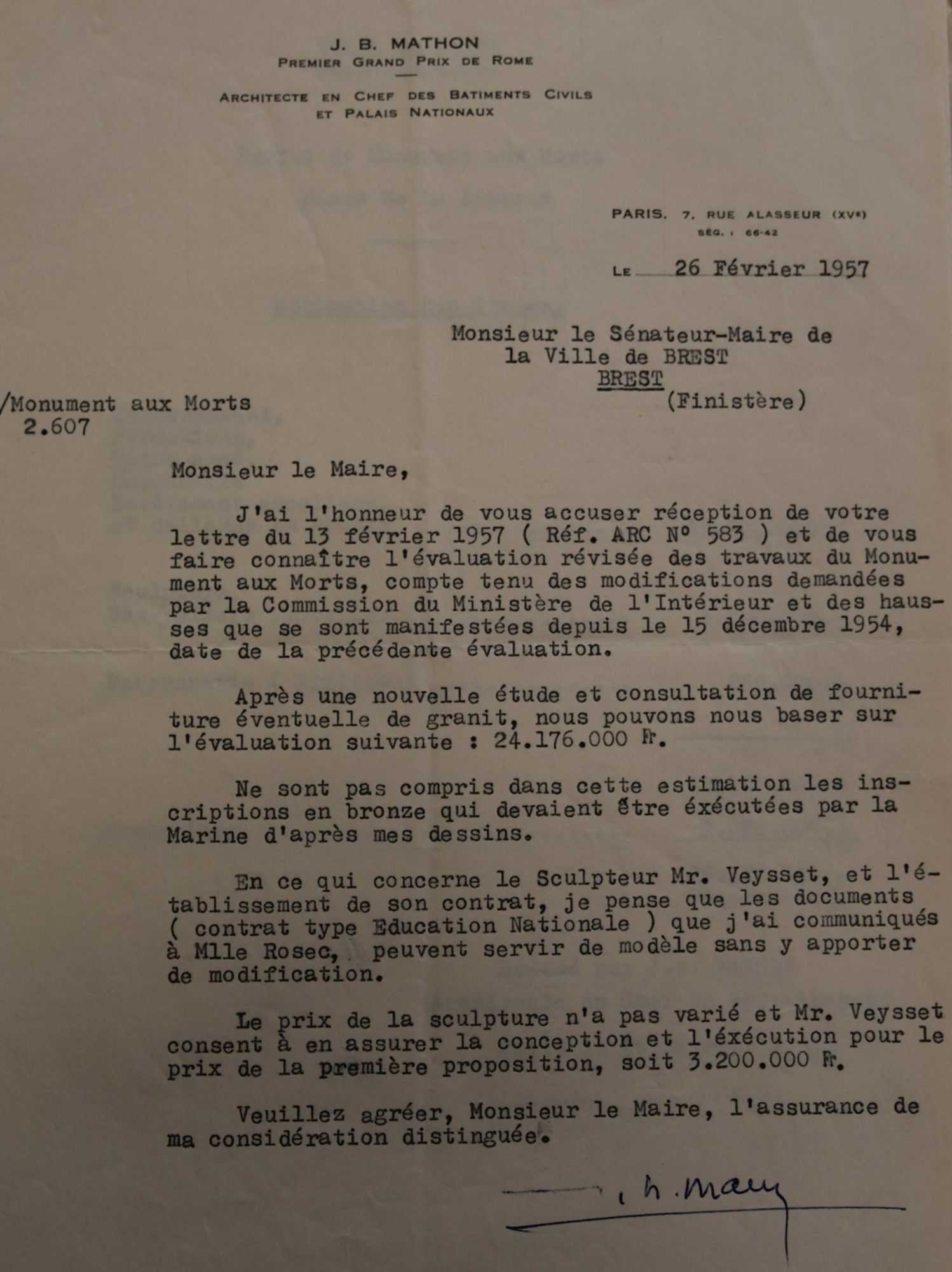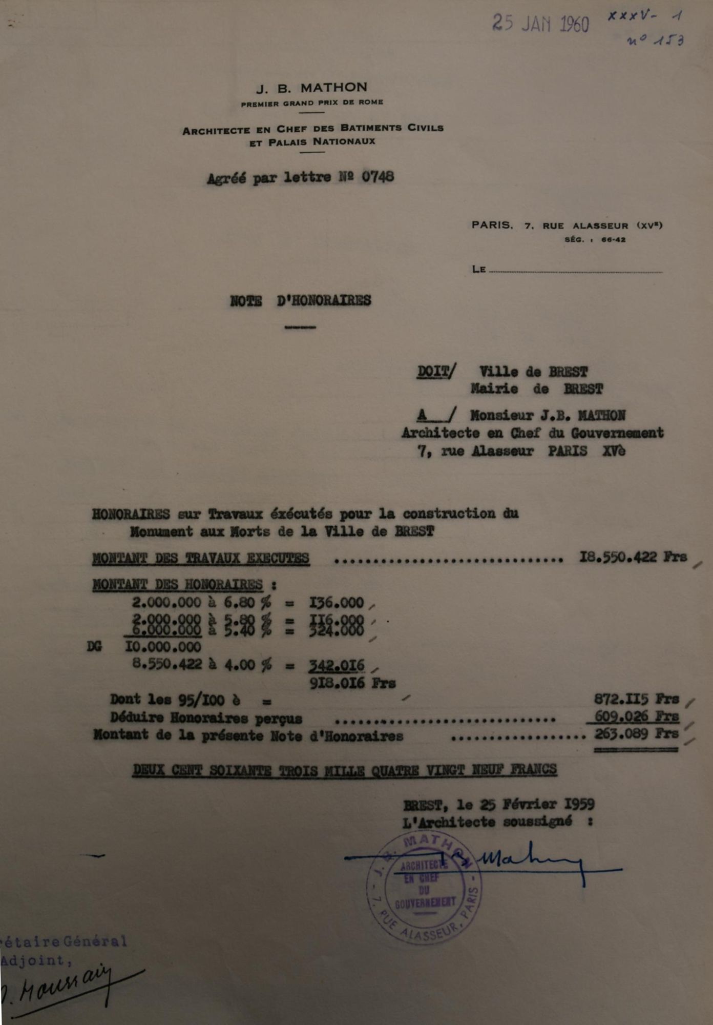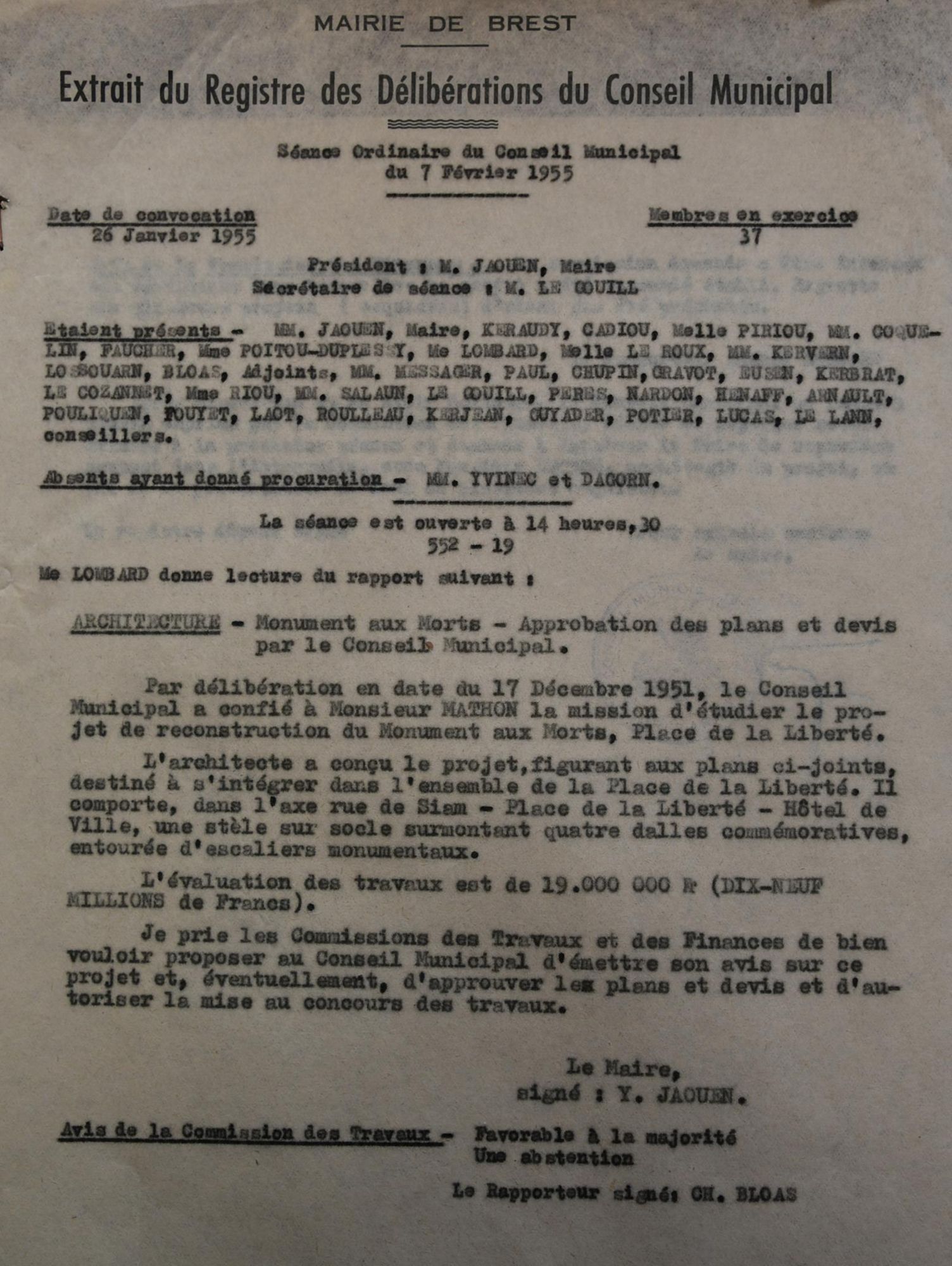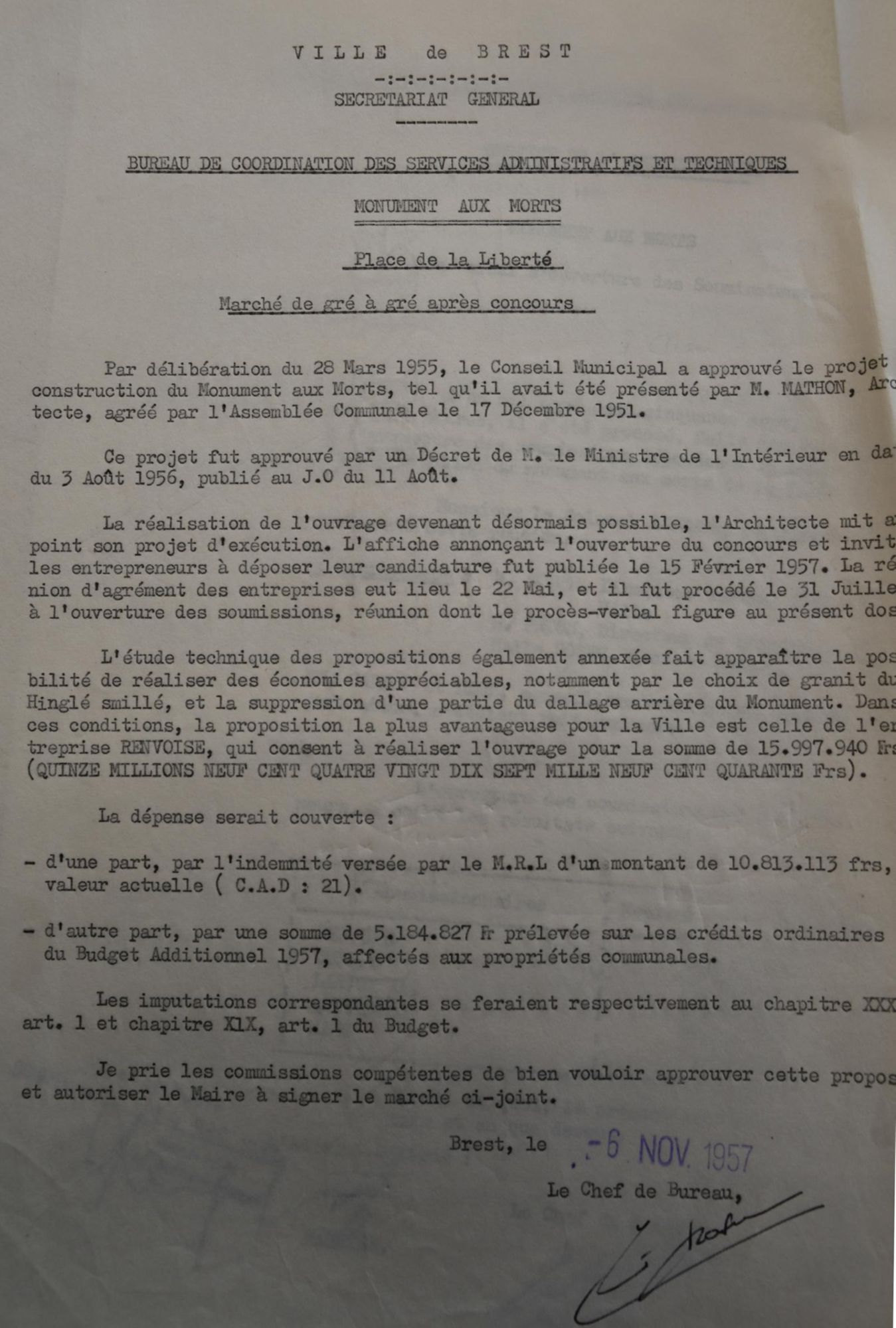 Nomination de M. Mathon, architecte de la ville, pour élaborer le projet de nouveau monument