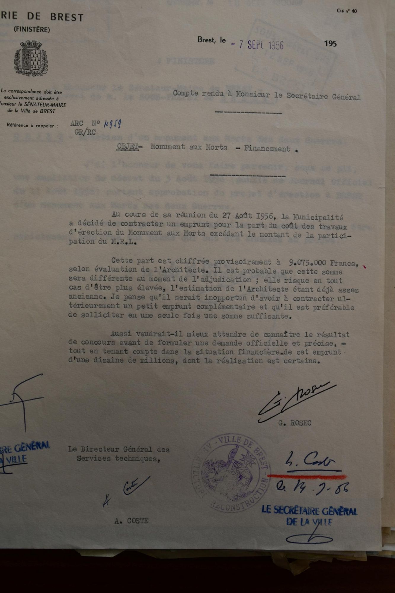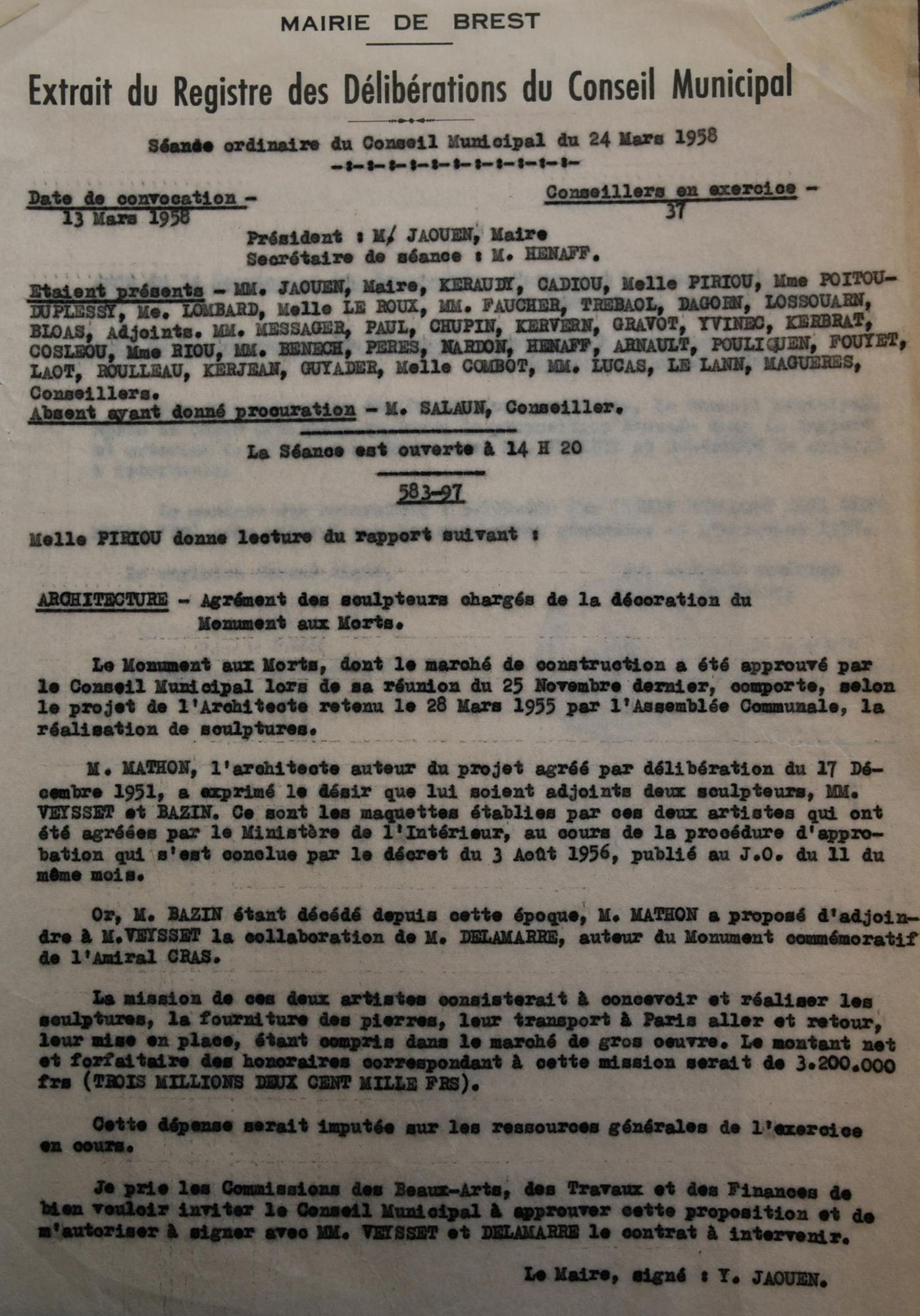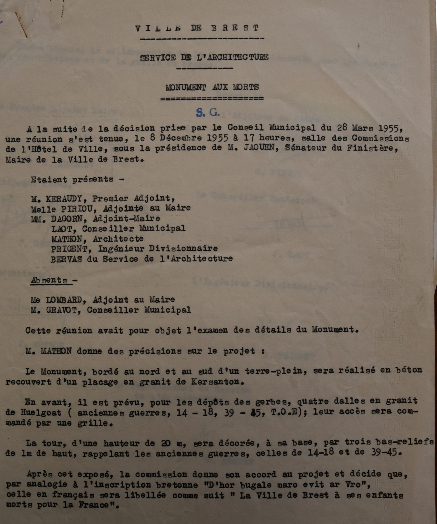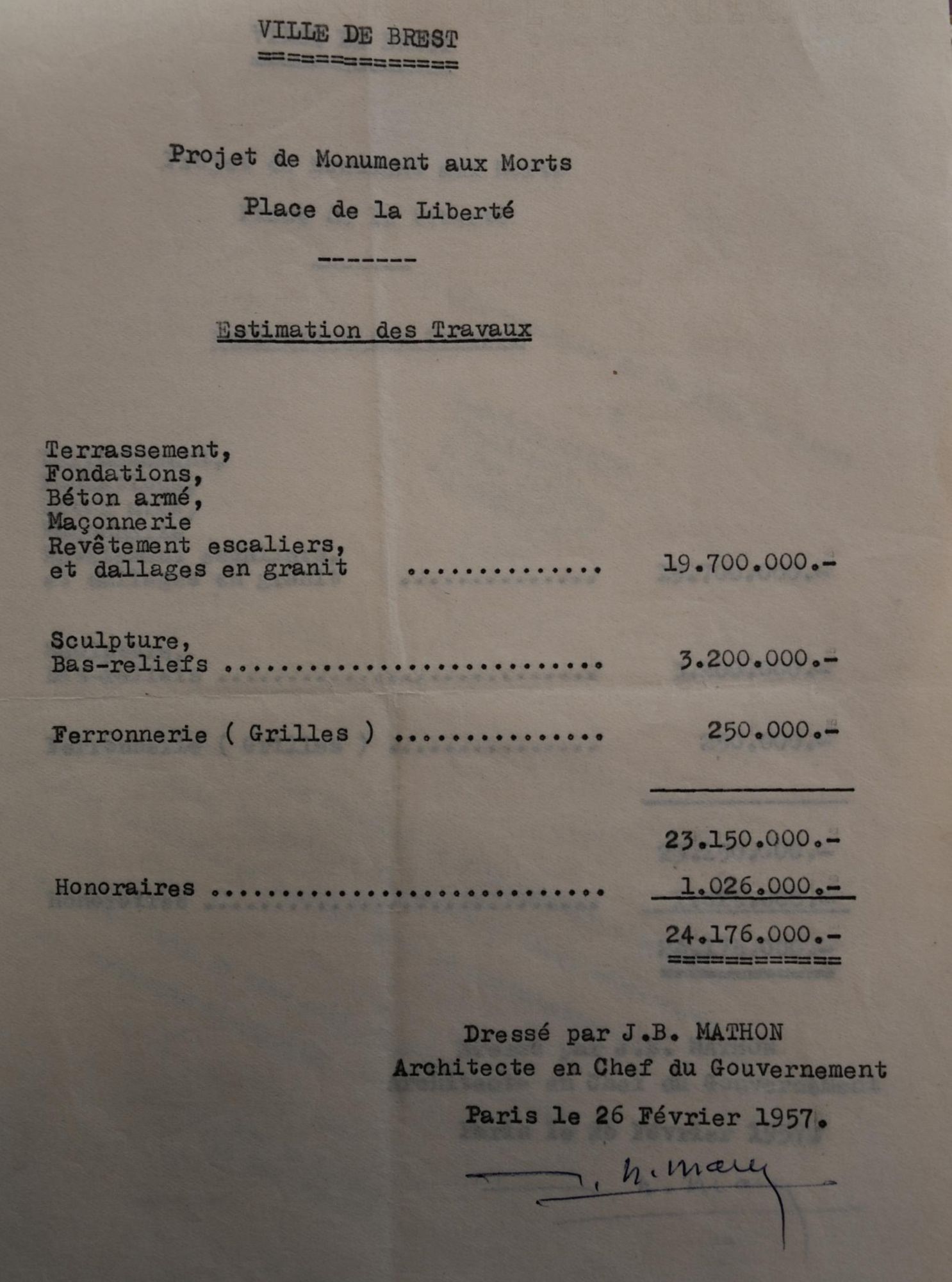 Nomination de M. Mathon, architecte de la ville, pour élaborer le projet de nouveau monument