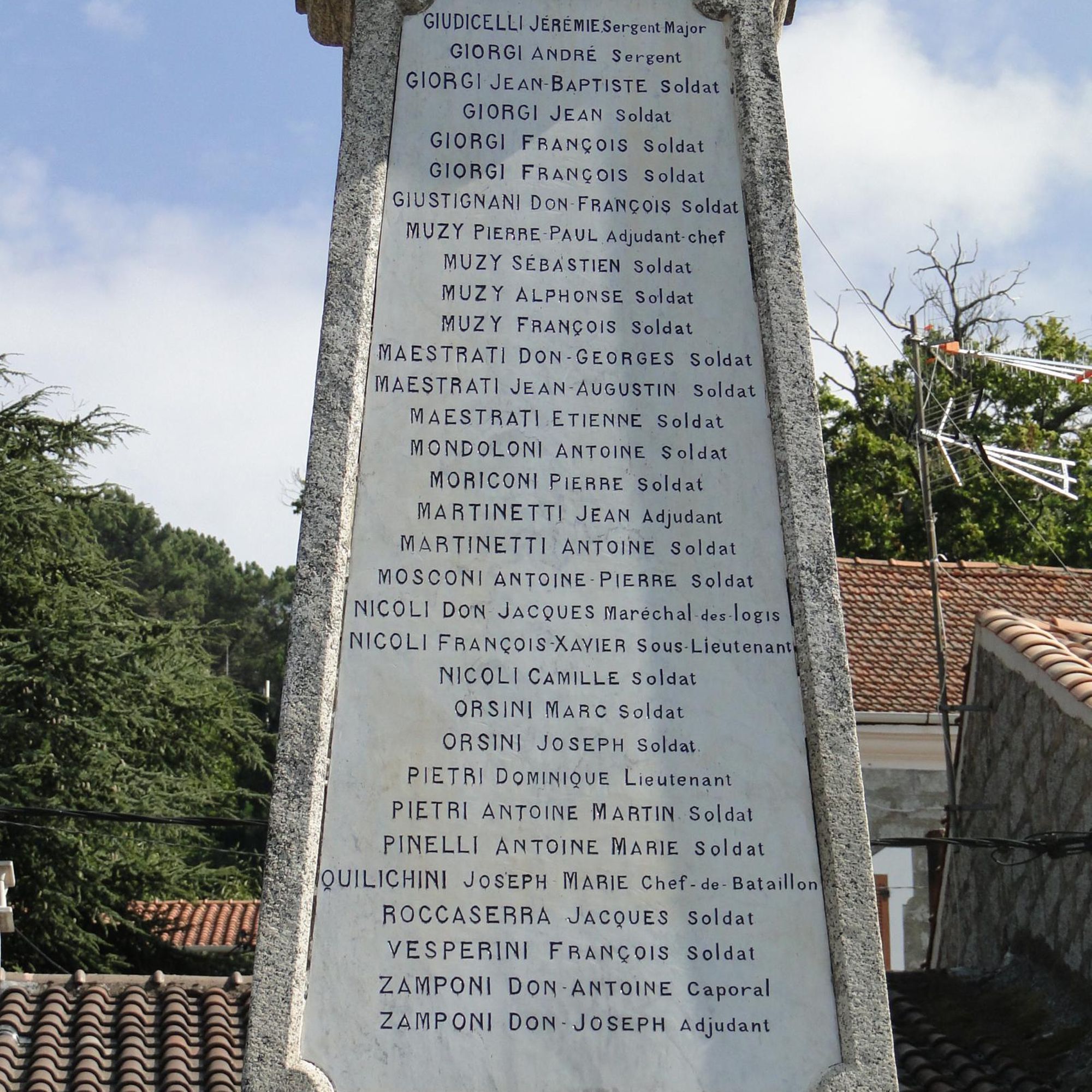 - PELLEGRINETTI Jean-Paul, RAVIS-GIORDANI Georges, Du deuil à la mémoire. Les monuments aux morts de la Corse (Guerre 1914-1918), Ajaccio, Albiana, 2011, 134 p. + 1 CD