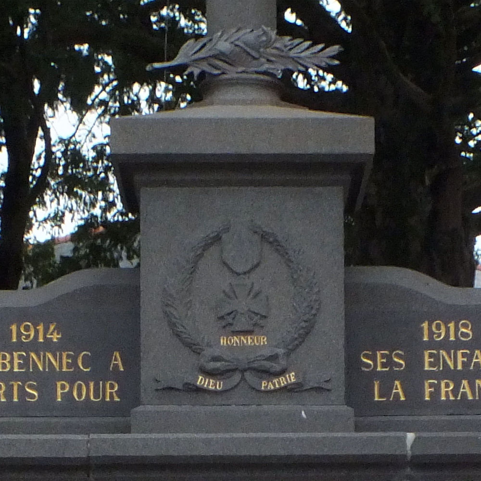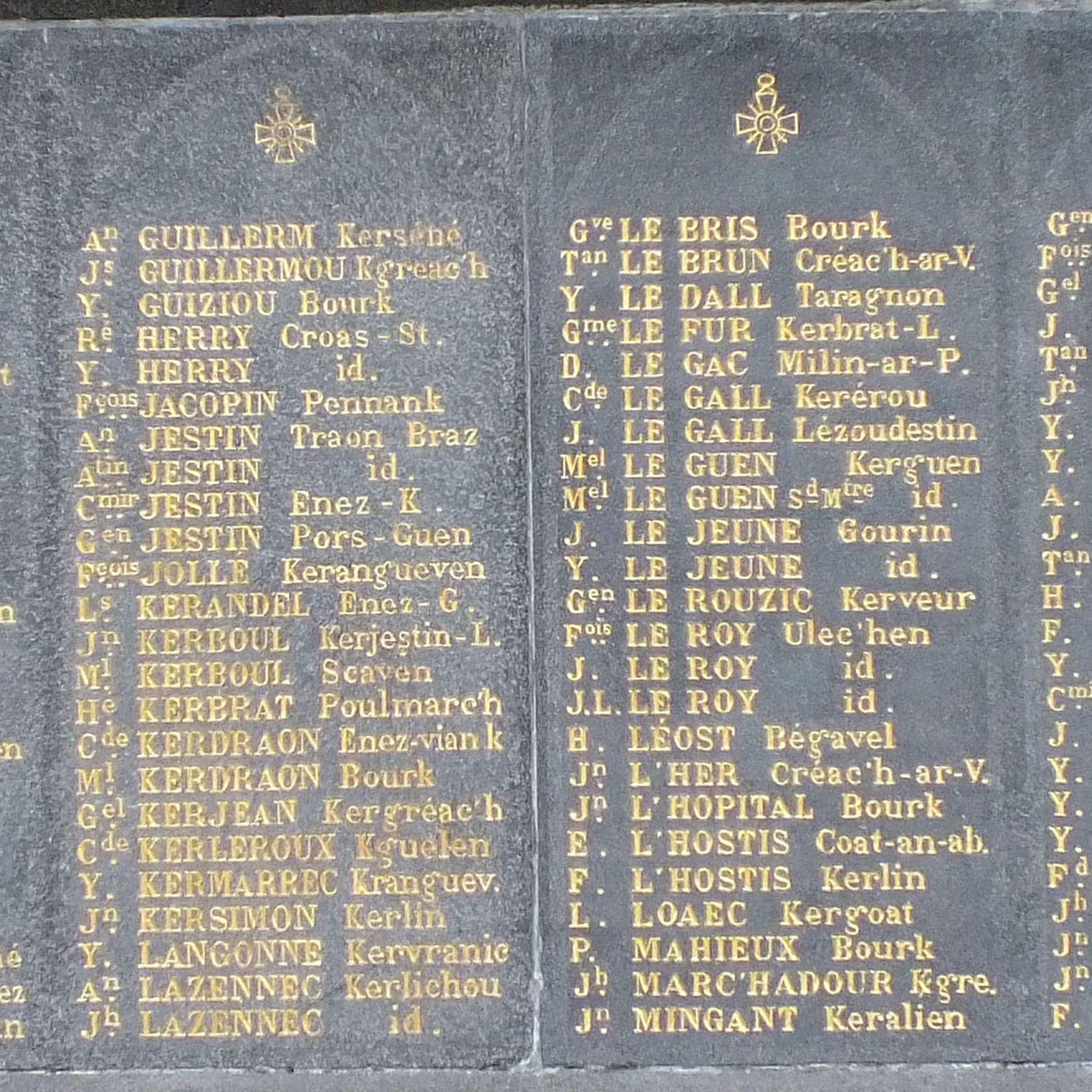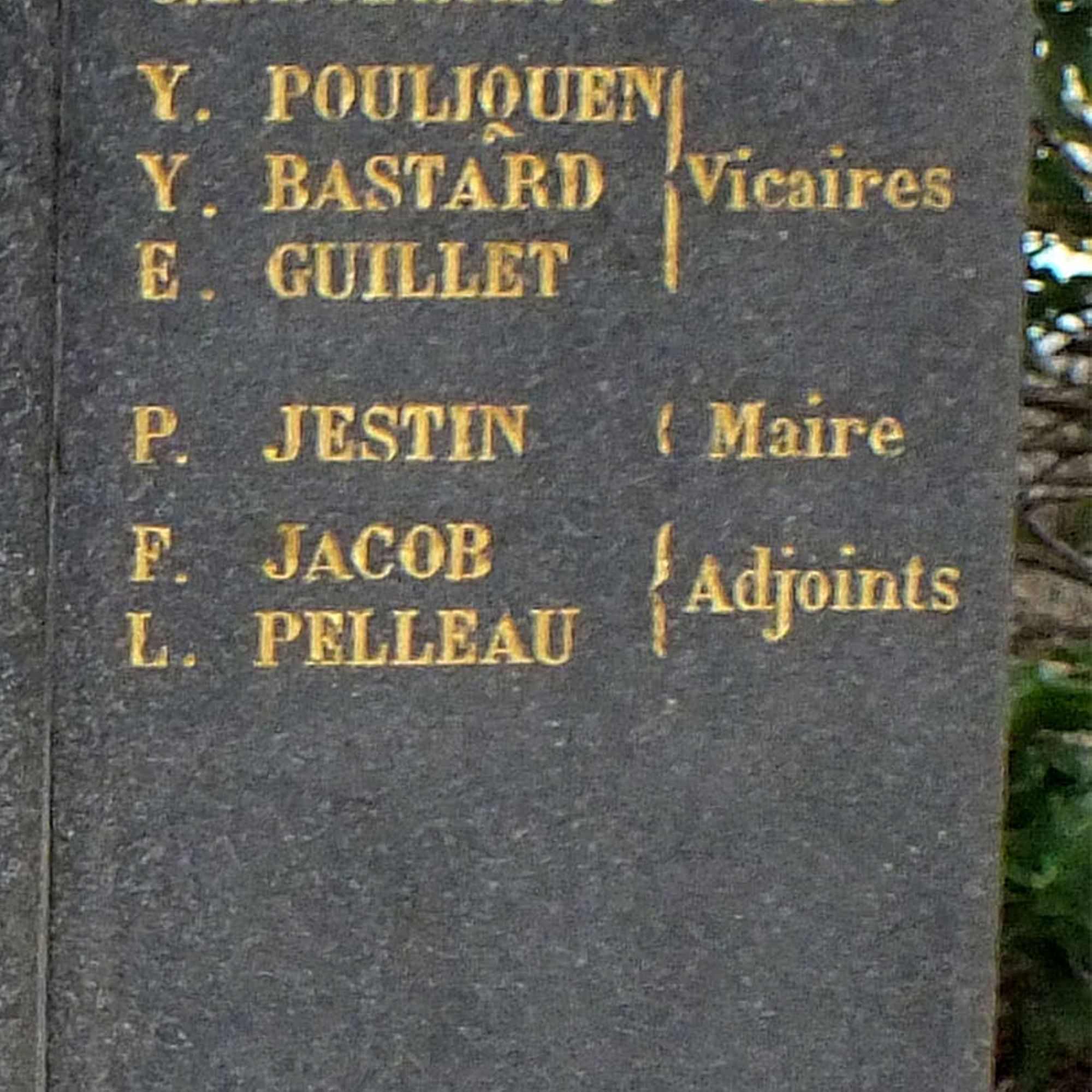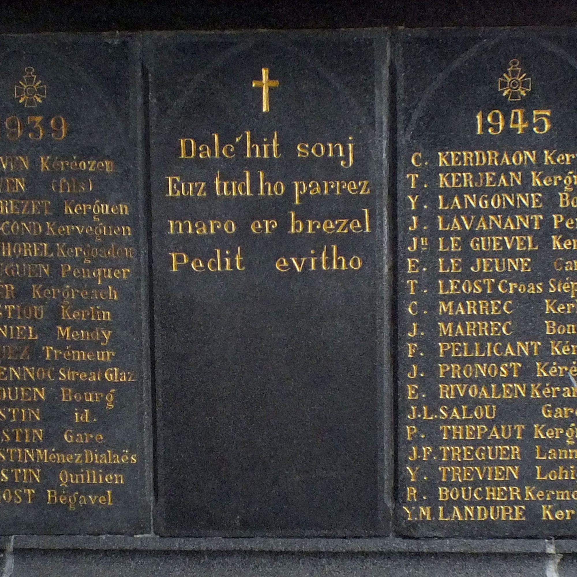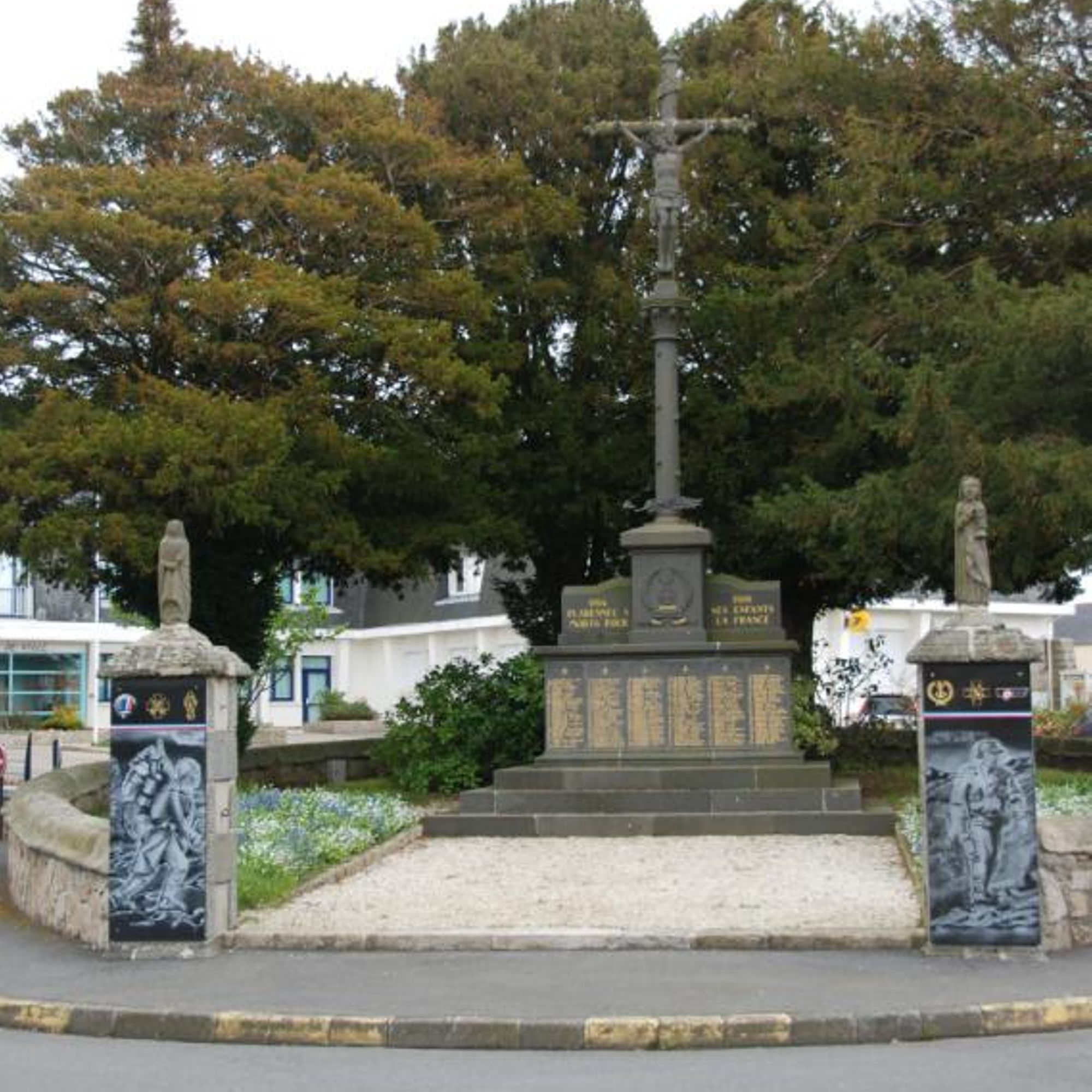 Calvaire en kersantite avec 2 statuettes à l'entrée