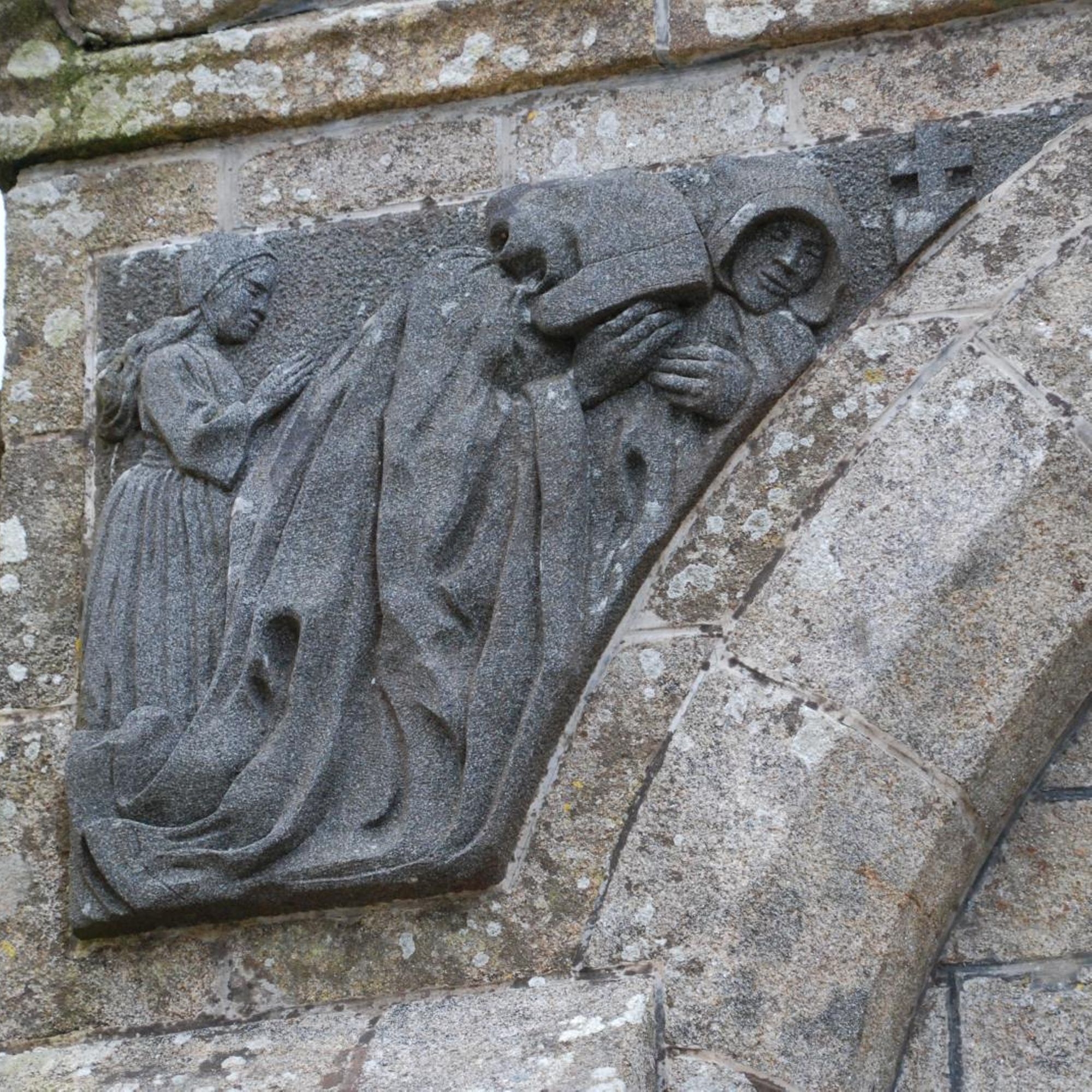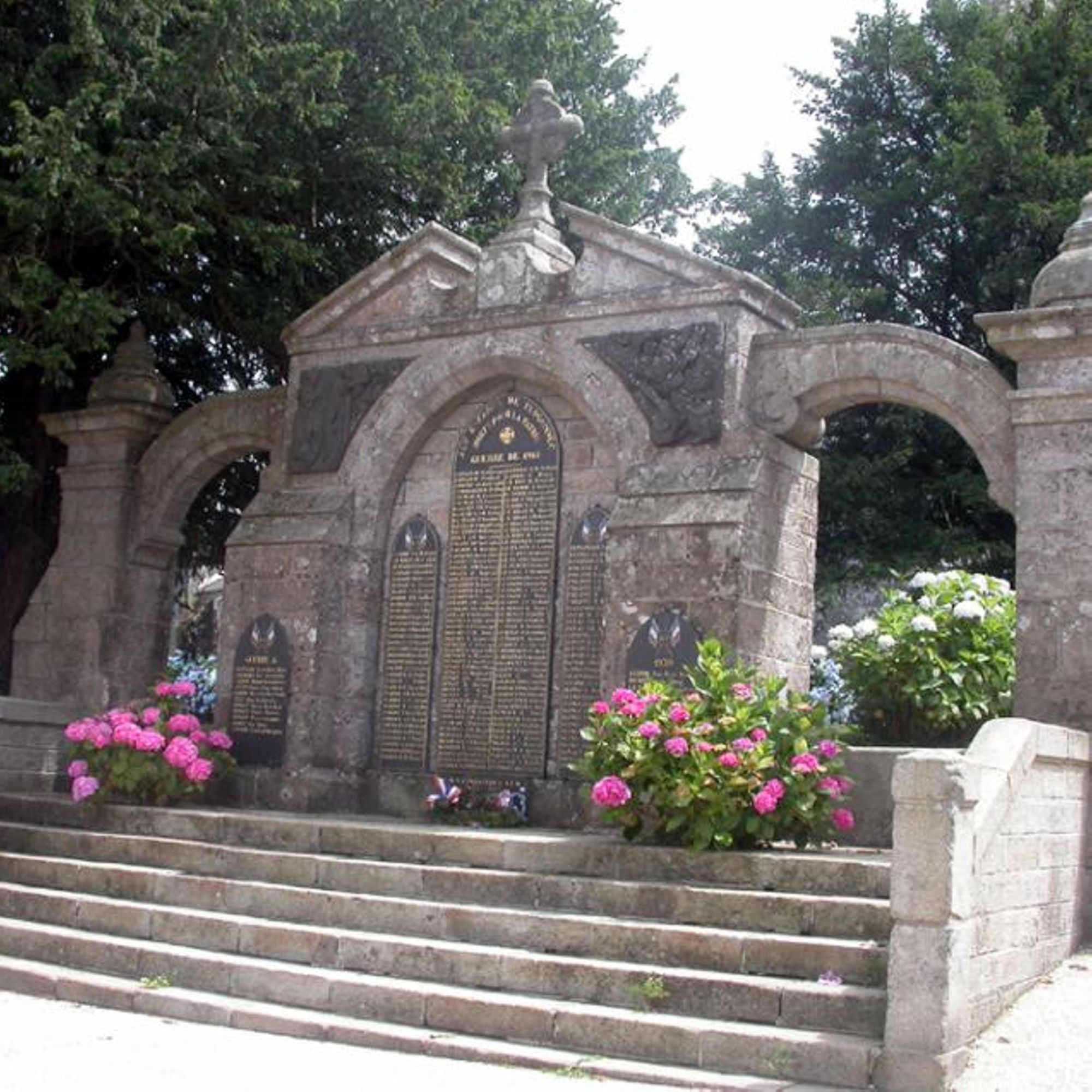 - Mausolé avec croix celtique au sommet et bas-reliefs