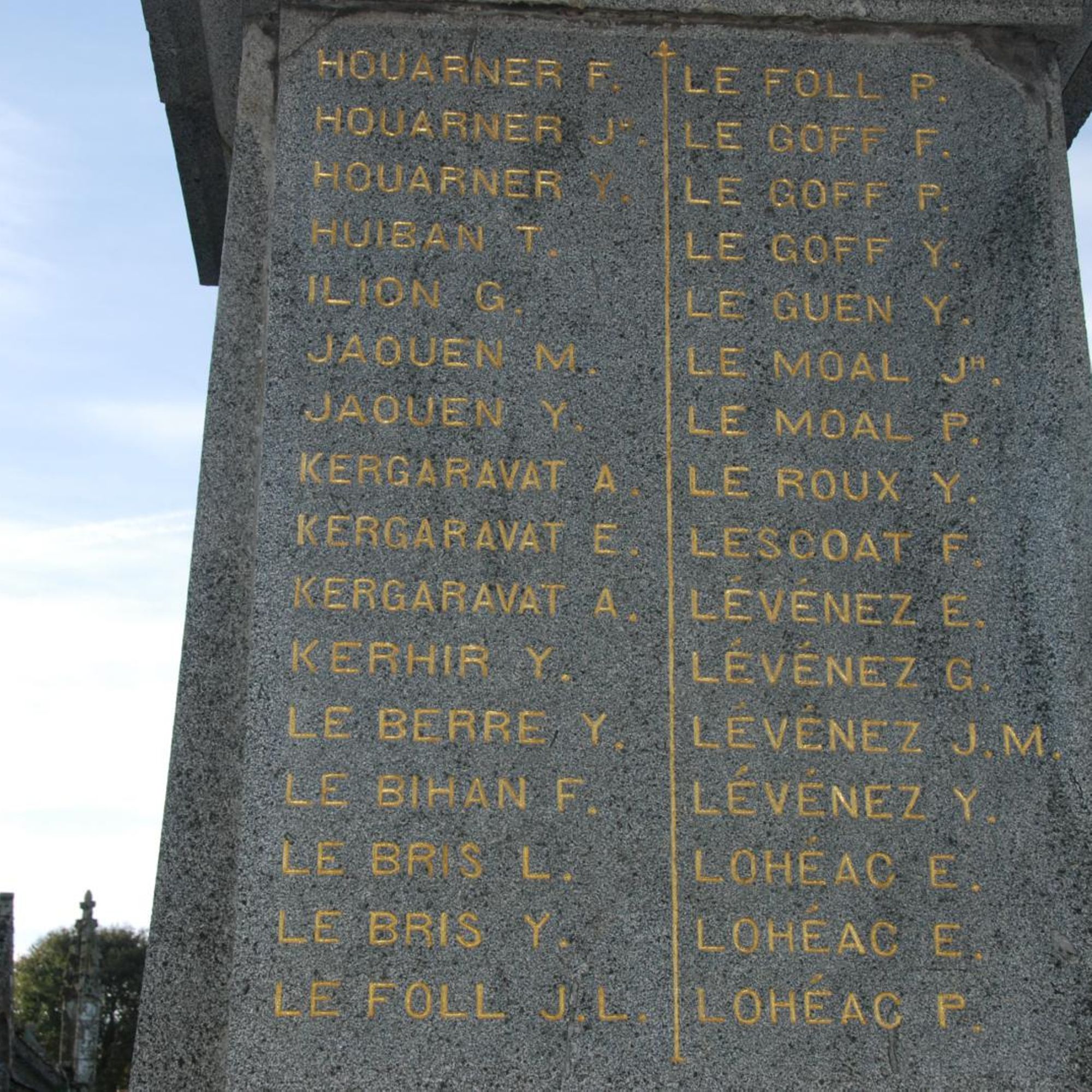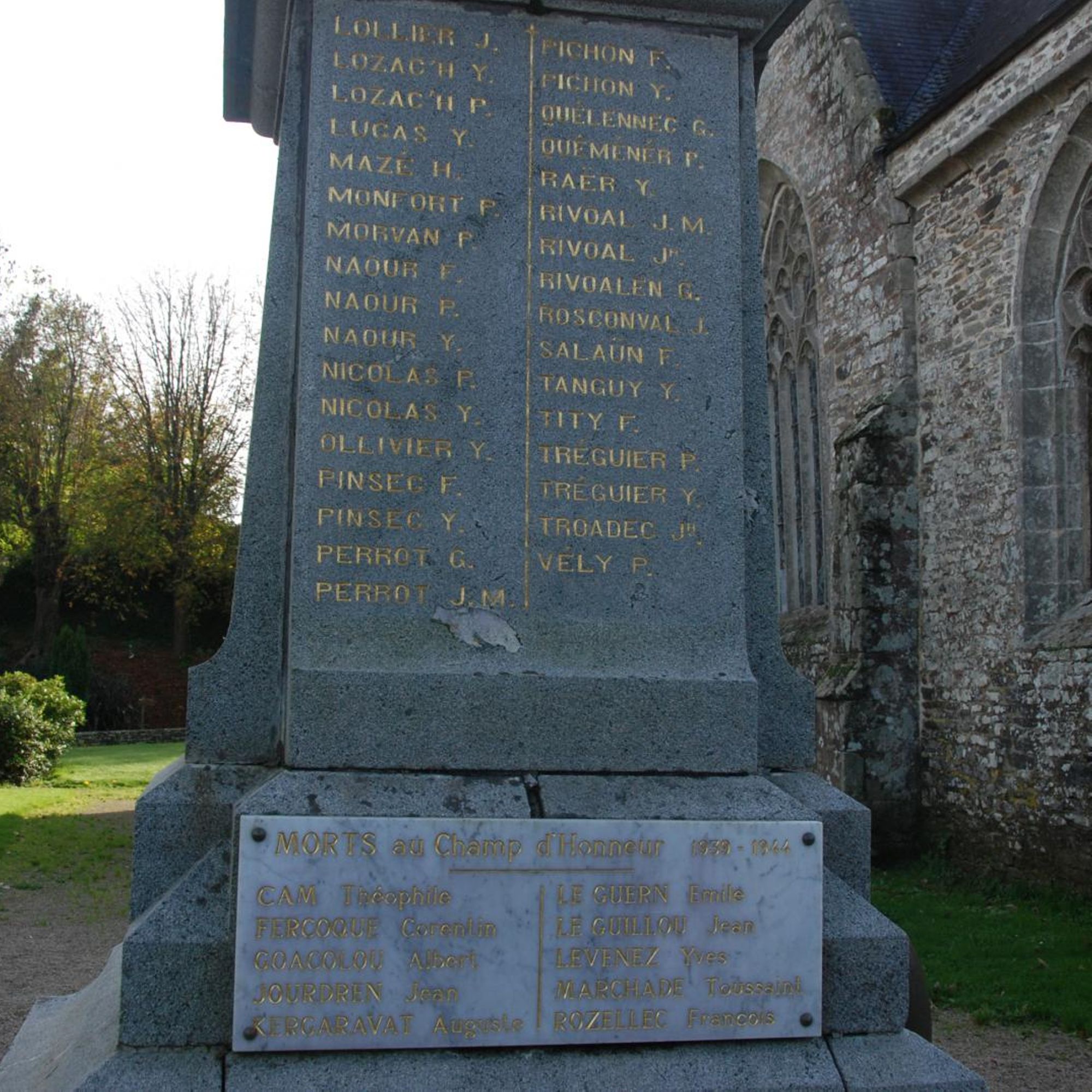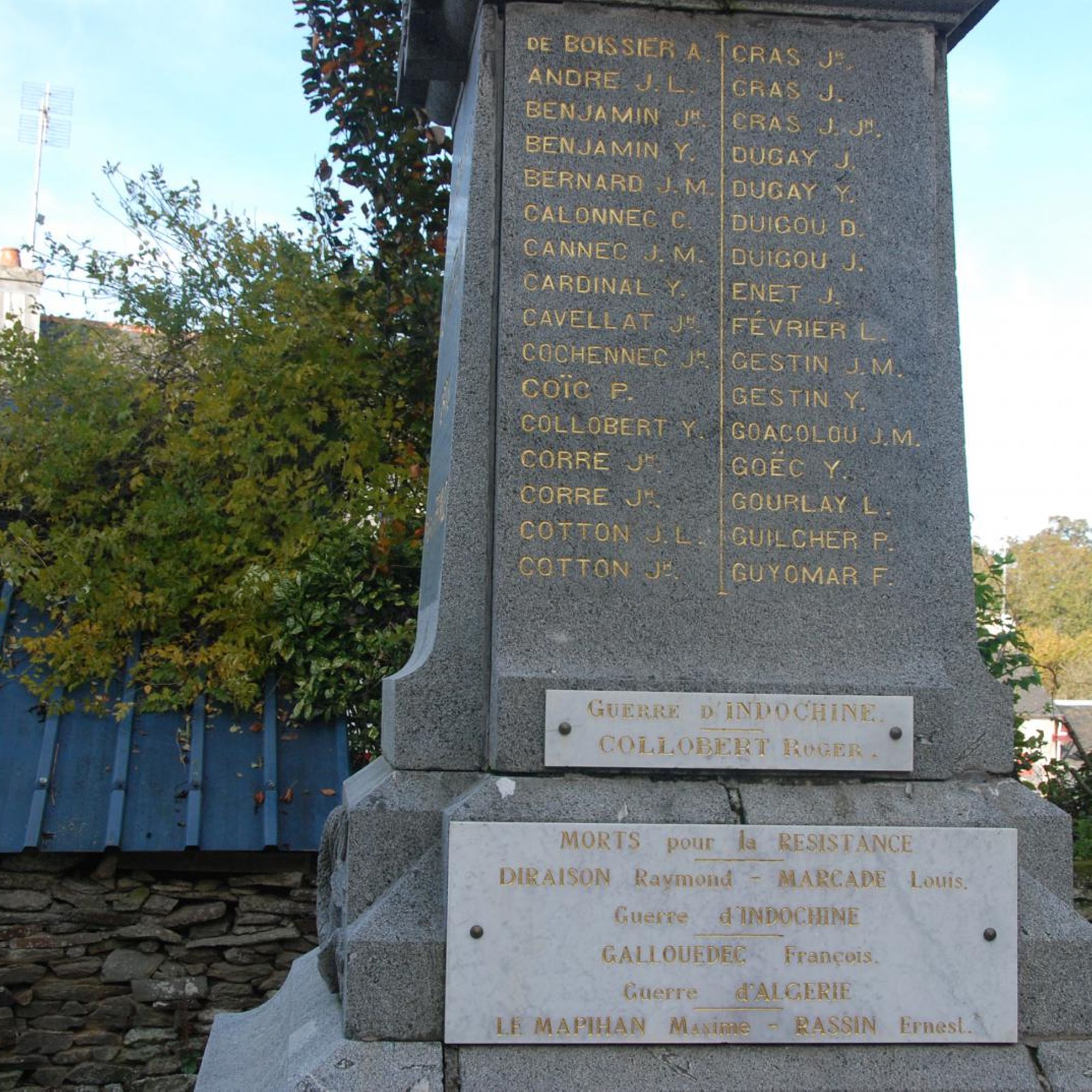 Soldat tenant un drapeau devant une croix latine sur un piédestal