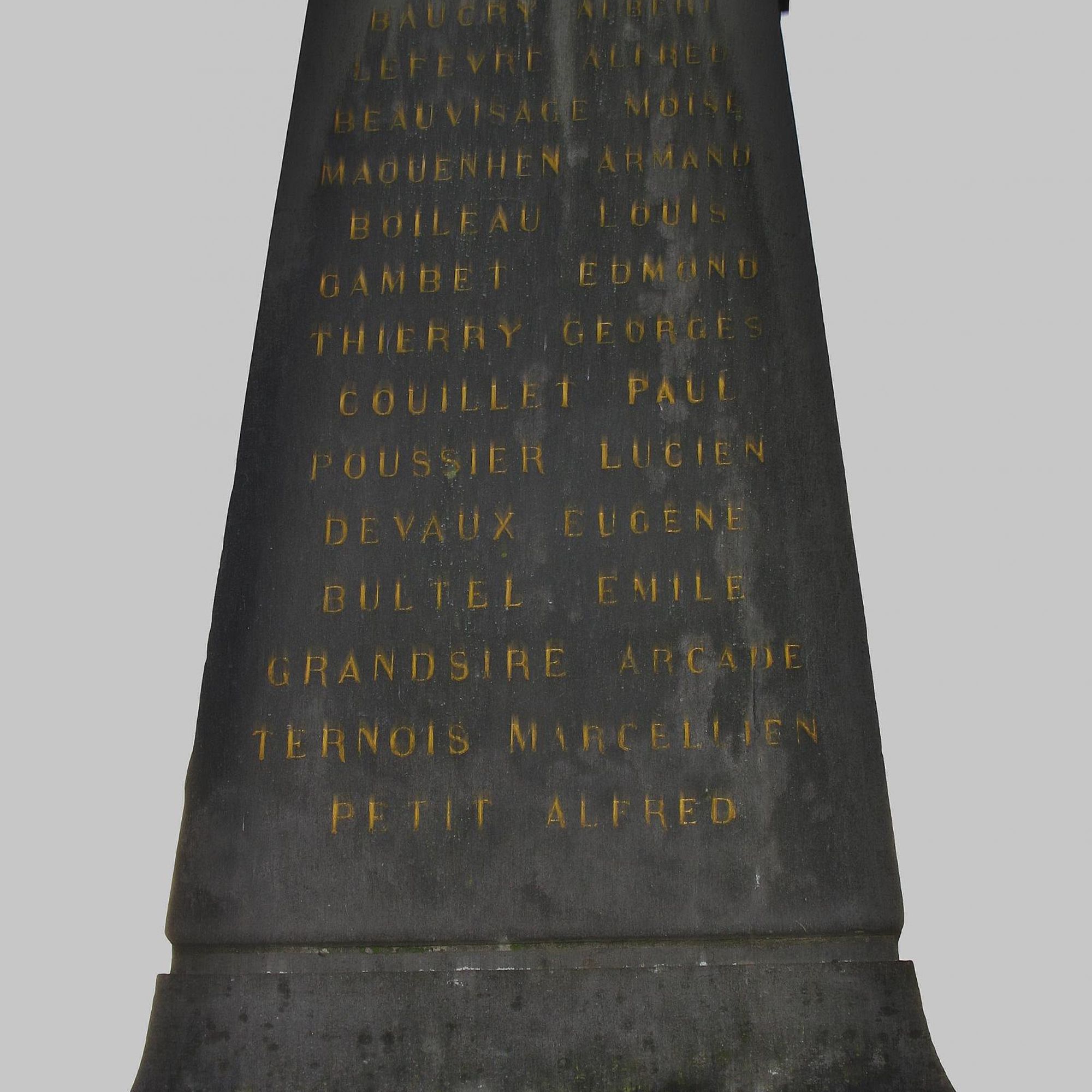 Ces inscriptions faites en lettres capitales de 3cm au maximum si cela est possible à raison de 0,80 frs la lettre seront gravées moitié à droite, moitié à gauche de la pyramide partie portant sur la face l'ornement sculpté