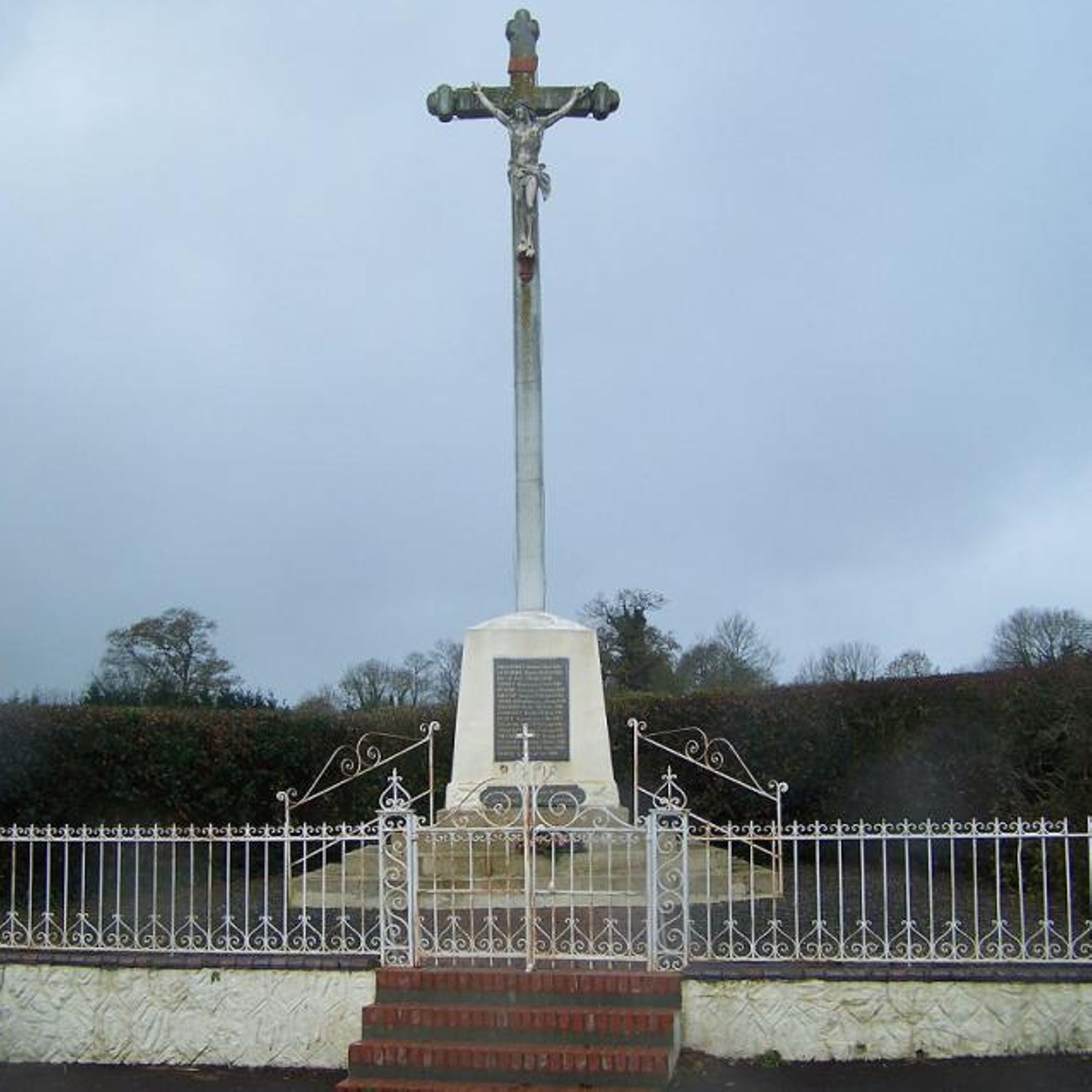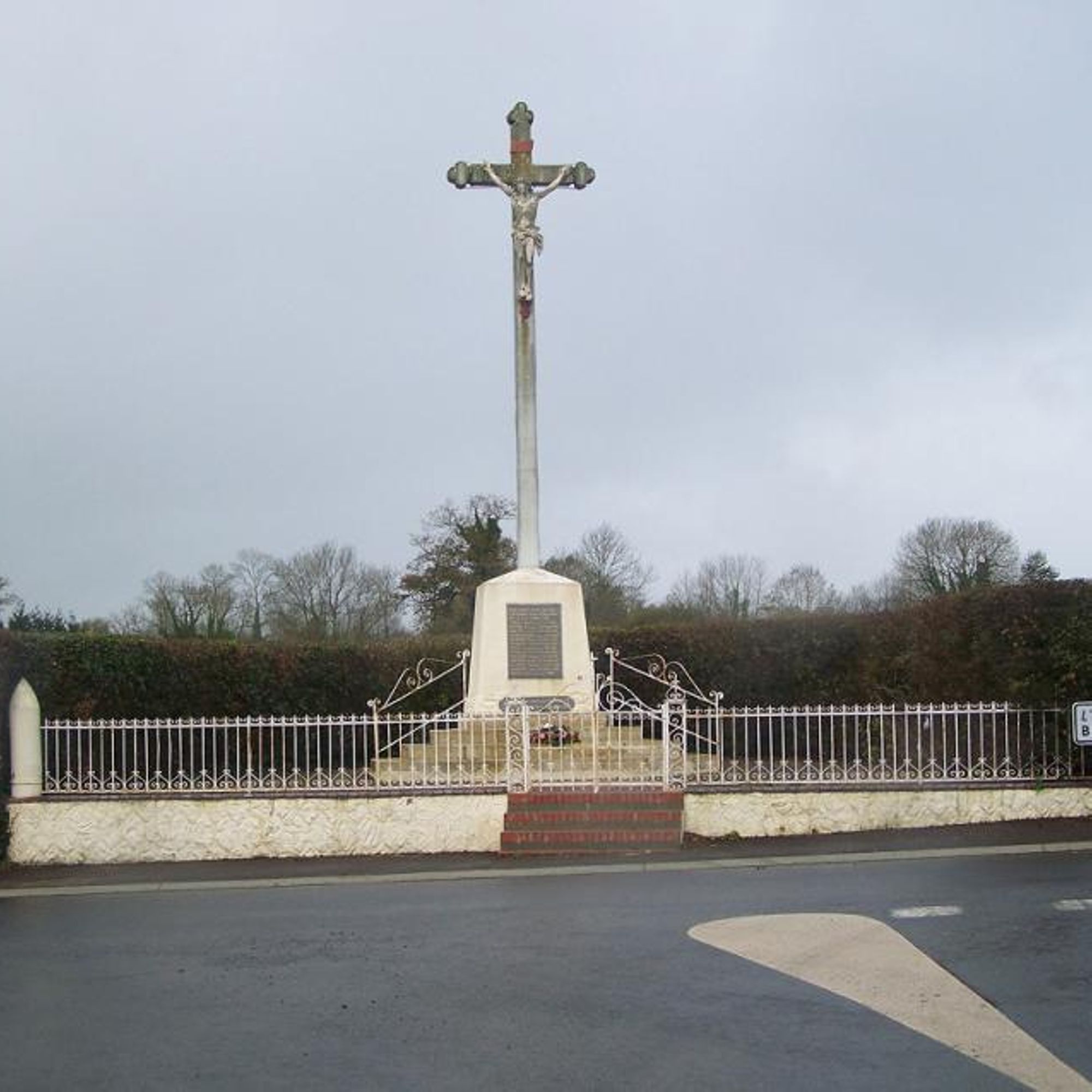 Monument constitué d'un crucifix sur piedestal sur lequel est scellée une plaque de marbre.