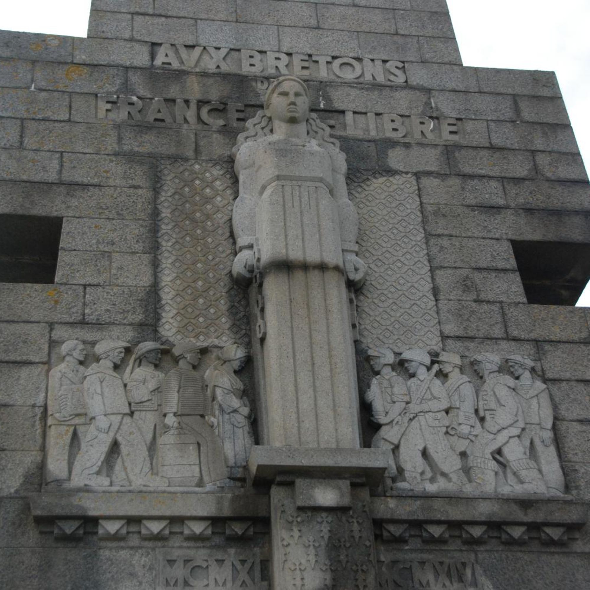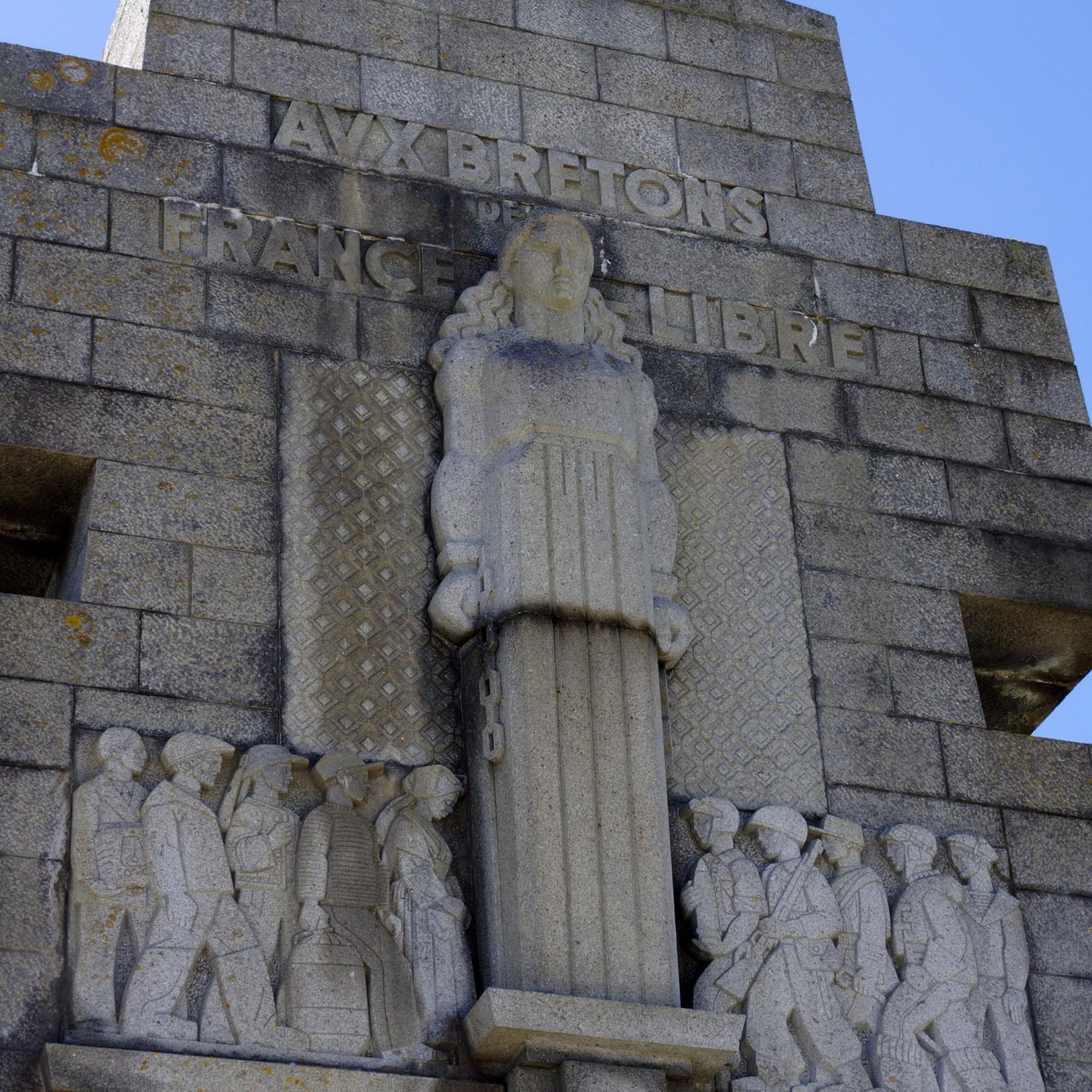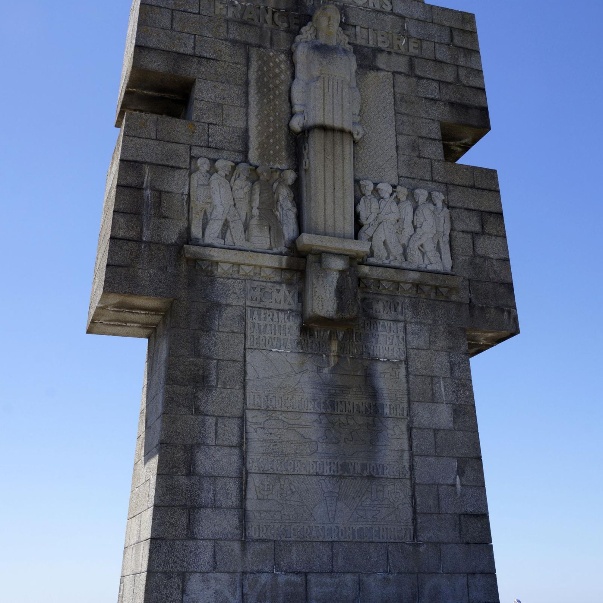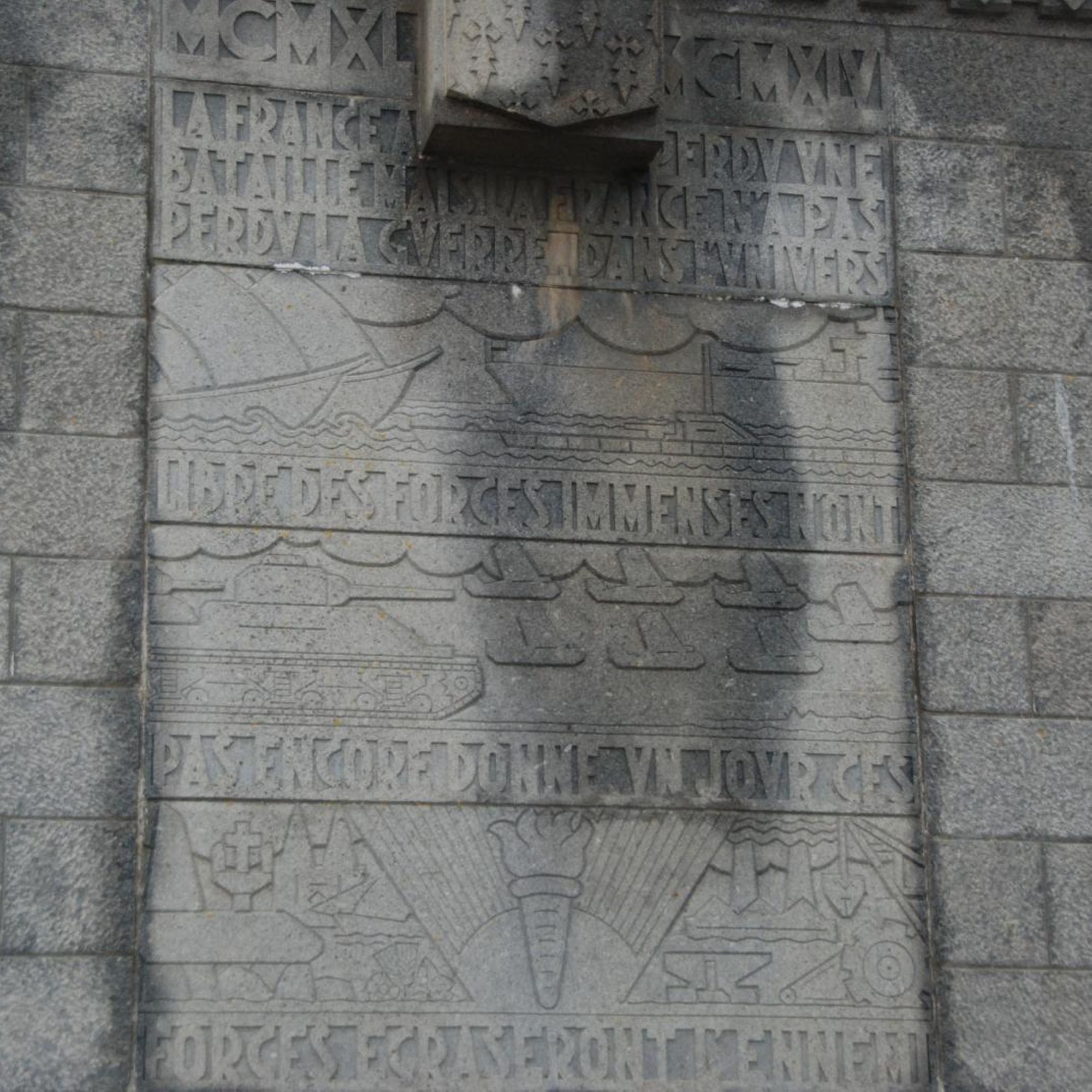 Sous cette sculpture, se trouve un décor en bas-relief où ont été gravées les premières phrases de l'appel du 18 juin 1940.
