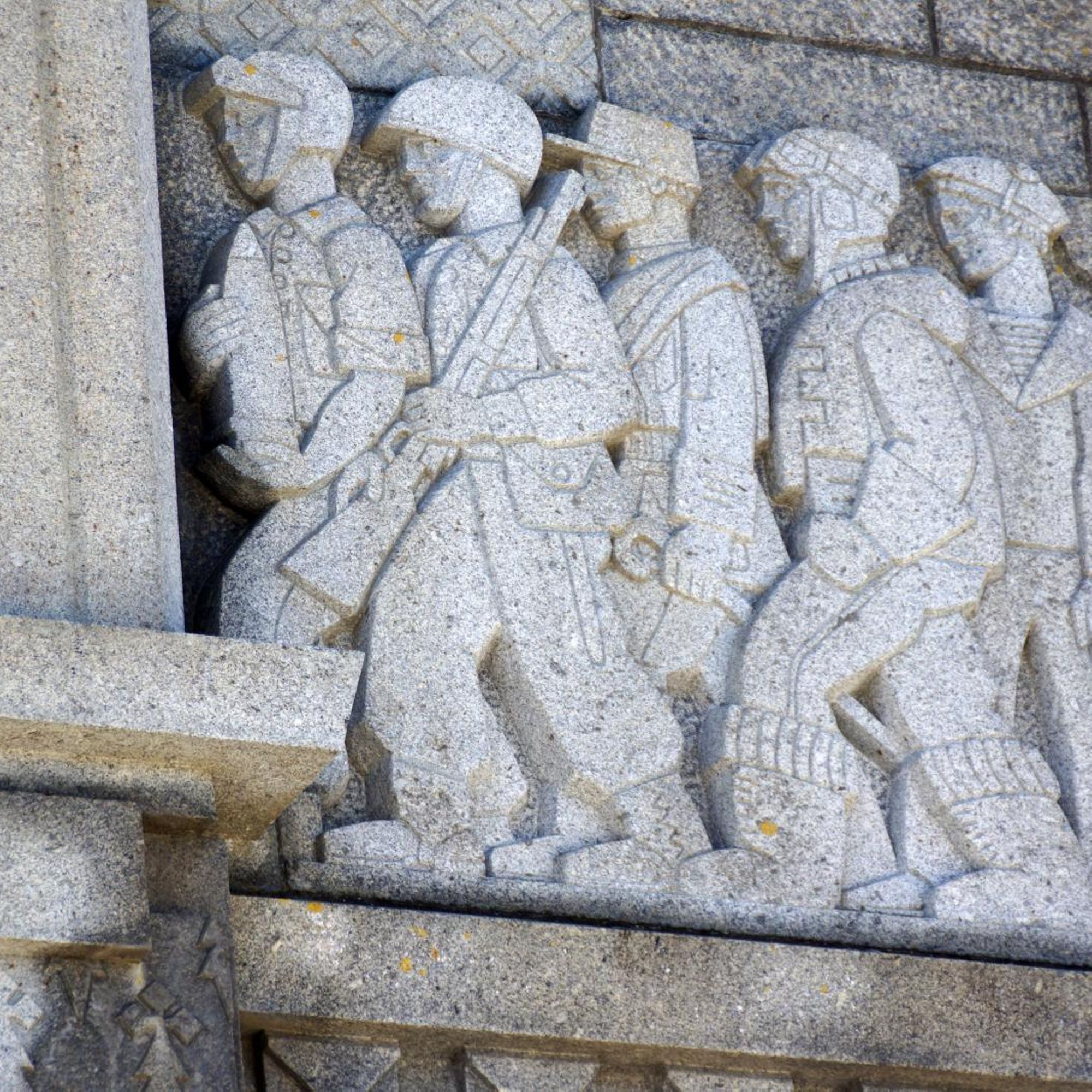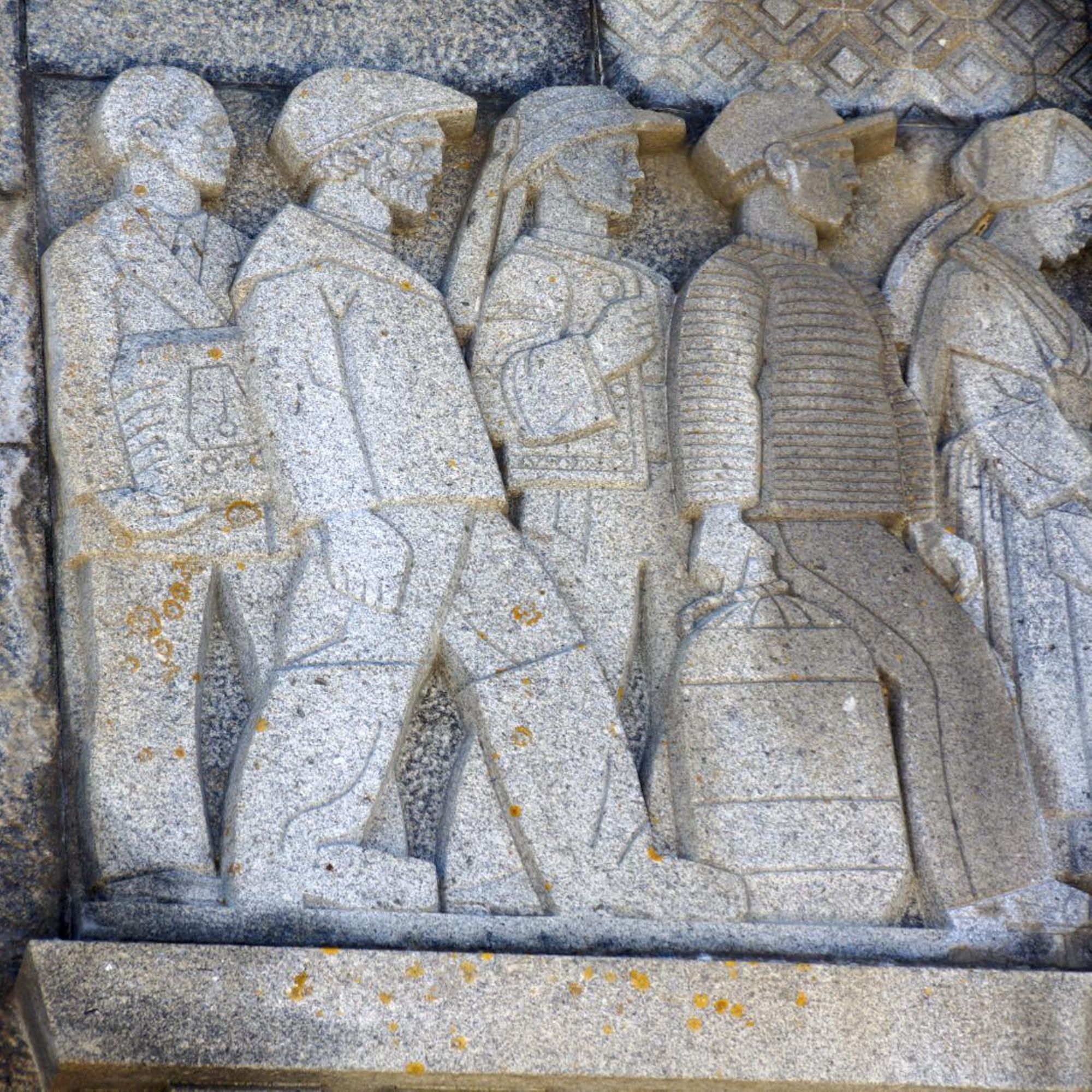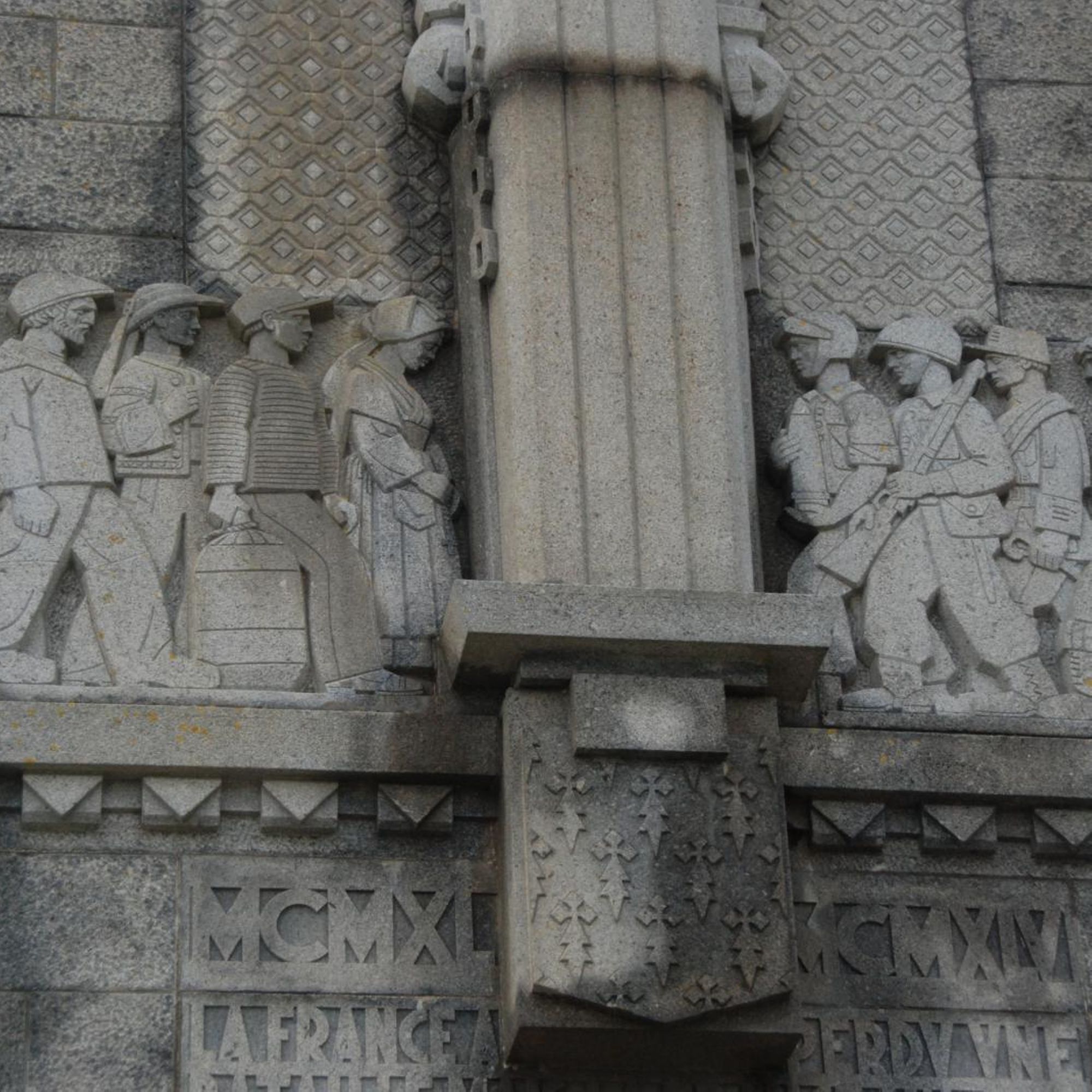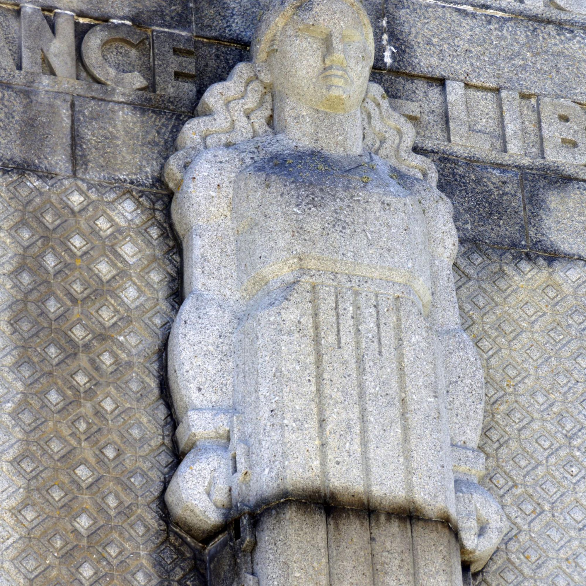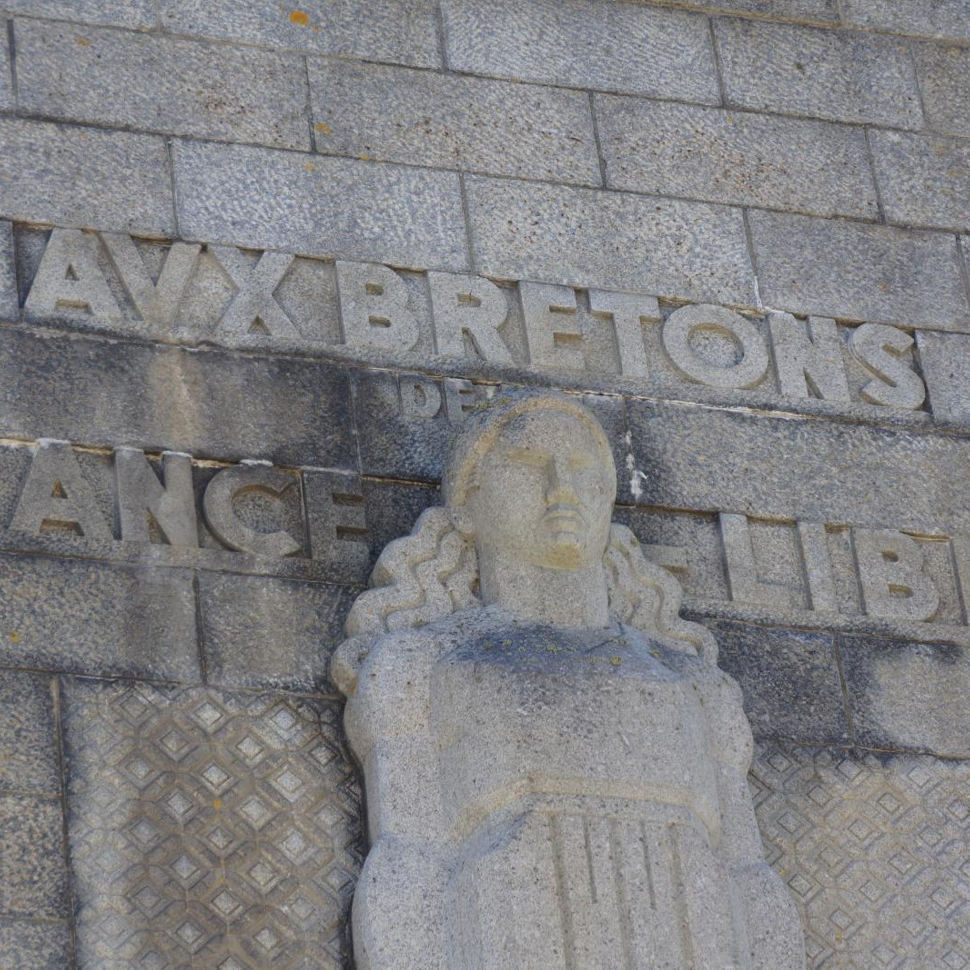 Sous cette sculpture, se trouve un décor en bas-relief où ont été gravées les premières phrases de l'appel du 18 juin 1940.