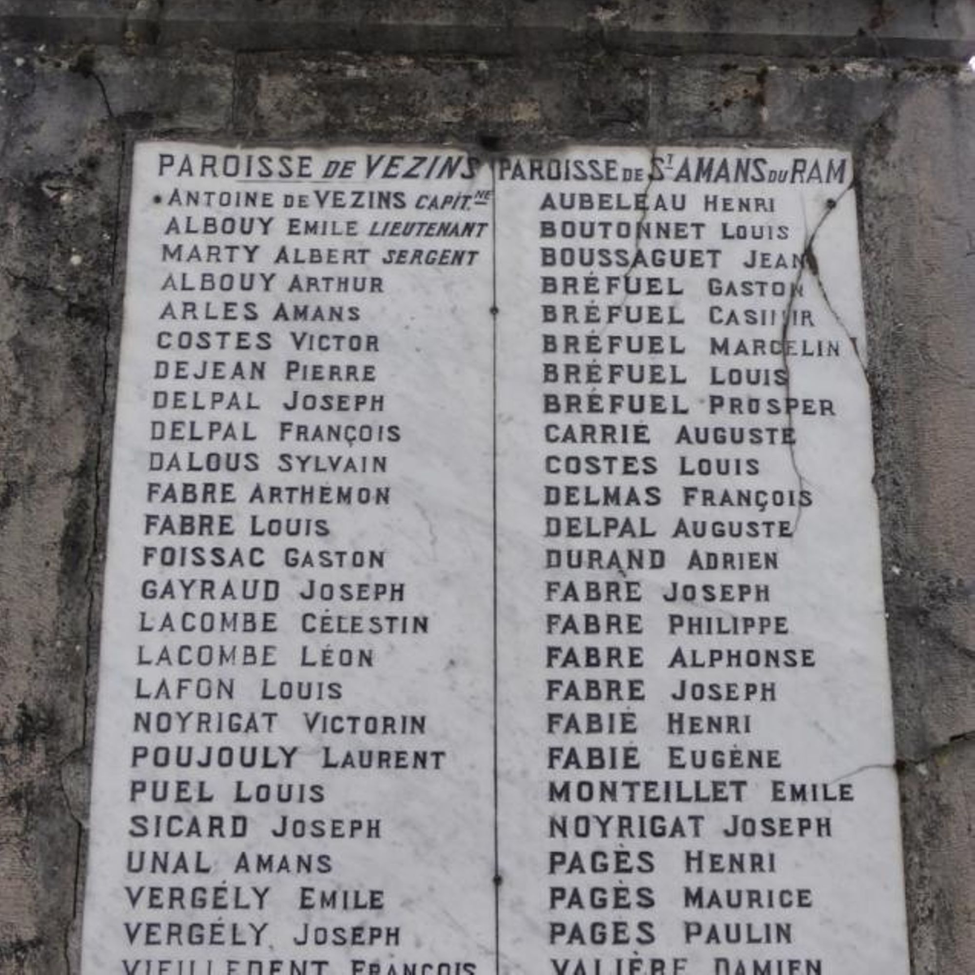 HOMMAGE DE LA COMMUNE DE VEZINS À SES ENFATS MORTS POUR LA PATRIE 1914-1918