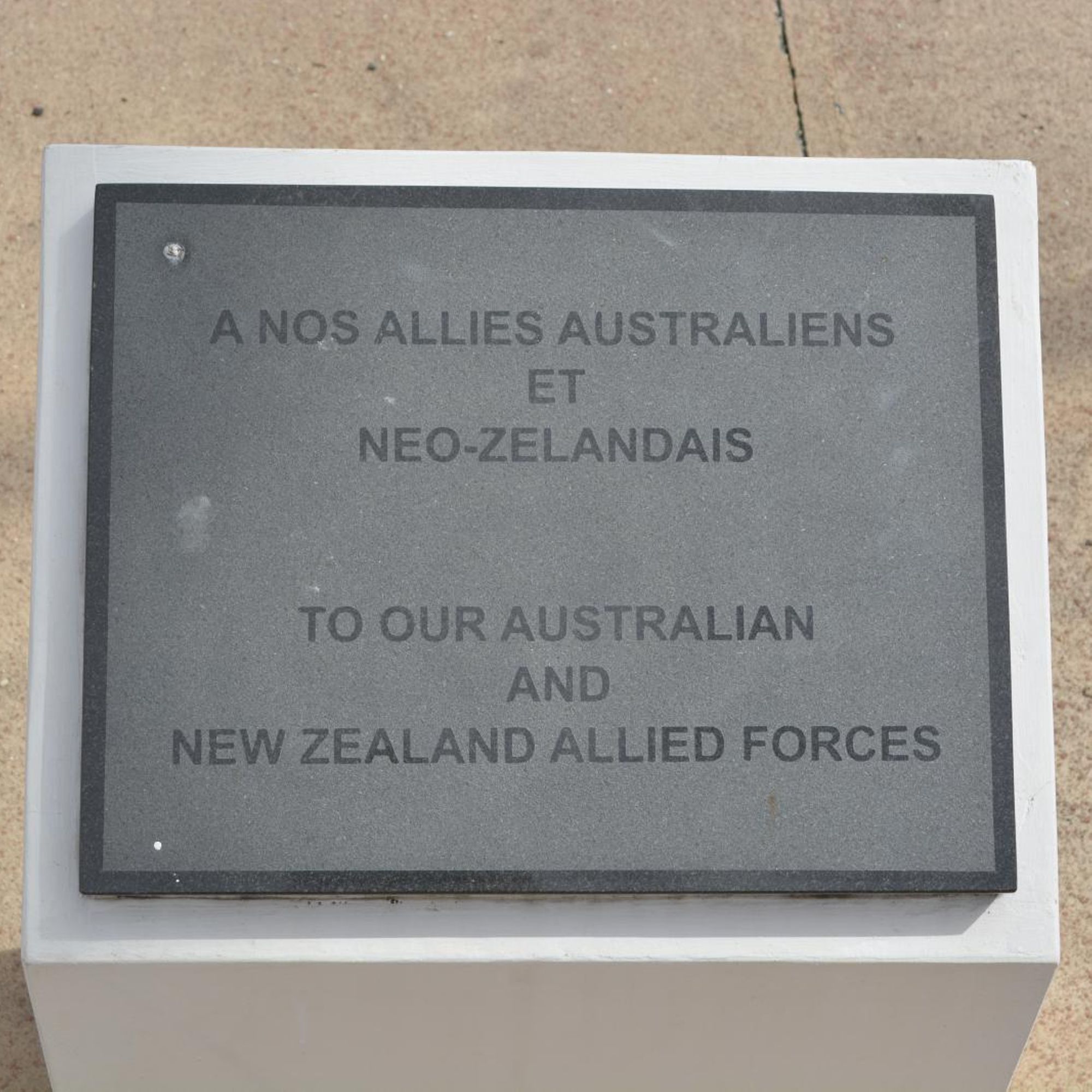 1 plaque de part et autre du monument aux alliés américains et au alliés australiens et néo-zelandais