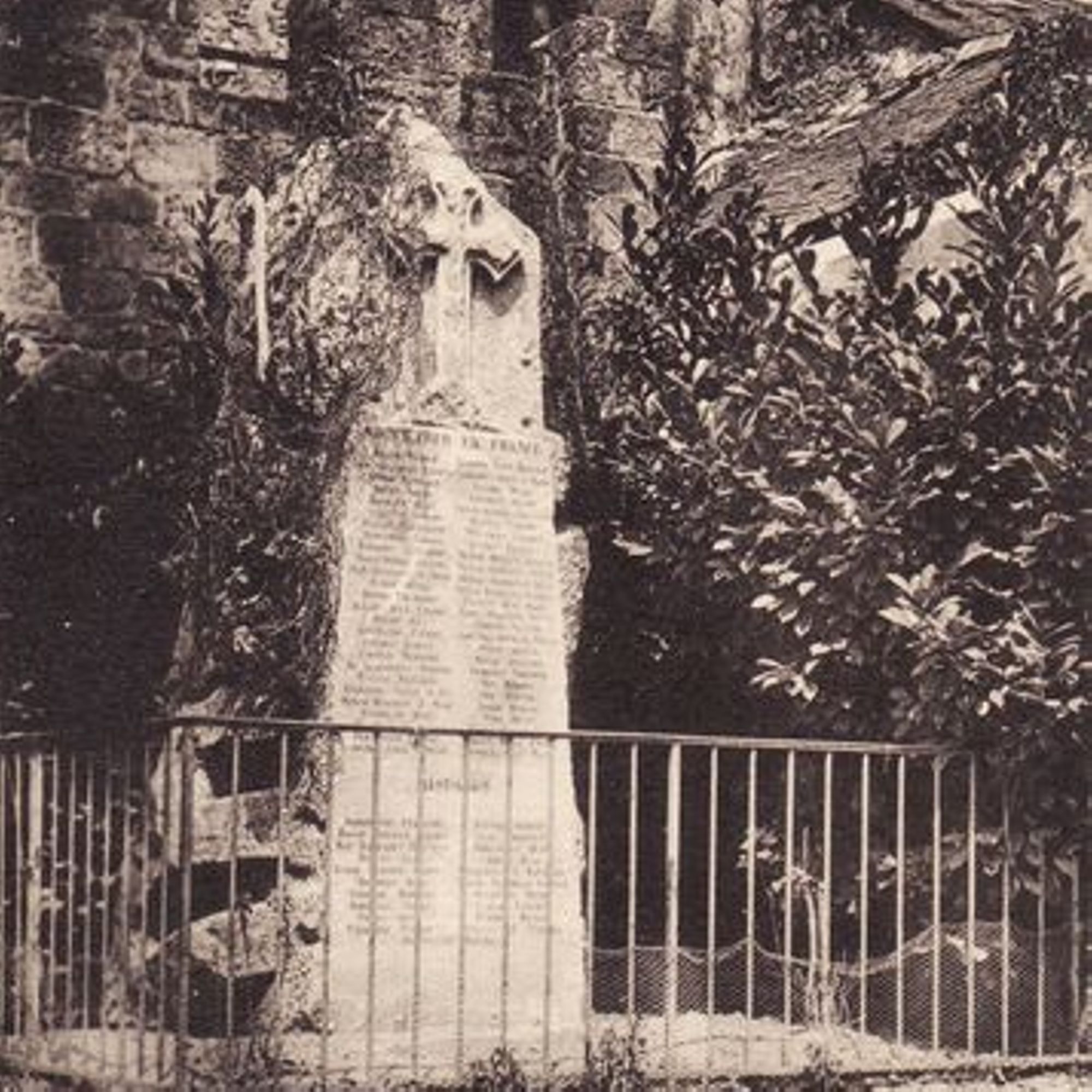 - une plaque portant les noms, gravés en lettres dorées et classés dans l'ordre alphabétique, des 73 soldats morts ou disparus pendant la guerre 1914-1918