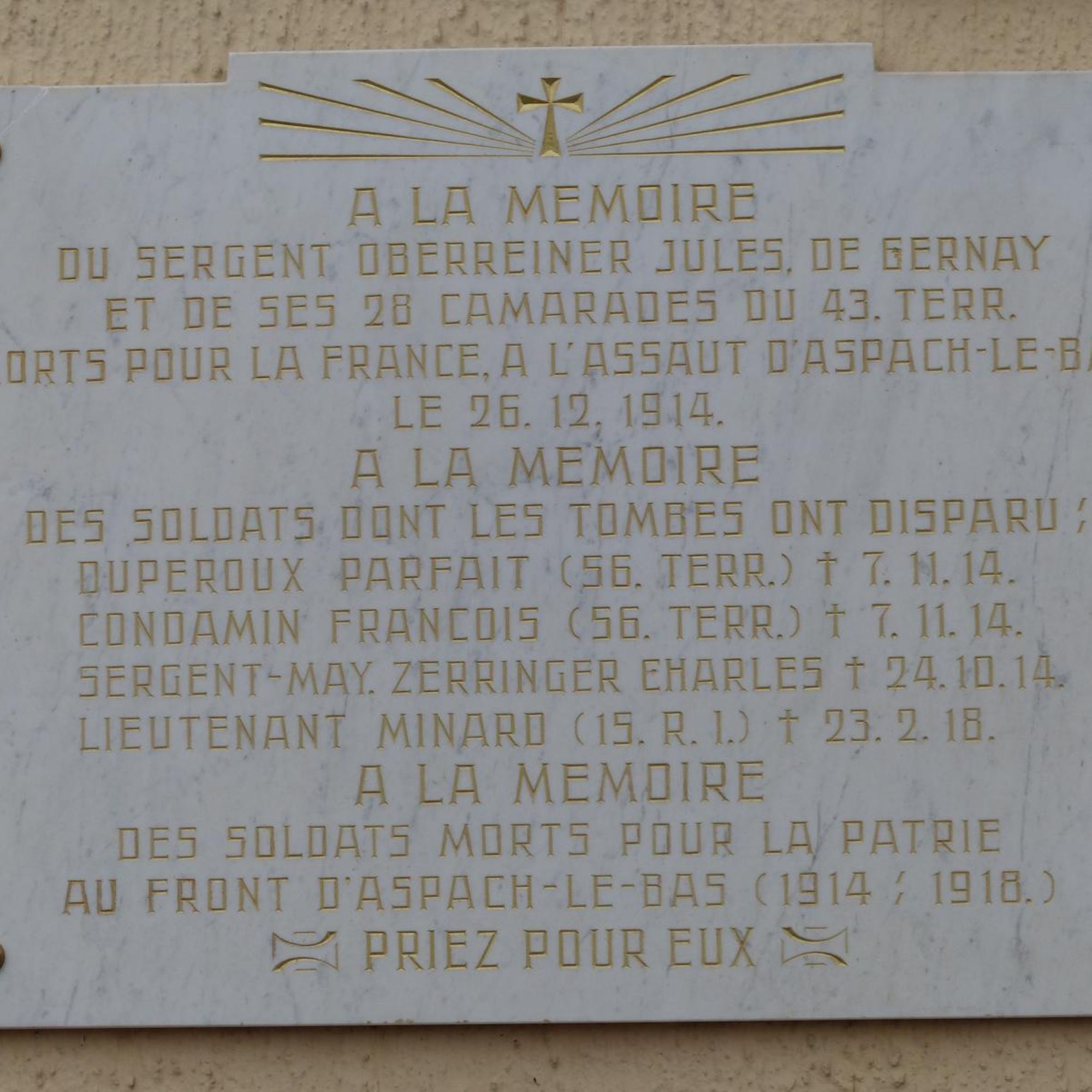 MORTS POUR LA FRANCE À L'ASSAUT D'ASPACH-LE-BAS