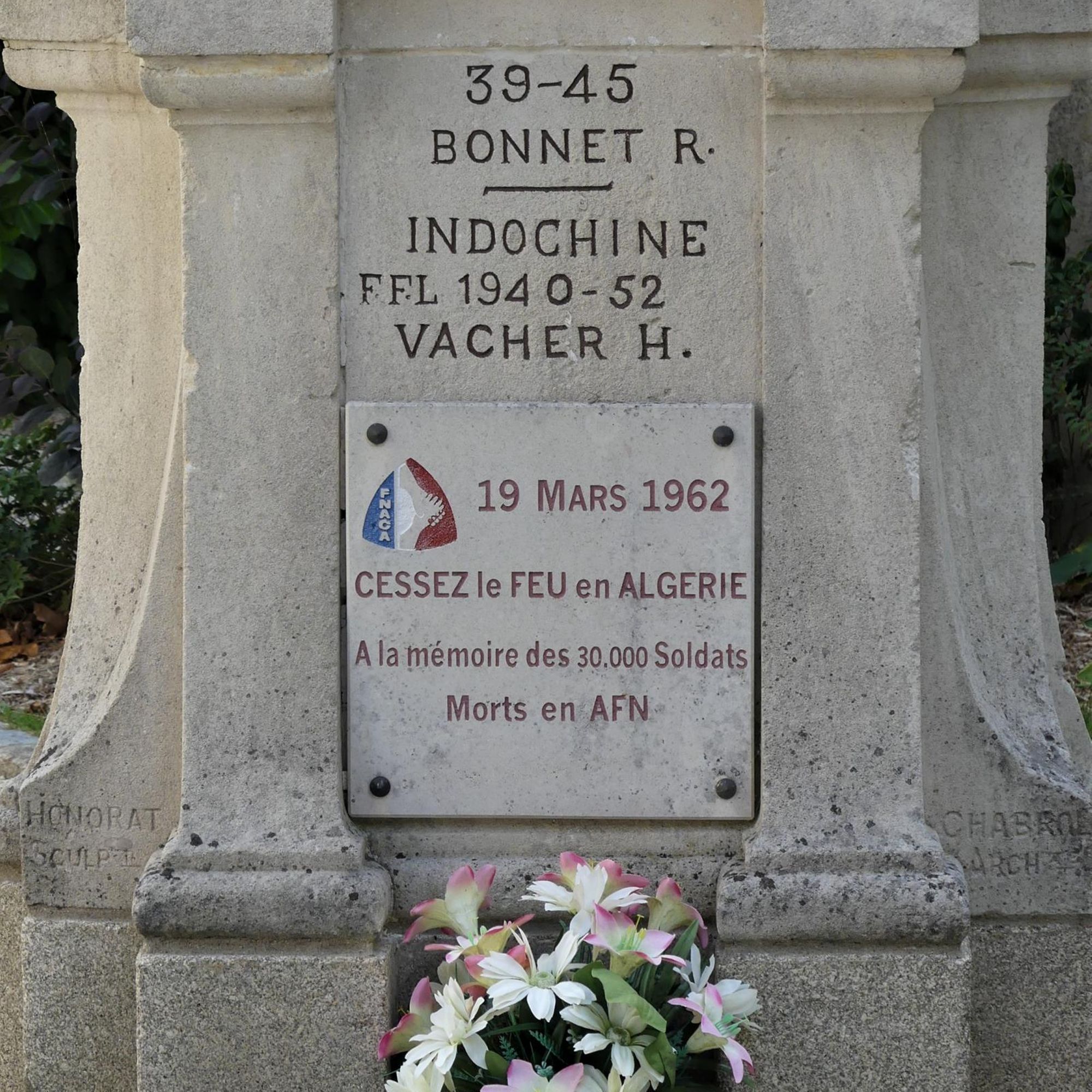 une plaque métallique de la FNACA indiquant