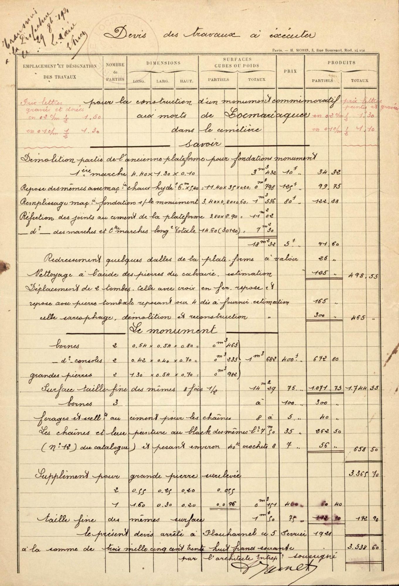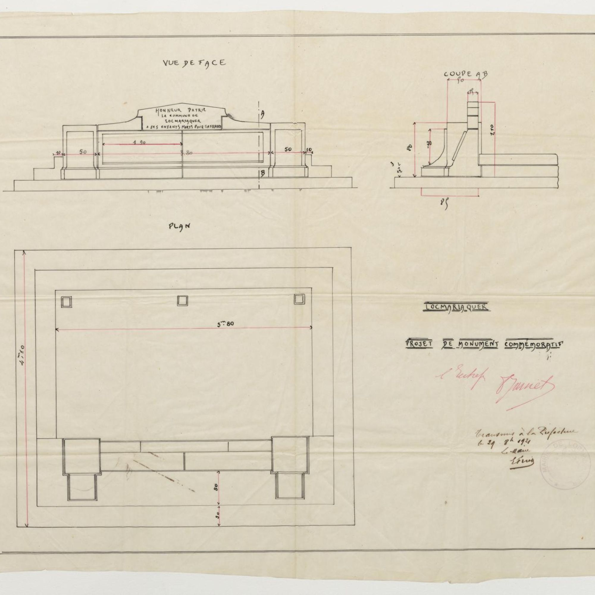 - Architecture : Mausolé (3,50 m de long sur 1,30 de haut), surmonté d'une croix latine (gauloise) monumentale sur piédestal
