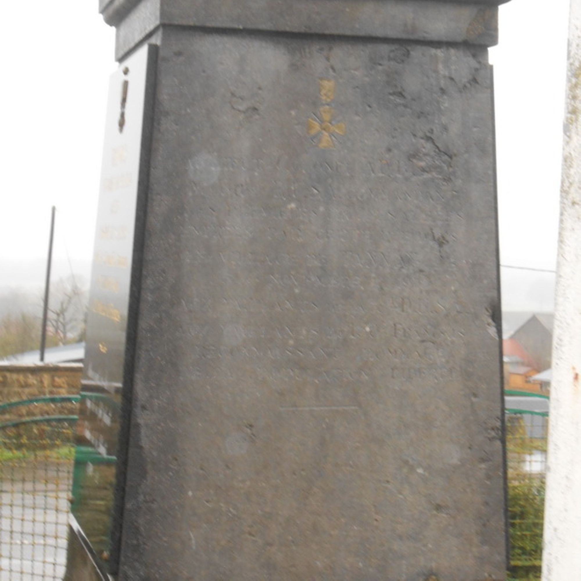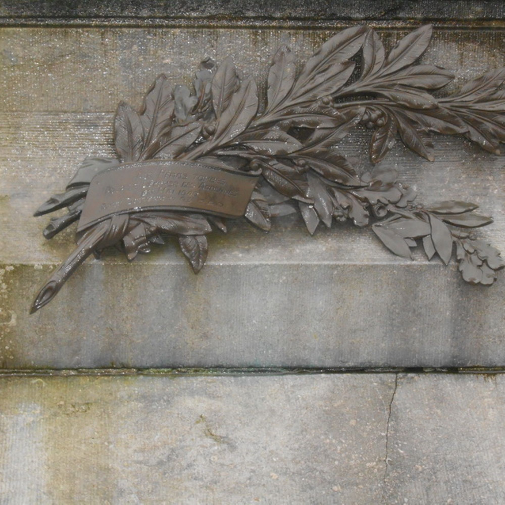 les noms des morts ont probablement été recopiés sur les panneaux en marbre (Piédestal restauré ?)