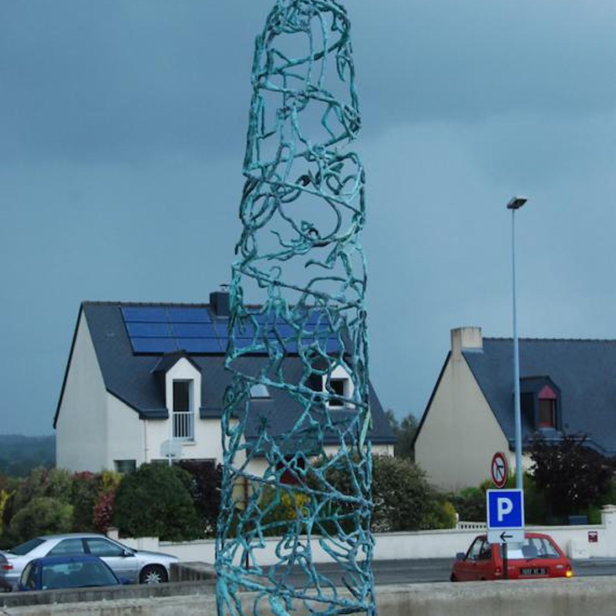 Sur une base octogonale en pierre s’élève, légère et aérée, une colonne torsadée en bronze de 4,5 m de hauteur, tout au long de laquelle se déroule la grande spirale de la vie de la naissance à la mort. Les moments forts de l’existence : l’amour des parents, le jeu, la découverte, le contact avec la nature, l’amour, la communauté à travers la danse ou la musique se succèdent représentés par des personnages stylisés enchaînant leurs mouvements dans une lente et inexorable montée vers le soleil - la sagesse – symbolisée par une boule dorée.