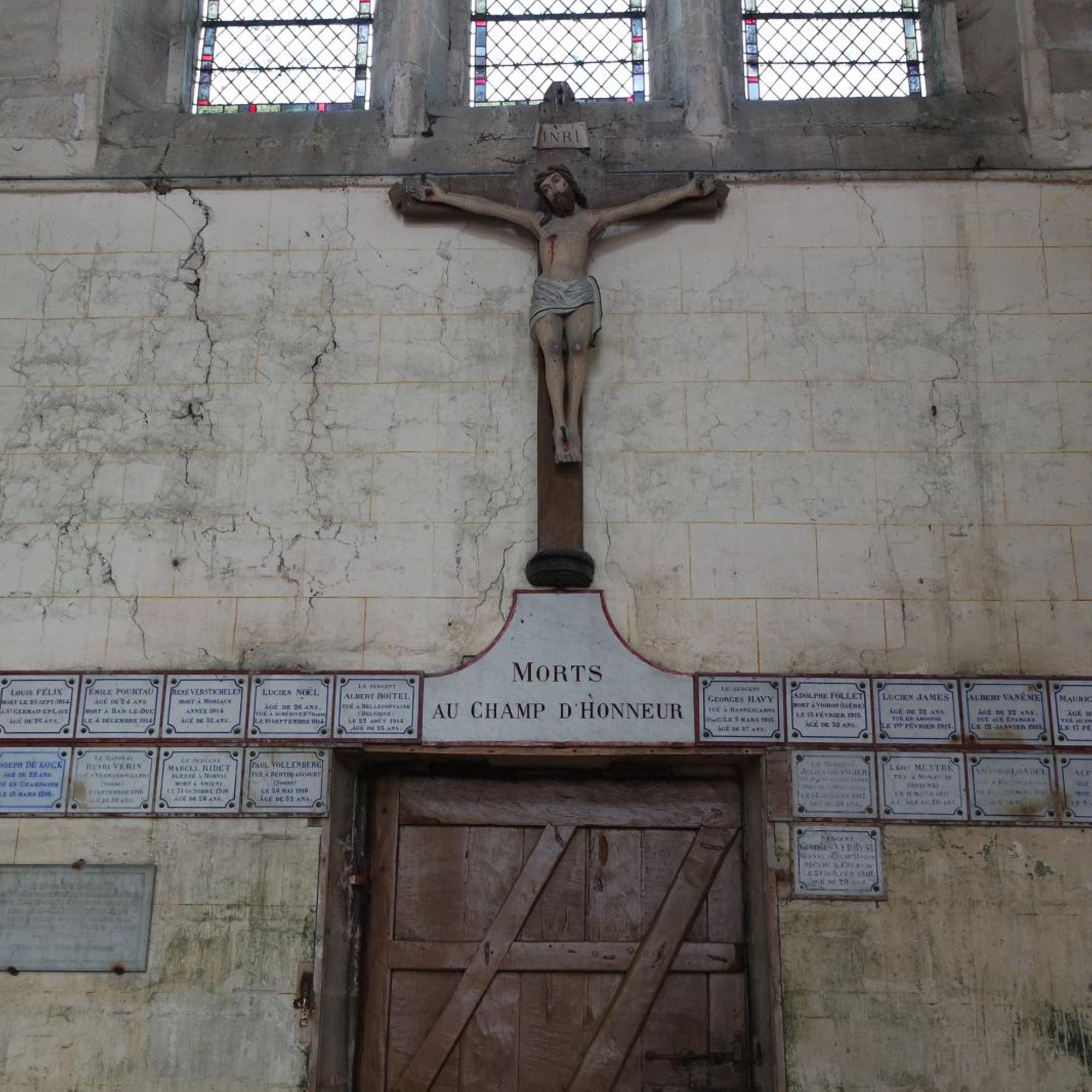 Plaques commémoratives situées sur l'un des murs à l'intérieur de l'église