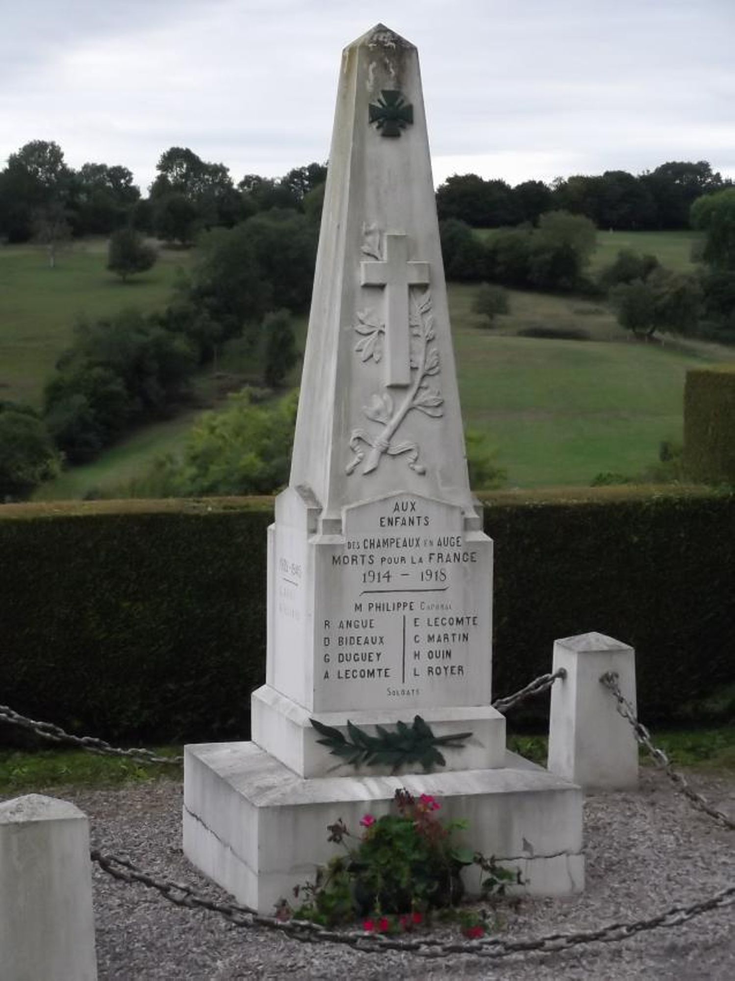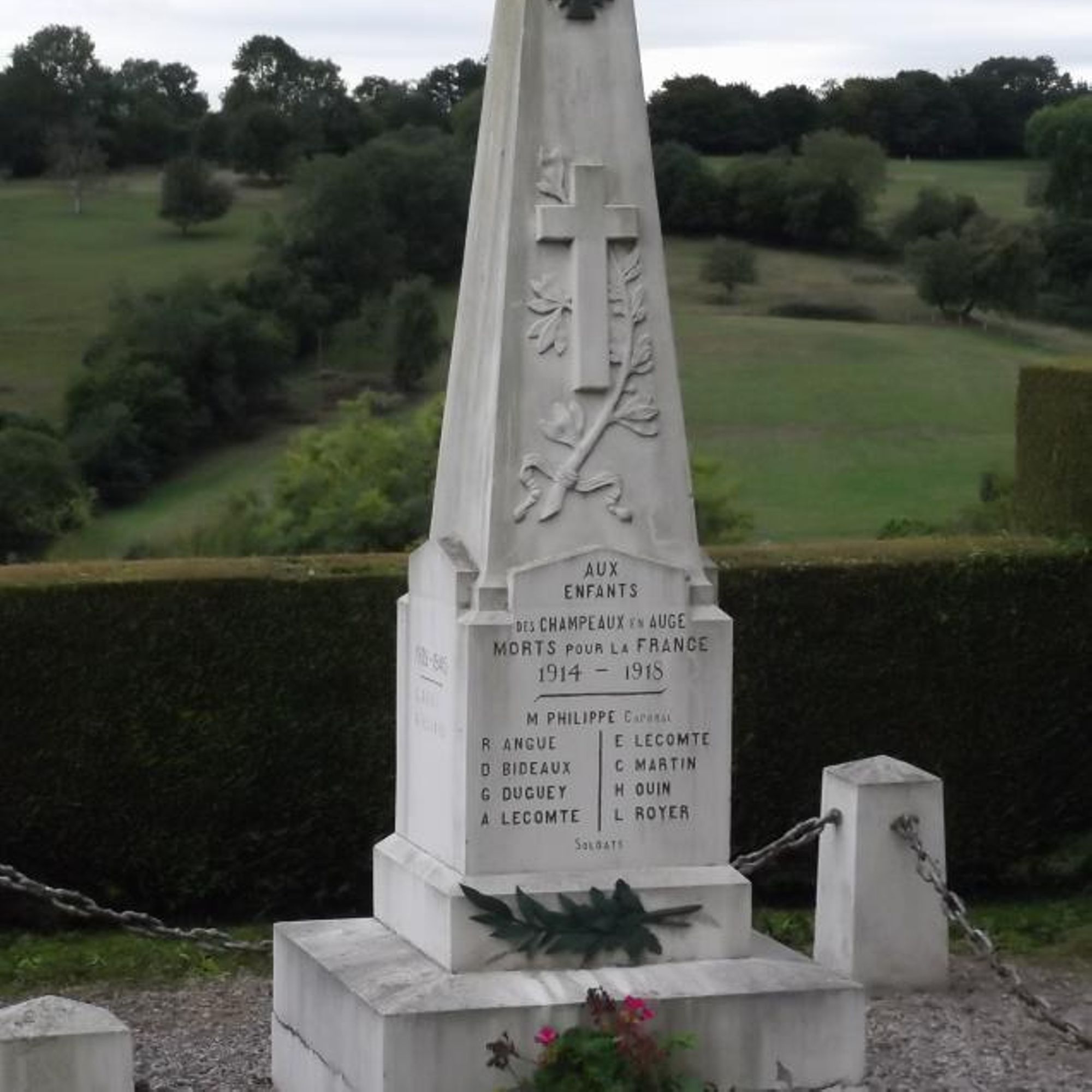Obélisque orné d'une croix de guerre et d'une palme. Une croix chrétienne et un rameau d'olivier sont sculptés dans la pierre.
