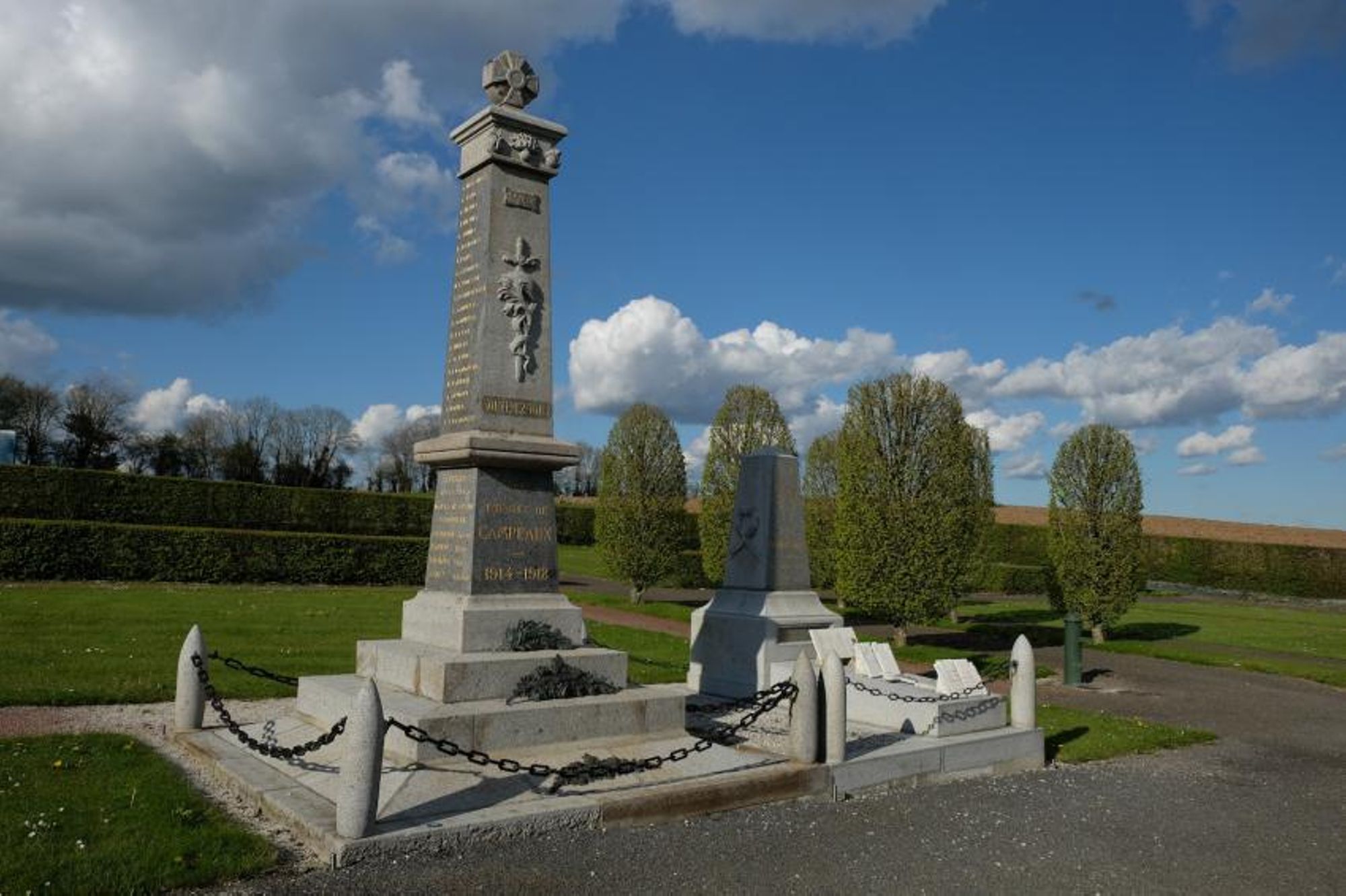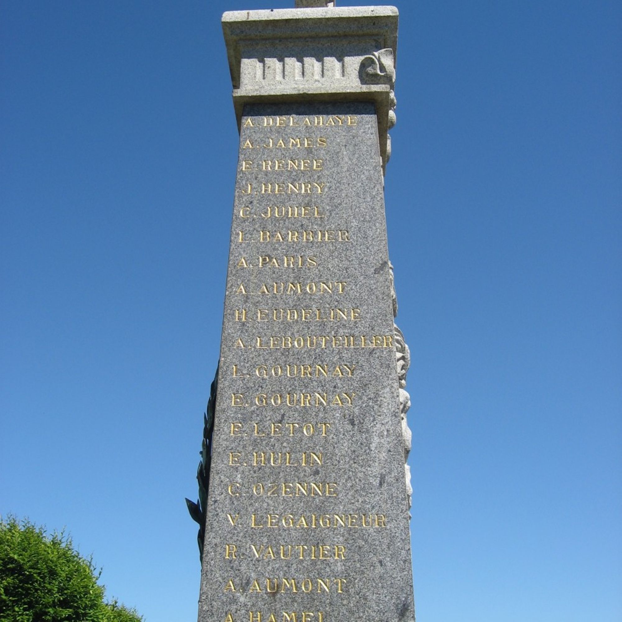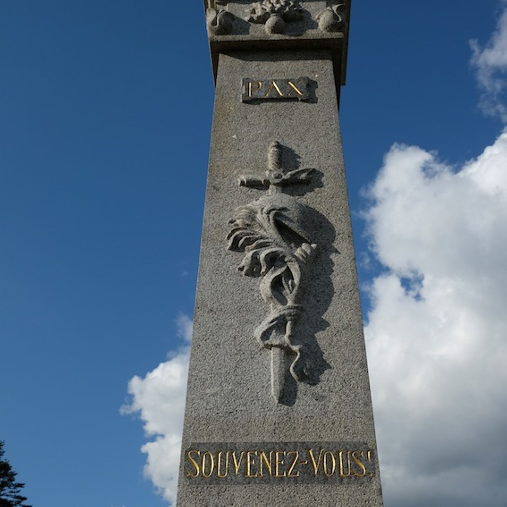 Colonne quadrangulaire avec croix de guerre au sommet.