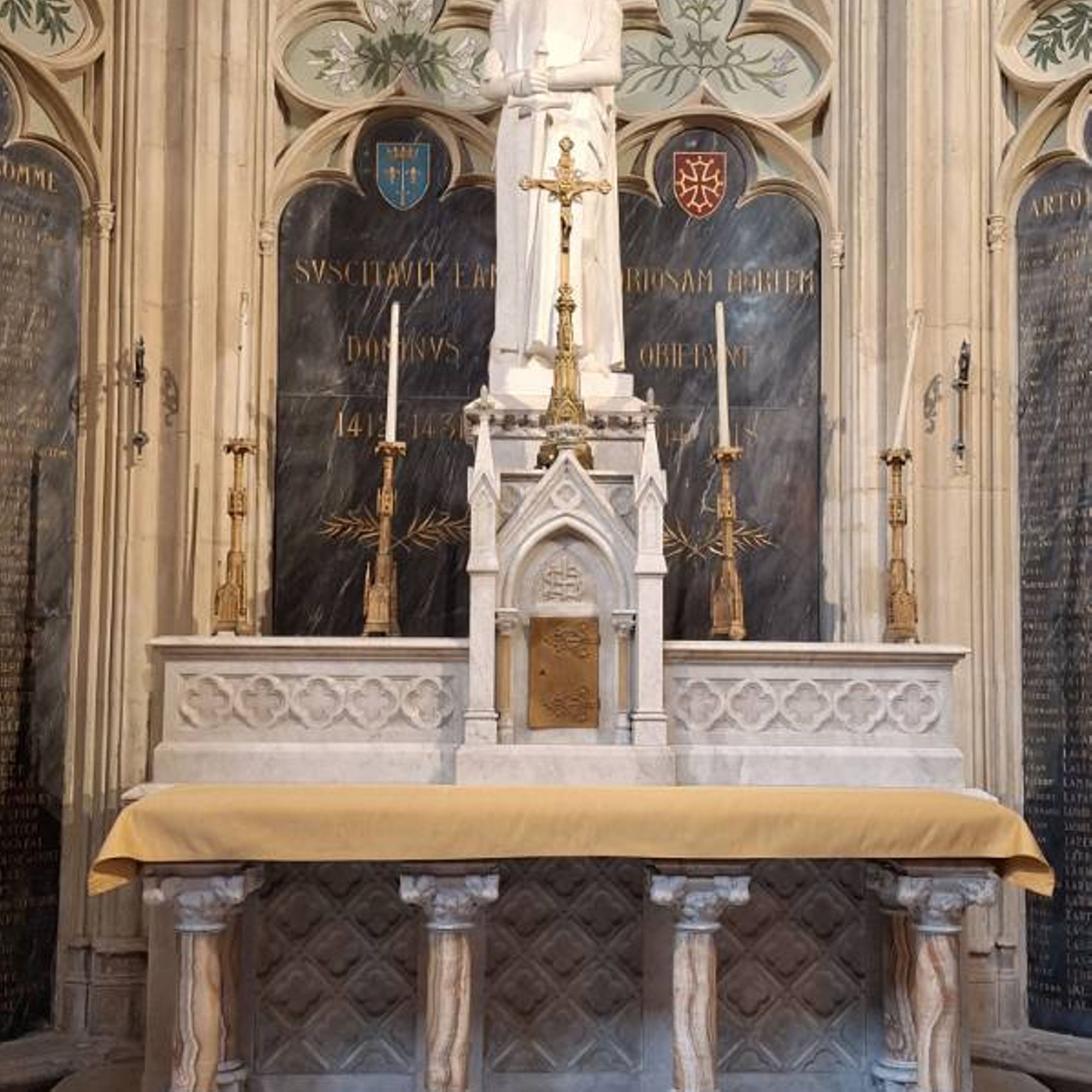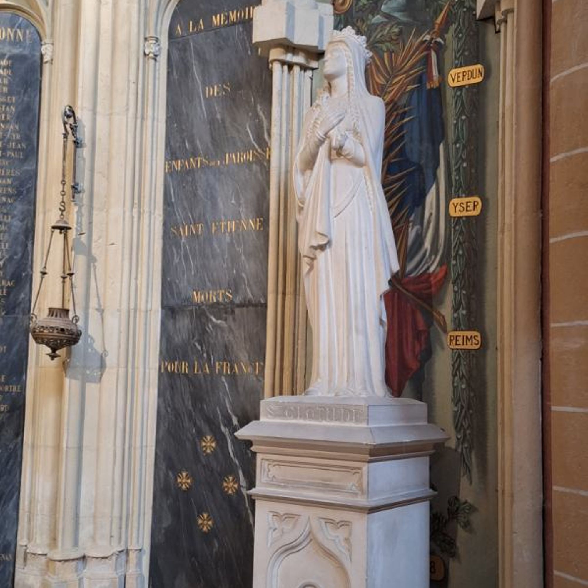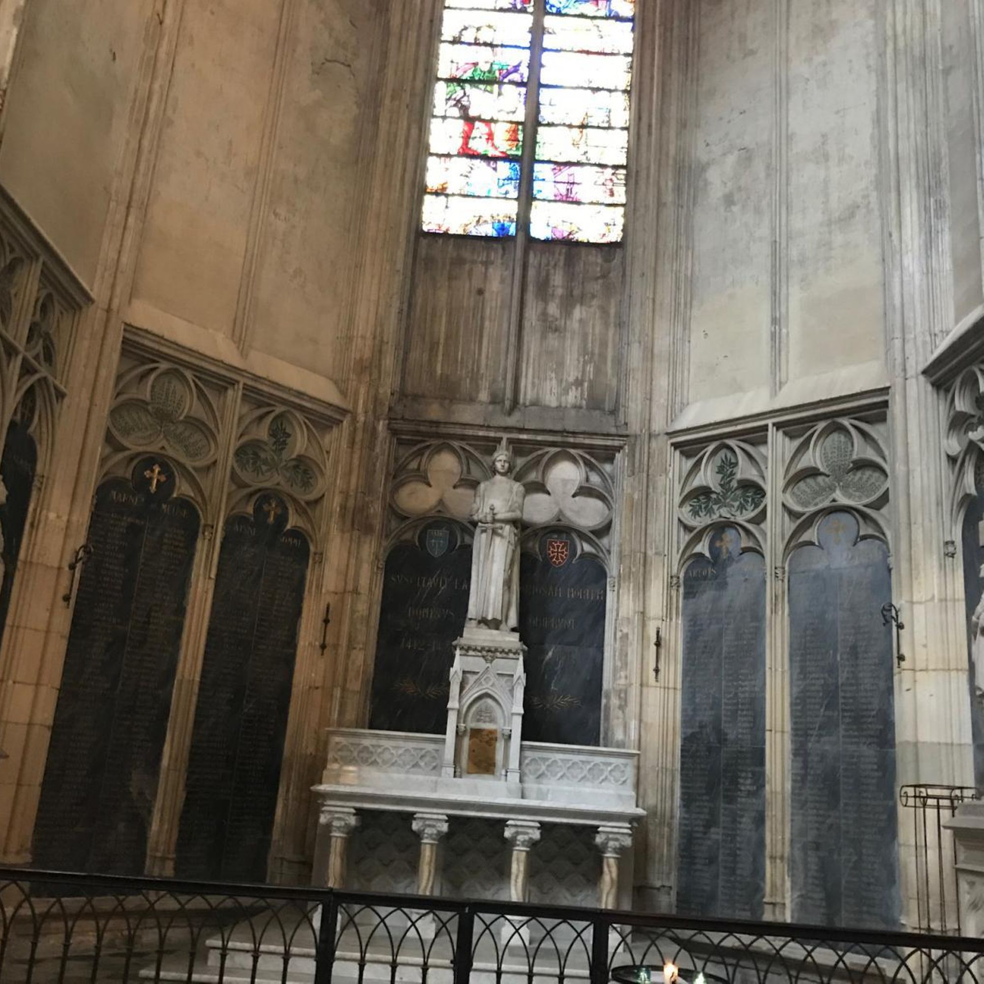 Place Saint-Étienne, dans la cathédrale Saint-Étienne, sur les côtés de la chapelle de saint-Jeanne-d'Arc.