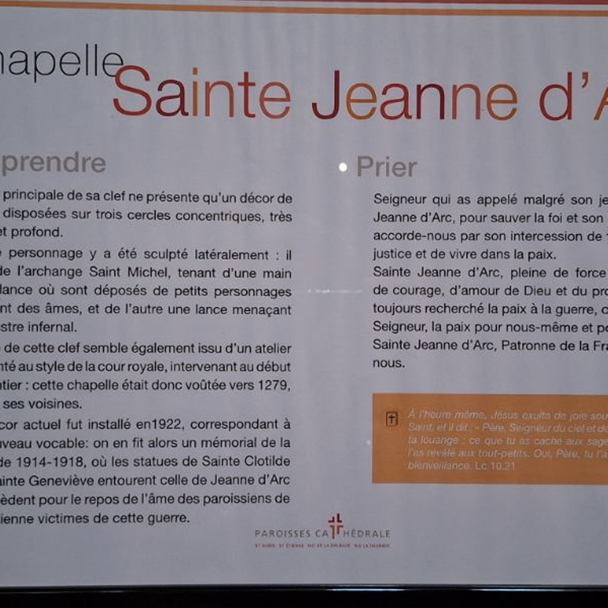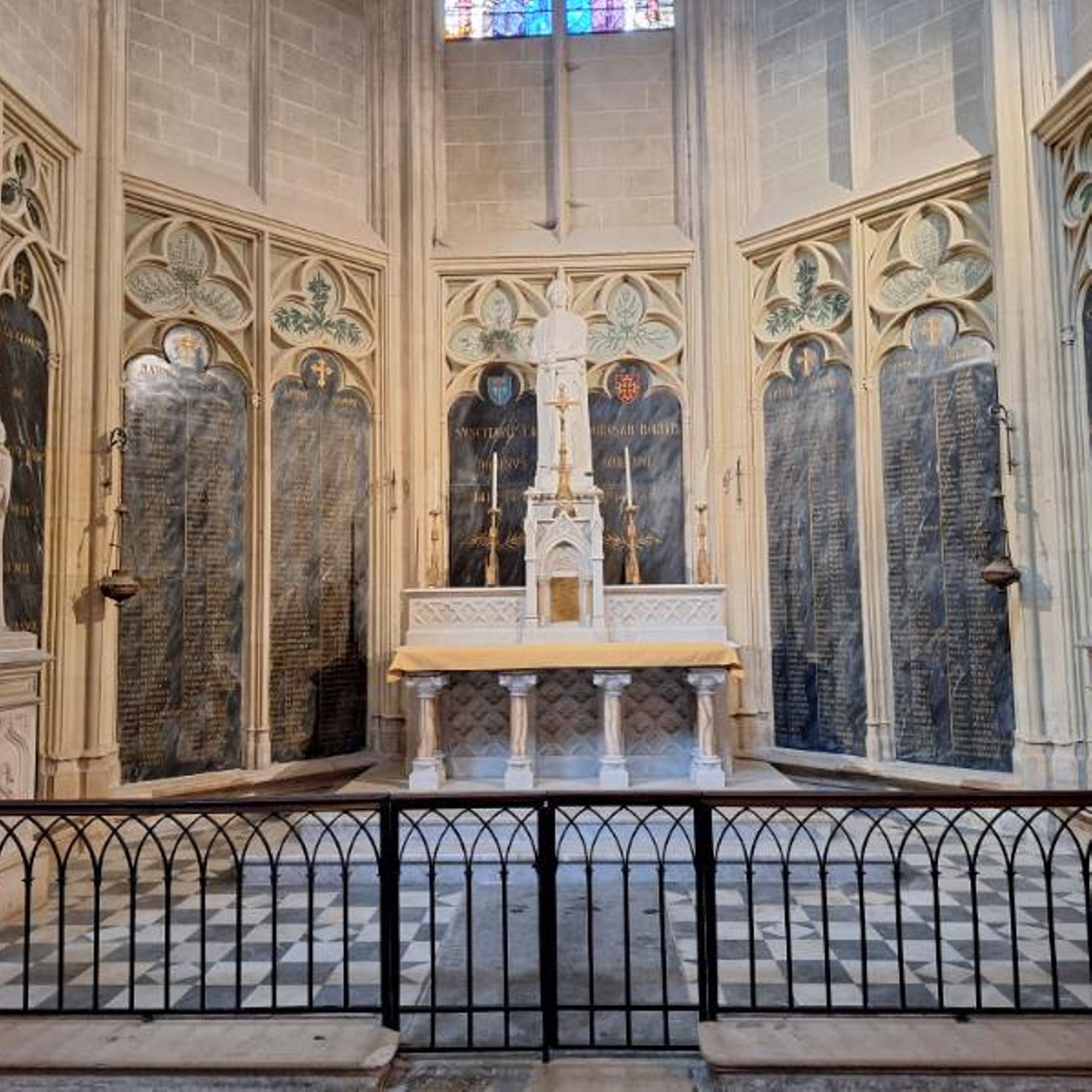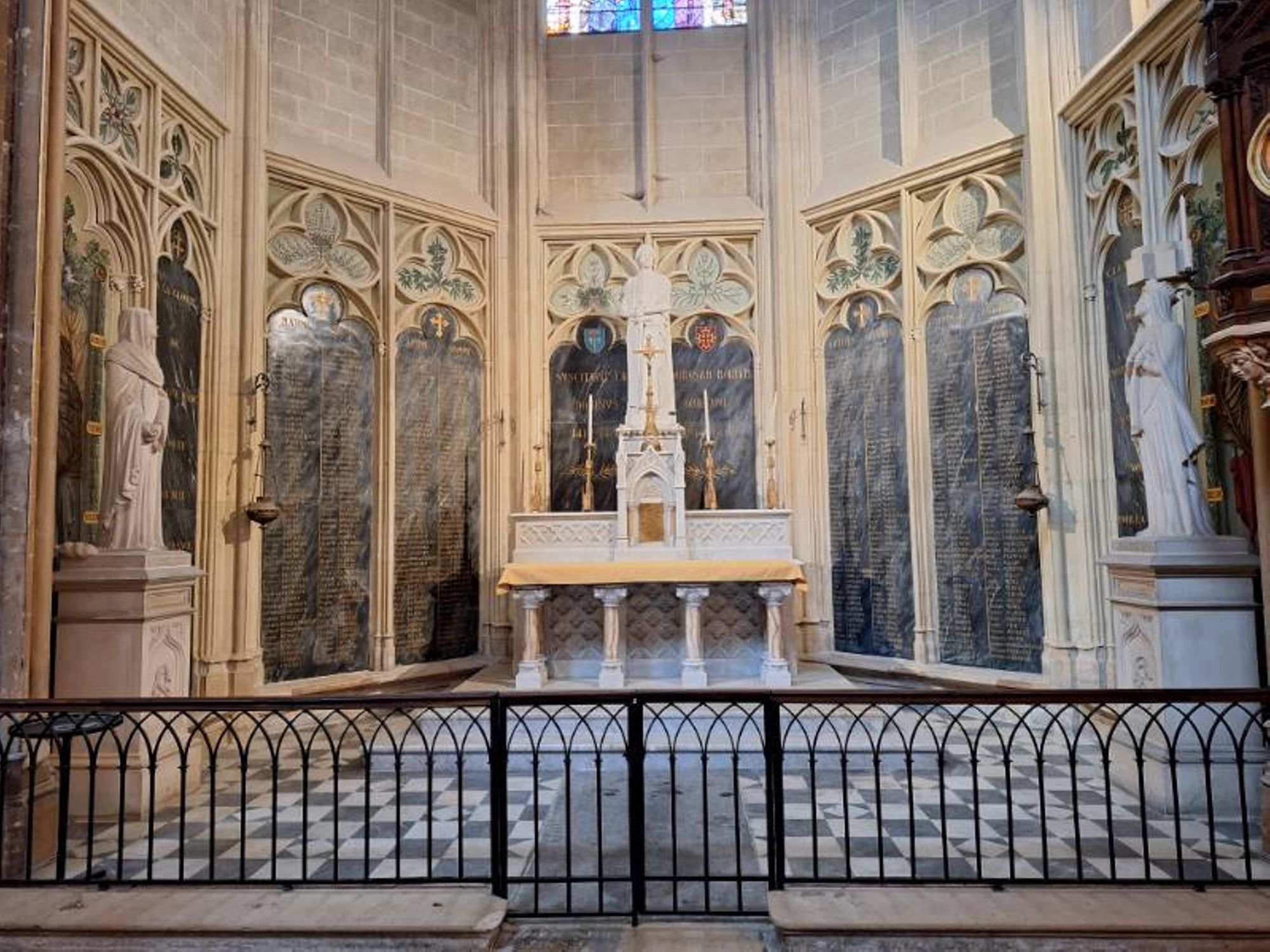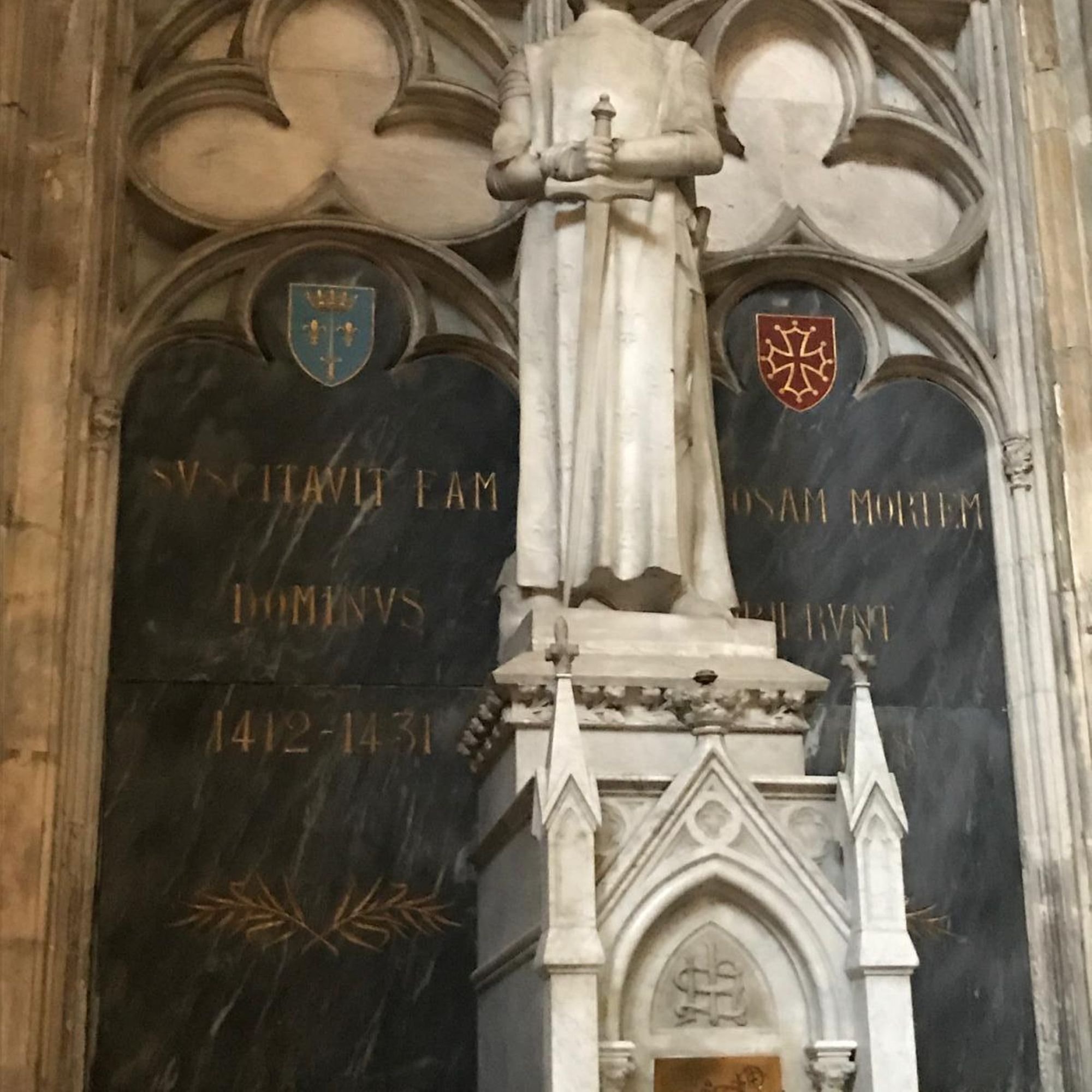Place Saint-Étienne, dans la cathédrale Saint-Étienne, sur les côtés de la chapelle de saint-Jeanne-d'Arc.