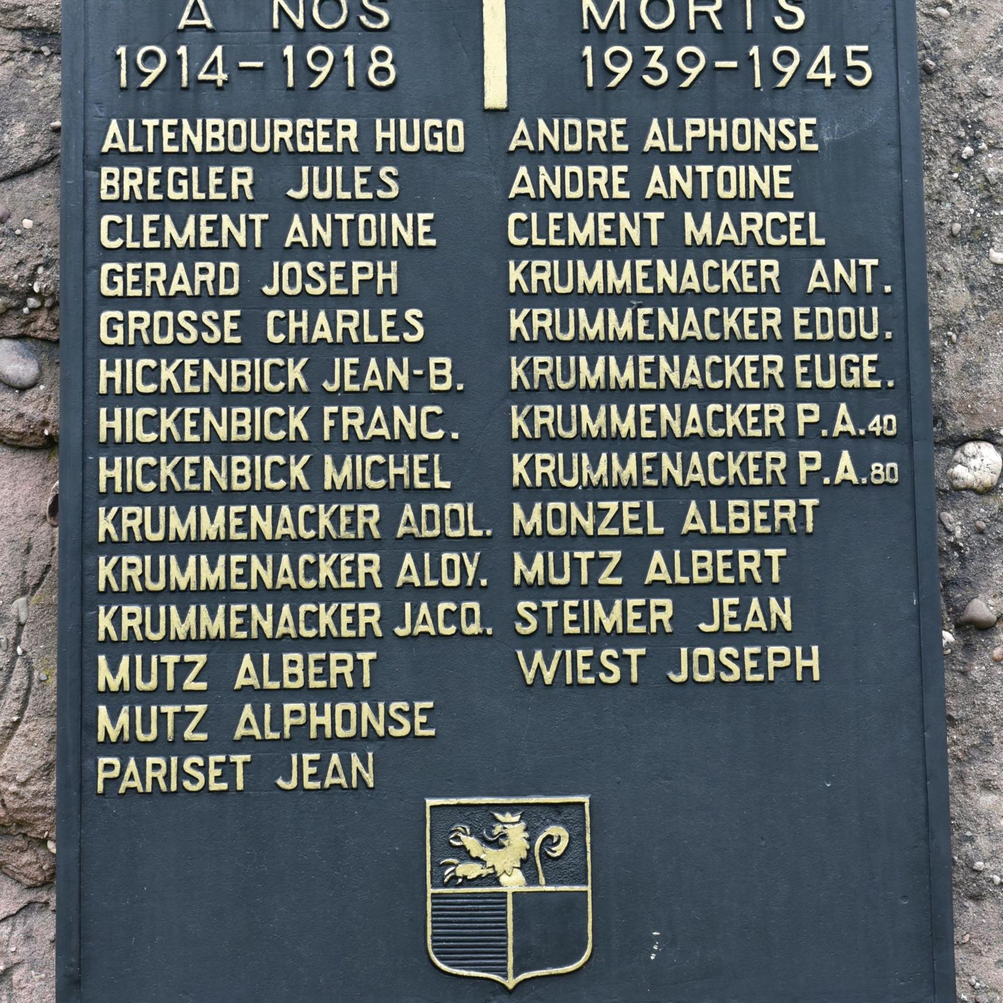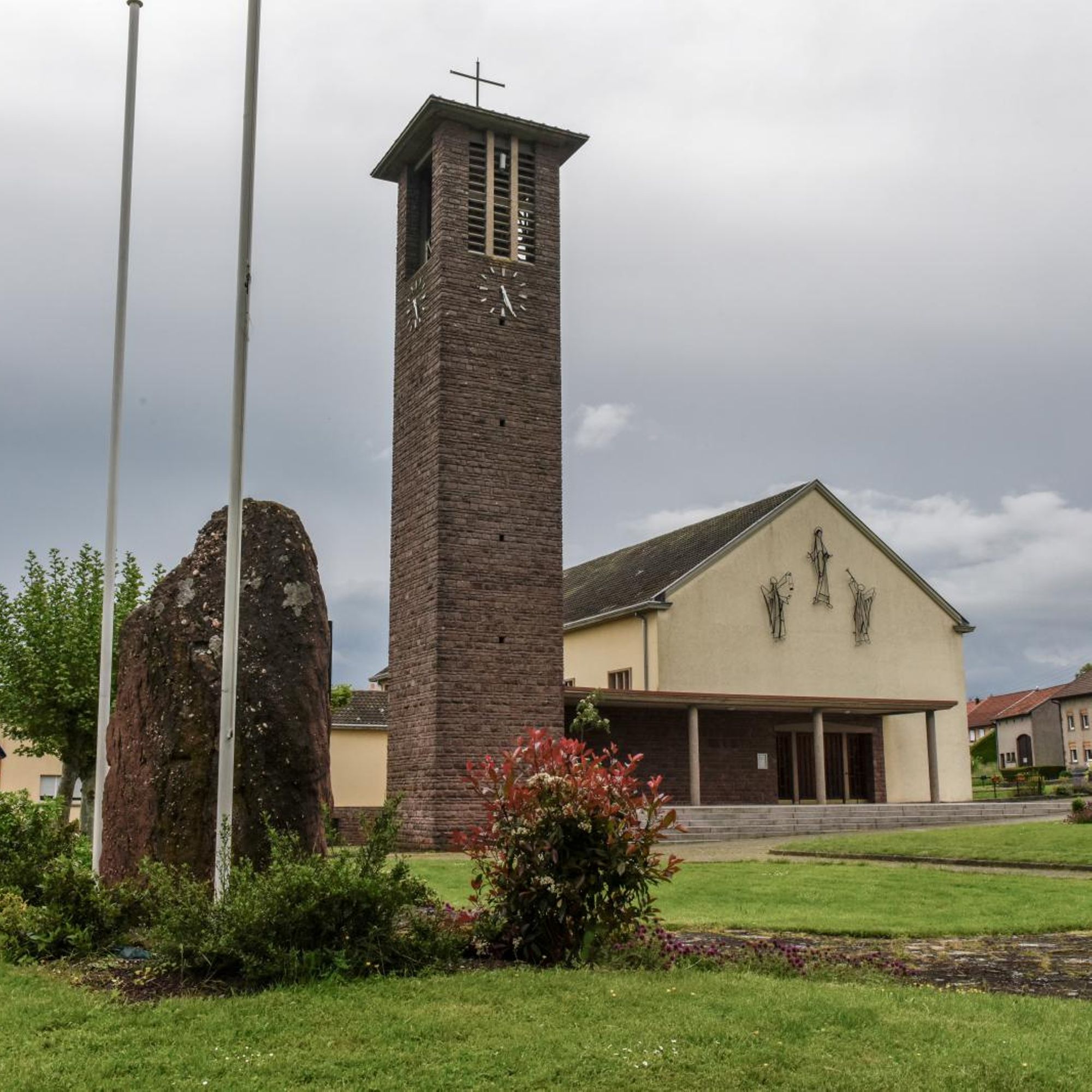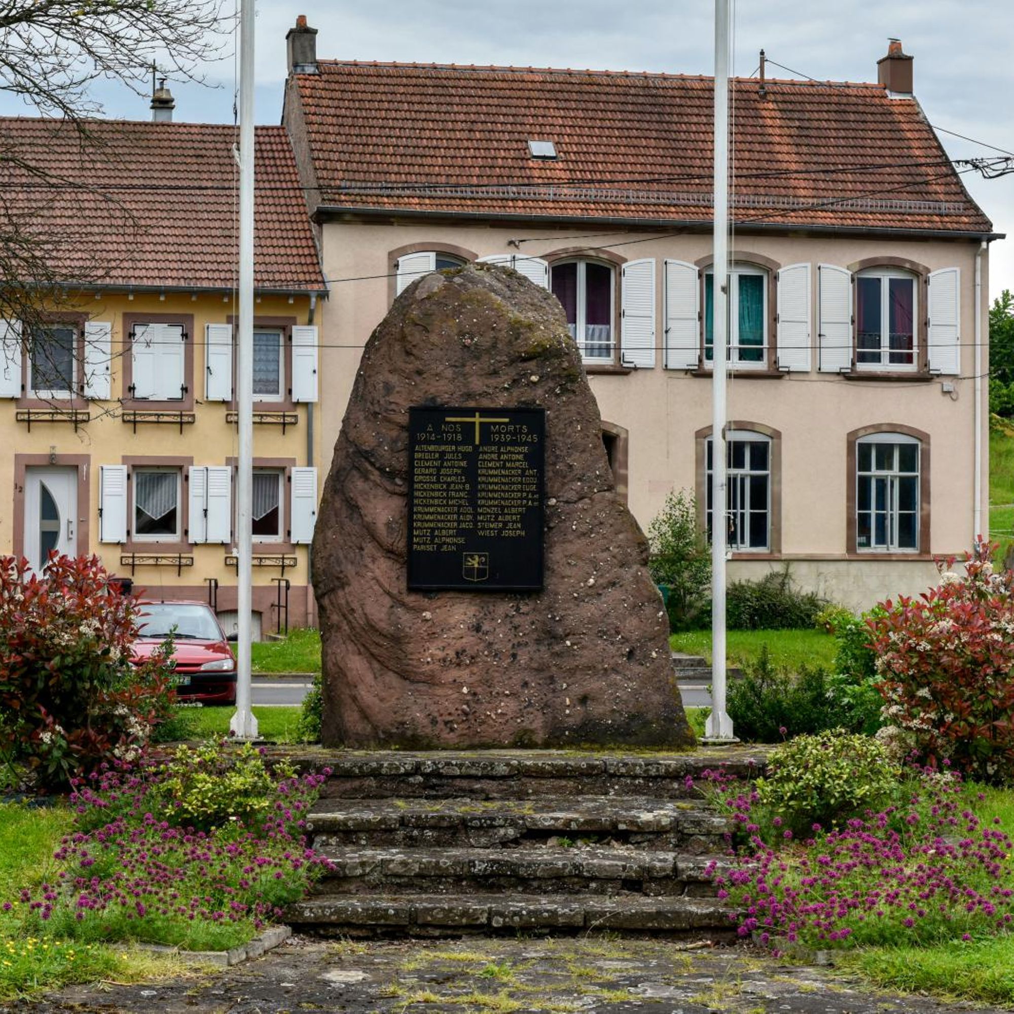 Dans un parc ouvert à côté d'une aire de jeu pour enfants. Entre la rue du Stade et la rue des Écoles.